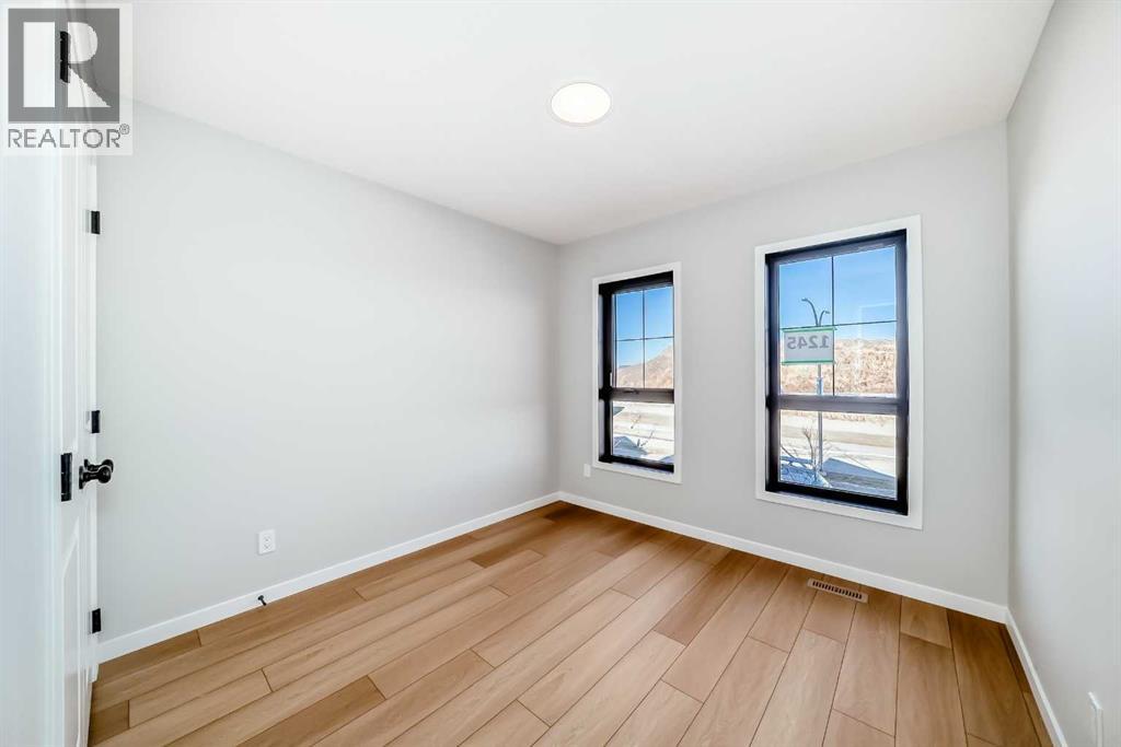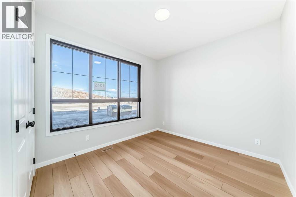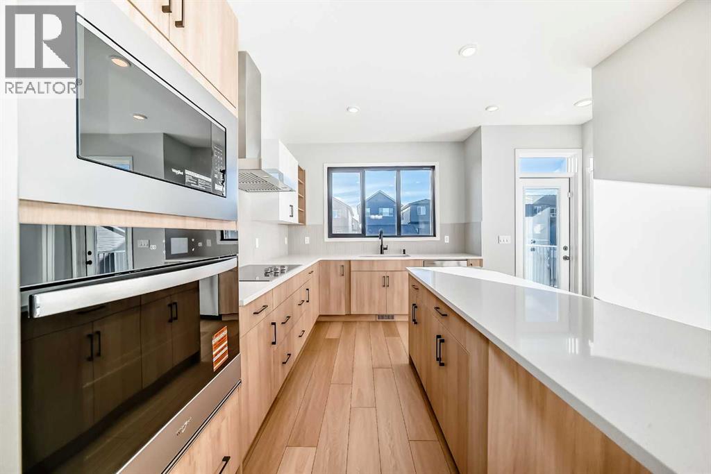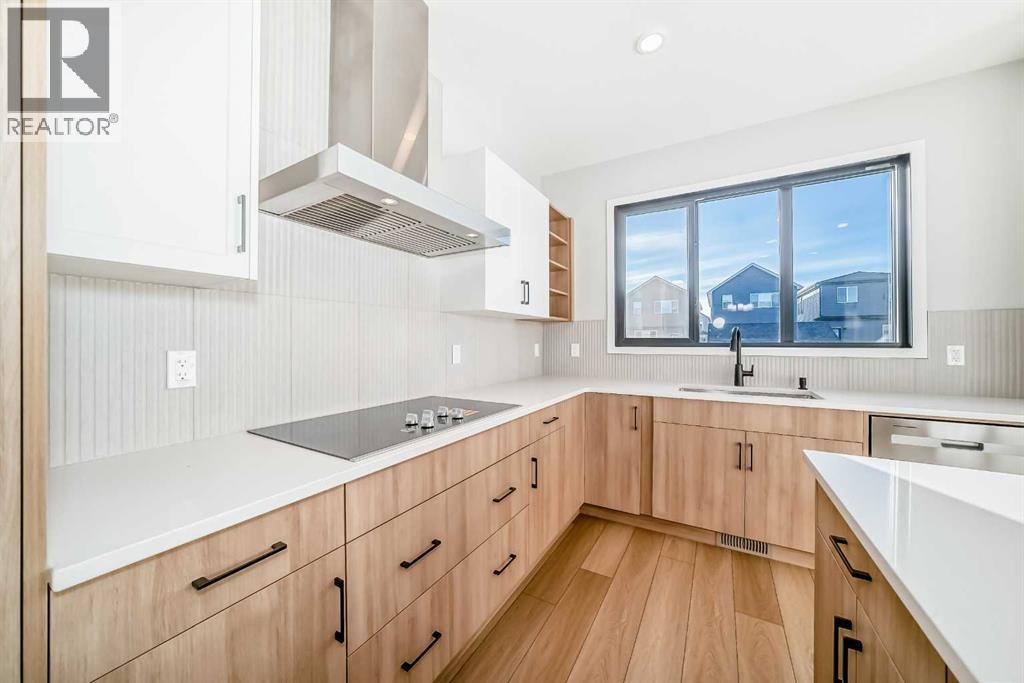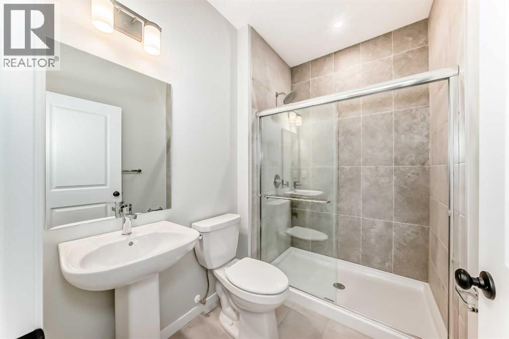 Welcome to this brand new, upgraded home in the vibrant community of Pine Creek! Known for blending nature, family living, and modern homes, Pine Creek offers scenic pathways, nearby parks, and easy access to city conveniences. This beautifully designed property features extensive upgrades throughout and is perfect for homeowners looking for a mortgage helper opportunity with its thoughtfully designed basement living space. The main floor showcases luxury vinyl plank flooring throughout the entire main and second floor, a spacious layout, and a gorgeous extended kitchen with two-tone cabinetry, waterfall island with additional cabinet storage, upgraded backsplash tiles, built-in appliances, and a modern upgraded hood fan. A larger walk-in pantry adds both convenience and storage. The home also features upgraded black window frames, adding a striking modern exterior and interior aesthetic. A versatile additional room on the main floor is complemented by a full bathroom with an upgraded standing shower and full wall tile finish, perfect for guests or multi-generational living. Upstairs, you’ll find spacious bedrooms and an upgraded ensuite featuring a beautifully finished standing shower with full wall tiles. The extended basement bedroom enhances the lower level’s functionality, making it ideal for extended family or rental potential. Both the main floor and basement kitchens feature stylish two-tone cabinetry, creating a cohesive and upscale look throughout. Additional highlights include: Upgraded washer and dryer sets for both main floor and basement, Upgraded stair carpet, Pressure-treated backyard deck with sleek black railings, Upgraded exterior stone detailing, Doorbell camera system for both the main entrance and basement entrance.This move in ready home combines style, functionality, and income potential in one of Calgary’s growing communities. (id:49203)