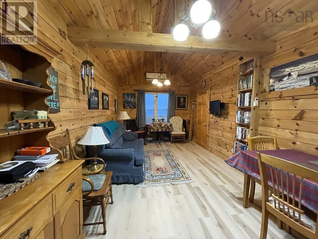 On the edge of Cheticamp Island, this 3-season oceanfront cottage offers approximately 1.25 acres of pure coastal beauty and your very own beach. Watch the sun melt into the horizon, stroll the shoreline to the nearby sandy beach, and end the day gathered around a crackling fire by the ocean, the stars overhead and the waves as your soundtrack. Inside, the cottage glows with warmth - wood walls and ceilings wrap the kitchen, dining, and living areas in rustic charm. The living rooms cathedral ceiling adds a sense of space, while a single large window perfectly frames the sea. Step onto the back deck and take in the view that will draw you outside time and again. The primary bedroom is generously sized, with room for a king bed, while the smaller cozy guest room keeps visits short but sweet. A heat pump and baseboard heaters add comfort, and the home comes fully furnished - just bring your bags and groceries. Only three minutes from town, yet worlds away in peace and privacy, this retreat is perfect as a summer escape or the site for a future year-round home by the sea. (id:49203)