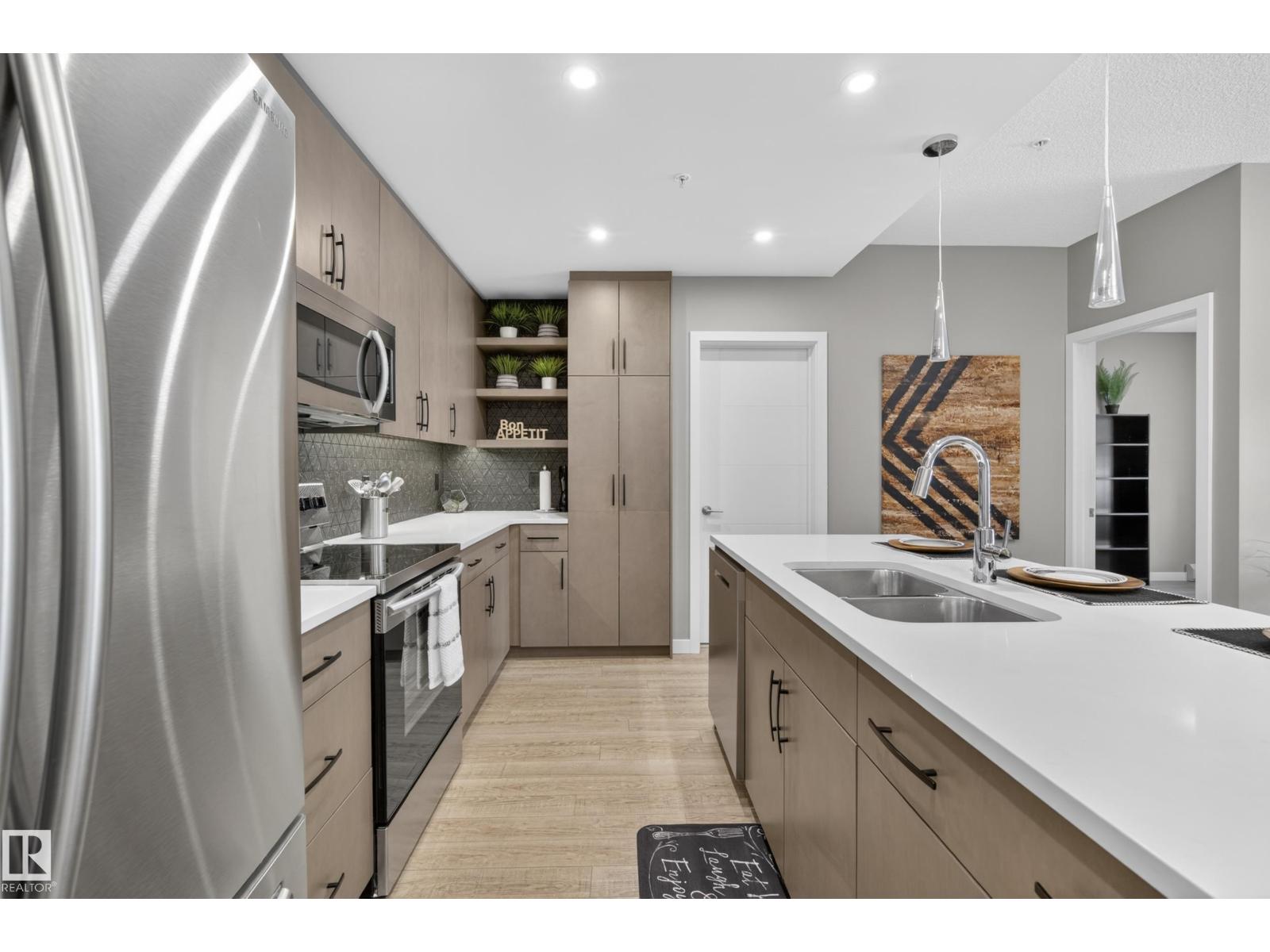 Welcome to this FULLY FURNISHED, modern 2-bedroom, 2-bathroom condo in the desirable community of Allard. Offering a bright open-concept layout with 9’ ceilings, this home features a stylish kitchen complete with quartz countertops, sleek cabinetry, and stainless steel appliances. The spacious living area is perfect for everyday living and entertaining, with access to a private balcony to relax and unwind. The primary bedroom includes a walk-in closet and 3-piece ensuite, while the second bedroom is ideal for guests, a home office, or additional living space. Enjoy the convenience of in-suite laundry and a titled heated underground parking stall. Located just minutes from Blackmud Creek Ravine, shopping, restaurants, schools, and major commuter routes, including Anthony Henday and QE2, this property offers the perfect balance of comfort and accessibility. Ideal for first-time buyers, downsizers, or investors. (id:49203)