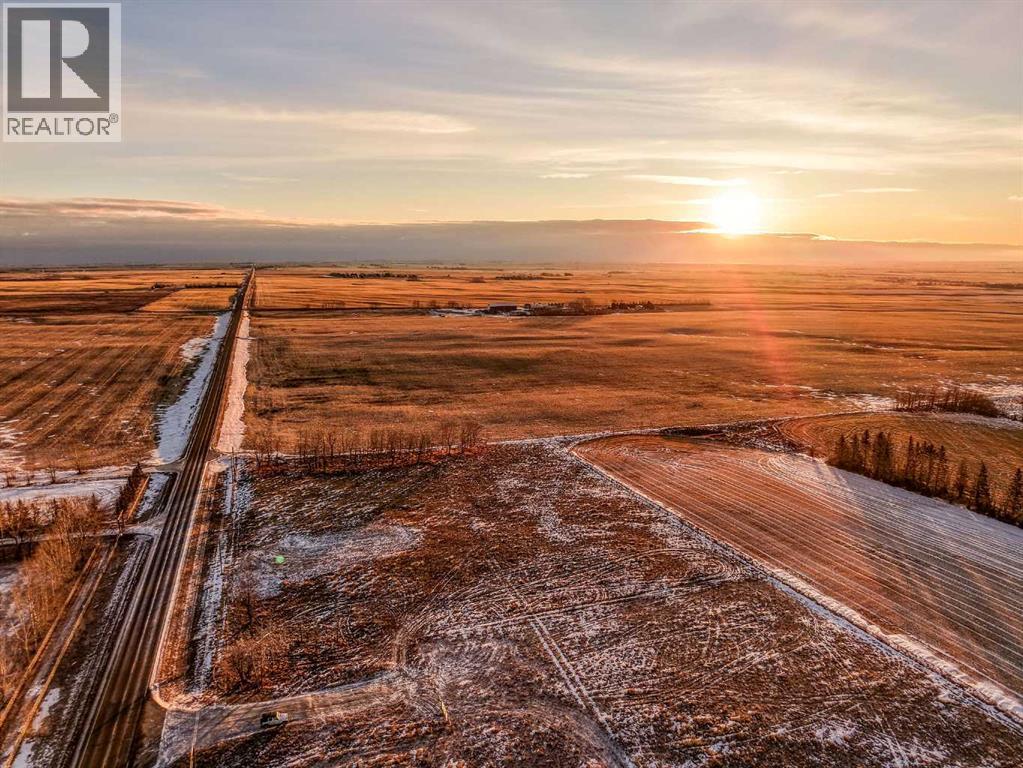 Prime Alberta land. Strong water. Services along the property line.Endless views. Incredible neighbours yet spectacular privacy. Imagine building your country dream home on a picturesque 5 acre parcel in the coveted Gladys Ridge area, just East of Okotoks and only 20 minutes south of Calgary. Thoughtfully shaped by nature, the property features pockets of mature trees, expansive valley views and distant city vistas, all anchored by a brand new drilled well producing a strong 5 gallons per minute, a highly desirable water supply for rural living. The land gently opens toward the horizon, creating an ideal canvas for a custom country residence where styles such as modern farmhouse, prairie contemporary, timeless ranch or the popular craftsman would feel perfectly at home. From your future windows and outdoor living spaces, enjoy sweeping views of the majestic Rocky Mountains, ever changing skies and unforgettable sunsets that paint the foothills nightly. Days begin with the sun rising over golden farmer’s fields that seem to stretch forever, while evenings invite star gazing, wide open skies and the occasional northern lights dancing above the ridge. Located across from an equestrian ranch and surrounded by rolling wheat and canola fields, this setting offers a peaceful rhythm of country life with the simple joy of walking along the nearby ridge and taking in the spectacular mountain peaks in the distance. Despite its serene and private feel, this property is just minutes from Okotoks and approximately 20 minutes to Calgary, offering easy access to top schools, sports arenas, and the South Campus Hospital and an abundance of dining and shopping amenities. With no architectural controls or timelines to build, fencing in place, strong water supply, and all the services (electricity/gas) located along the property line, this is a rare opportunity to create your dream home exactly as you envision it on prime Alberta land, surrounded by great neighbours, natural beauty and space to truly breathe. (id:49203)