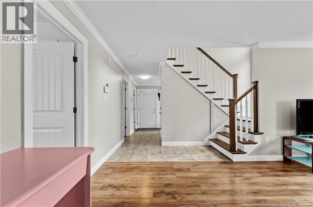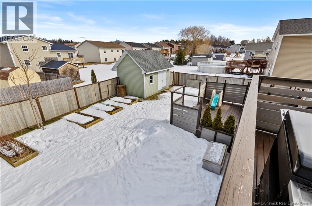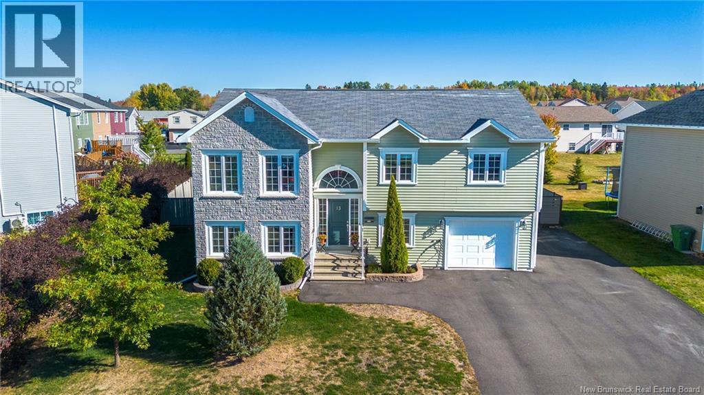 Welcome to the beautiful 13 Carter Crescent! A split entry with great curb appeal, high-end finishes and paired with practical details for everyday living! Right from the front door you can see the quality for yourself, from the stone face, shrubs, paved driveway and wooden fence allowing privacy. In the backyard, you will have the peace of mind to let the kids and dogs run freely to play, you have easy access to an oversize shed for storage and a hot tub to sit in and relax all year long. The main level offers tasteful aesthetics, including a statement wall in the living space, quartz countertops in the kitchen and main bathroom, neutral paint throughout the 3 bedrooms and timeless finishes to pull it all together. The lower level offers the second family room, for a place space, entertaining or a home office. It also includes the 4th bedroom, second full bath with a separate laundry room with utility closet. And the cherry on top is the large mudroom space connected to the attached garage, for dropping off groceries, bookbags, and a place for the whole family to kick off their shoes and coats, keeping the mess out of the way! The location of the home is ideal, as it is walking distance to Oromocto West's largest park- Anniversary park, where there are trails, a splash pad, jungle gym, basketball courts and a sliding hill. (id:49203)