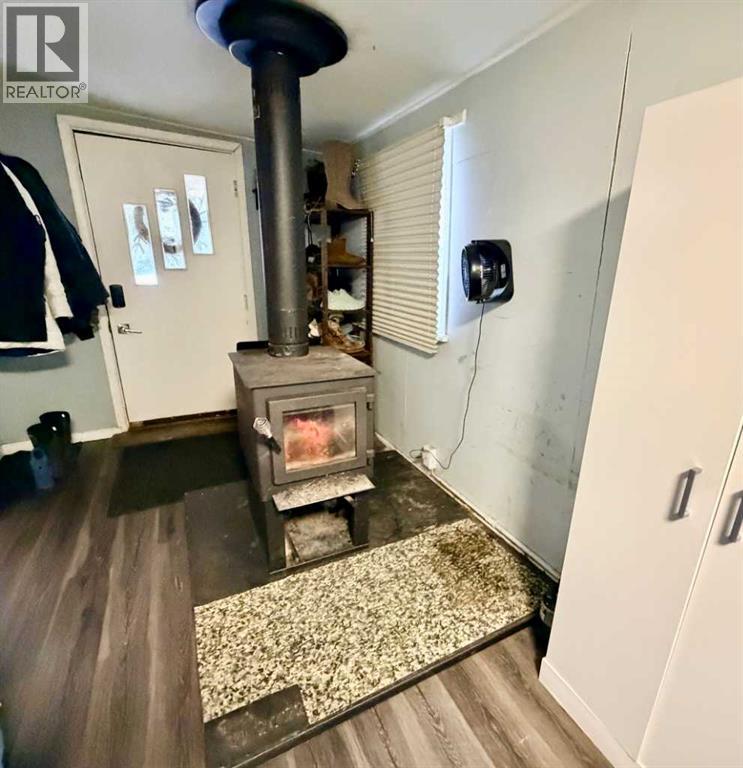 Affordable and cozy one bedroom home in the quiet community of Leslieville. You conveniently enter the home from the side entry way that has a newer covered front patio and once inside you'll find the oversized back porch with a free standing wood stove, laundry area and hot water tank that was replaced in 2024. Moving into the galley style kitchen there's a gas stove, large fridge, dishwasher and eating counter. The space opens up to the living room where a propane floor furnace helps keep it nice and cozy. A front door leads to the recently fenced front yard, another covered patio and small green house. The main level bedroom has room for a queen sized bed and built-in closet shelving plus there's a 3 piece bathroom just off the entry way. The attic area serves as additional storage or could make a craft room or home office. Towards the back of the lot is a single detached garage, insulated and wired with 220, a gravel floor and overhead door, rv parking pad and storage shed. Alley access and mature lilac trees run along the west side of the property. (id:49203)