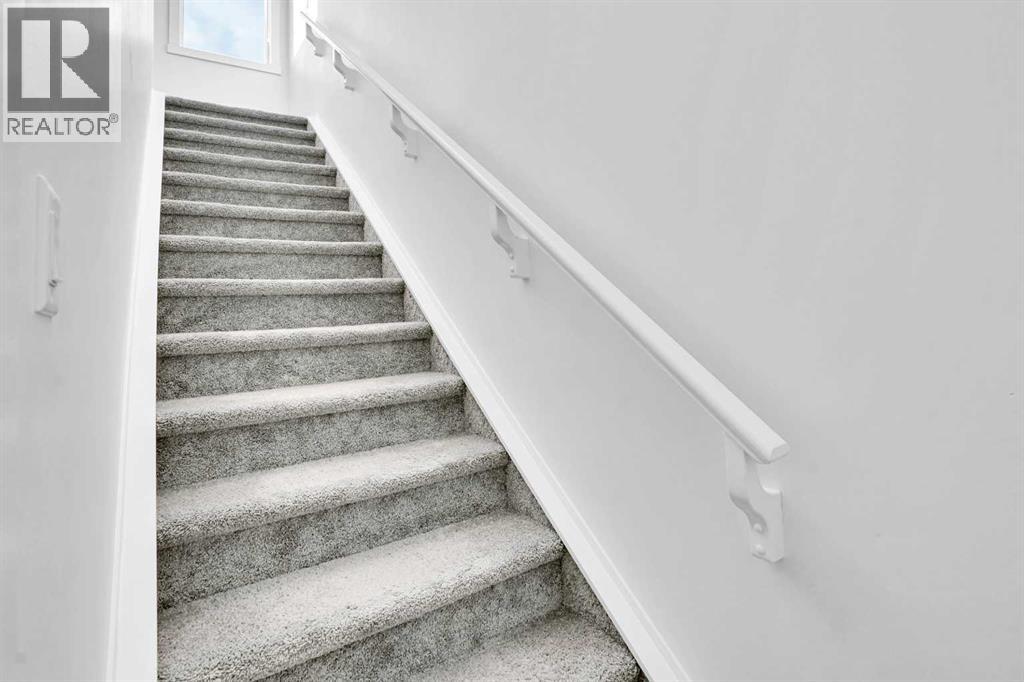 Welcome to this stunning END-UNIT townhome in the heart of Livingston, offering over 1,600 sq. ft. of bright, modern living across three well-designed levels.The main floor features an open-concept layout with large windows that fill the space with natural light. Enjoy a spacious living room, full dining area, and a stylish kitchen with ample cabinetry, a large island, and quality finishes—perfect for everyday living and entertaining.The second level offers two generous bedrooms, each with excellent closet space, plus a full bathroom and convenient laundry.The third level is dedicated to the impressive primary suite, complete with a large walk-in closet and a luxurious 5-piece ensuite featuring dual sinks, a soaker tub, and a separate shower. This private top-floor retreat is a rare and highly desirable feature.Outside, you’ll love the fully fenced backyard, ideal for kids, pets, or summer gatherings. The rear parking pad provides convenient off-street parking with potential for a future garage.Located in vibrant Livingston, you’re close to parks, playgrounds, pathways, and the popular Livingston Hub with its state-of-the-art amenities. Quick access to Stoney Trail makes commuting easy.A spacious, stylish end-unit townhome with a private top-floor primary retreat—this one is a must-see! (id:49203)