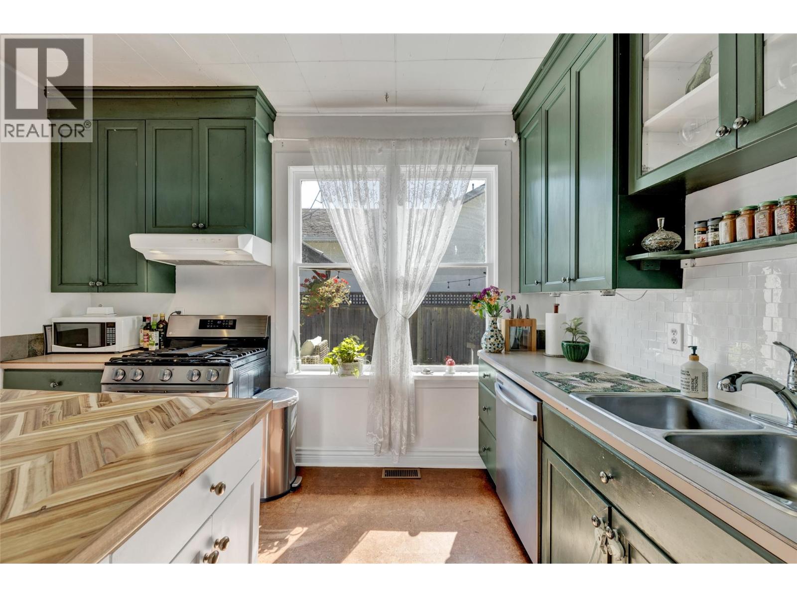 REDUCED TO SELL ! This home has loads of Charm. Fantastic location downtown Kelowna. Why buy a condo ? you can own a great investment property with lots of parking. Incredible starter home with recent upgrades. Very bright with lots of windows, separate front porch ( office ) area. Open kitchen with cork flooring and tastefully upgraded - ready to move in. Home has 2 bedrooms and attic space or den area. The single garage could also work as a shop. 5 appliances come with the home. Owner occupied for past 10 years. Recent roof improvements. Has NEW asphalt driveway. Owner has been approached by developers in the past. This home is in a major development area and is earmarked in OCP for multifamily zone. Richter street has a number of apartment building developed across the street. Great investment opportunity. (id:49203)