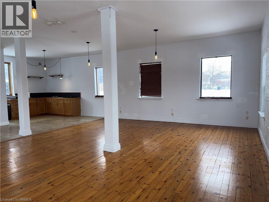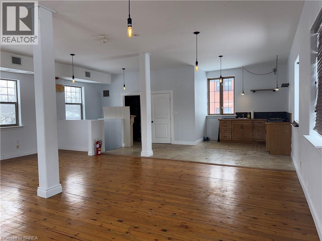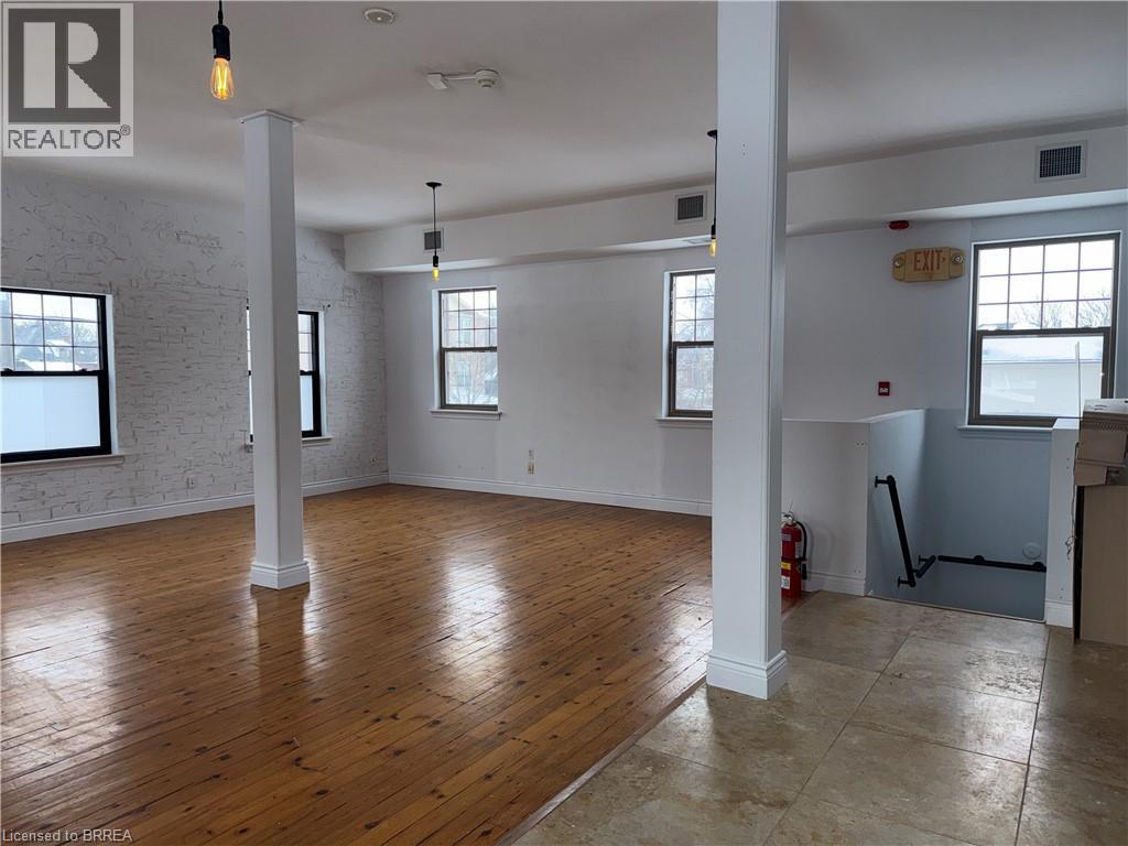 Just steps from Clarence Street and the heart of downtown Brantford, this beautifully updated and revitalized historic mixed-use building offers a range of flexible leasing opportunities. This second floor approx 1000 sq ft unit features 9'-9 high ceilings and elegant finishes, previously used as a professional photography studio. Need more space? The building has multiple unit configurations available, including office, retail, private studio, warehousing, and storage - ideal for businesses of various sizes and industries. Units may be leased individually or combined to create a custom footprint tailored to your operational needs. Need more space? This unit combines well with unit 101 & 102/103 (MLS®#40800509 & 40801634).Each unit includes onsite parking and benefits from close proximity to public transit, the university campus, and all the amenities downtown Brantford has to offer. A rare opportunity to position your business in a character-rich building with modern functionality in a high-visibility, high-demand location. (id:49203)
