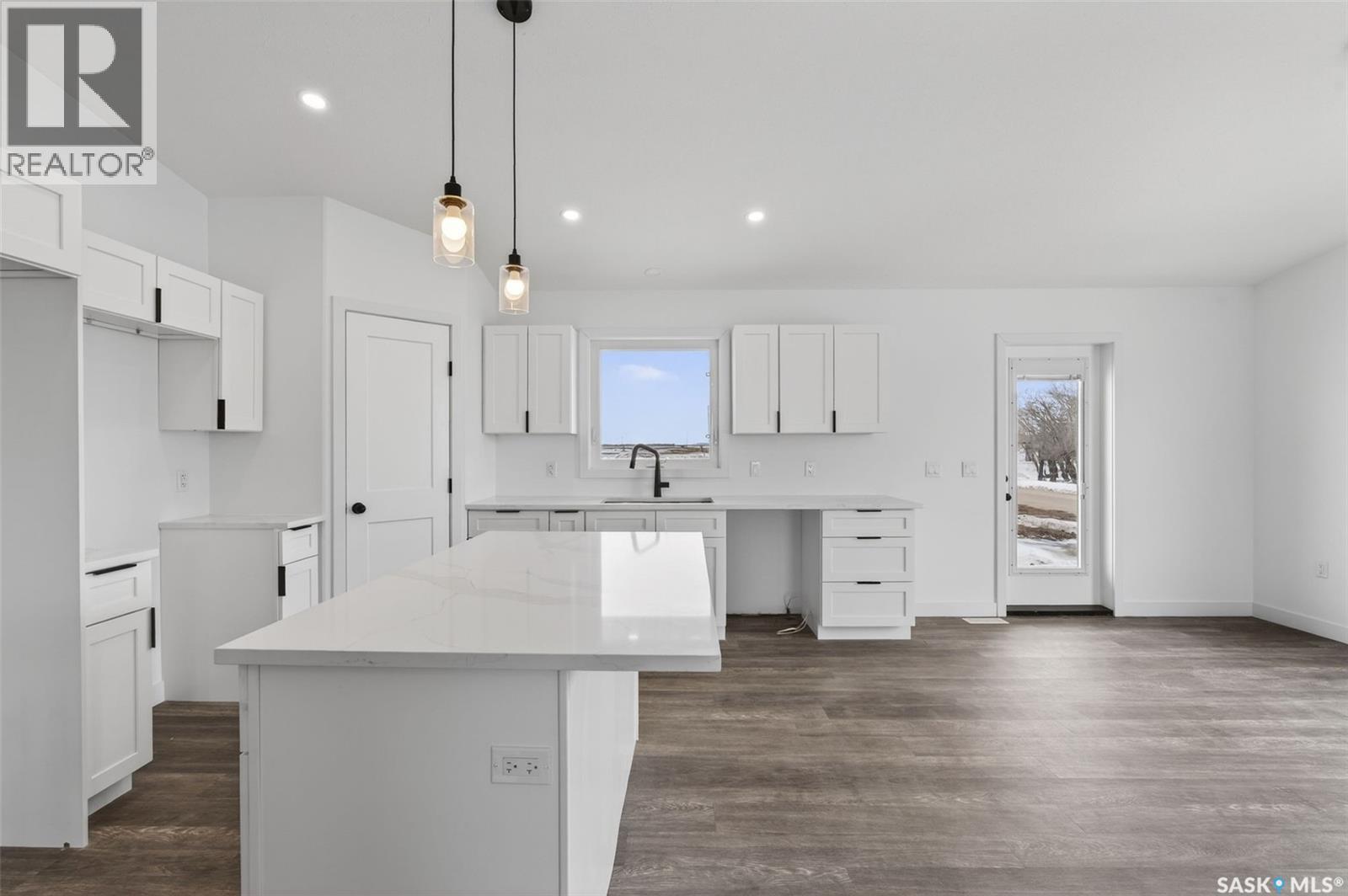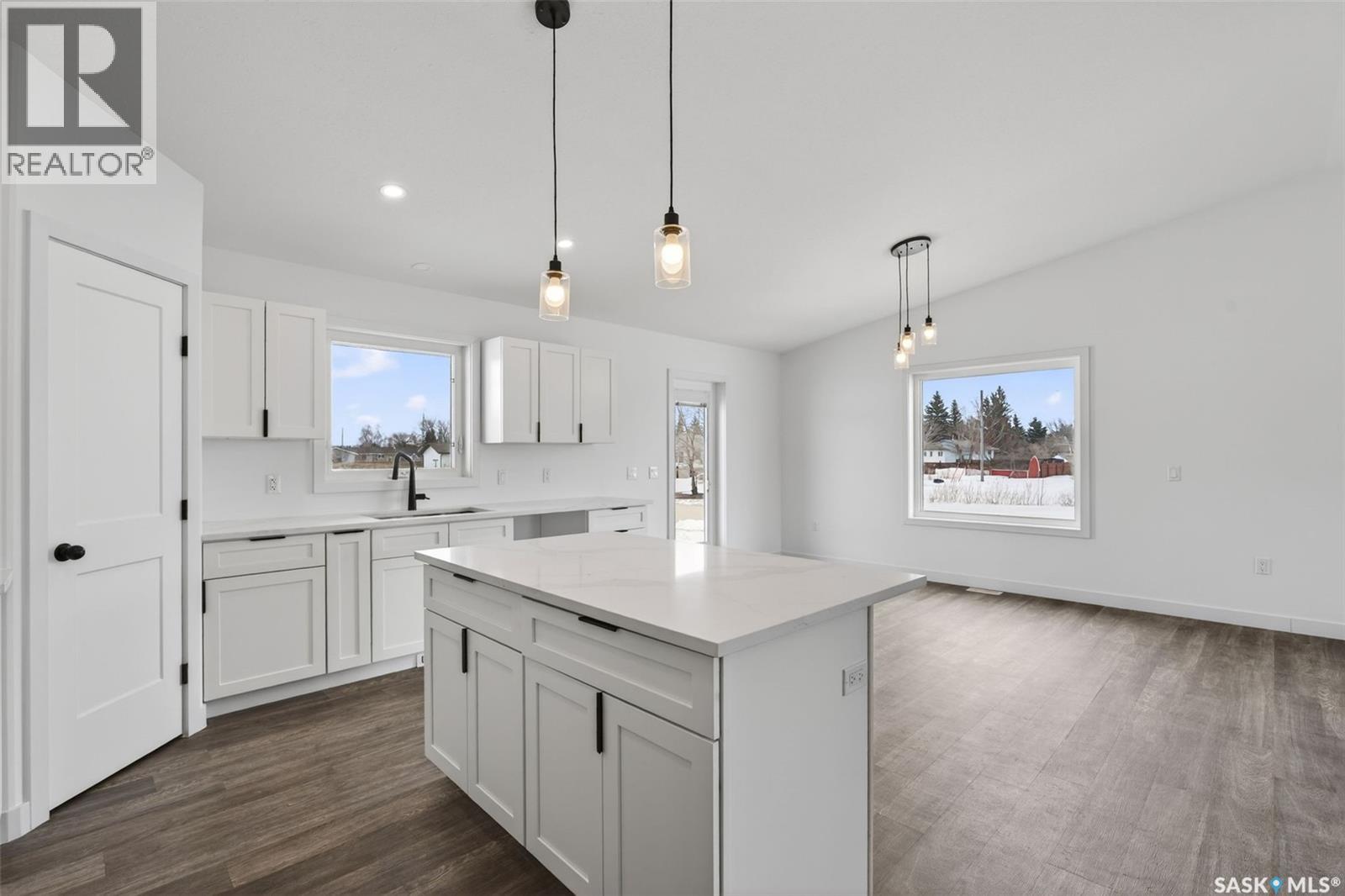 Welcome to 14 Scott Bay, a stunning newly built home situated on a desirable 65x148 corner lot just two blocks from the school in the bustling Village of Muenster, SK. Located only five minutes from Humboldt, Muenster offers the perfect blend of quiet living and a thriving community atmosphere, complete with a K–12 school, St. Peter’s College, a hockey arena, and ball diamonds. The area also provides convenient access to major employment opportunities, including the Lanigan and Jansen potash mines, as well as Schulte and Doepker Industries. Built in 2023, this 1,503 sq ft home sits on an ICF basement and features a welcoming front deck along with a double attached garage that offers direct entry into the home. Inside, you are greeted by a spacious mudroom with main floor laundry just off the garage, a generous front entry, and an open-concept design filled with natural light that creates a bright and airy feel throughout the main level. The kitchen is both stylish and functional, showcasing quartz countertops, a walk-in pantry, and a large island that is perfect for entertaining or preparing meals for the family. The main floor also includes a spacious four-piece bathroom and three generously sized bedrooms, including a primary suite complete with a walk-in closet and a well-appointed three-piece ensuite. The basement is a blank slate ready for your personal touch, offering the potential for one or two additional bedrooms, a bathroom that is already roughed in, and a family room. With impressive 10-foot ceilings, the space feels open and inviting rather than like a typical basement. Additional highlights of this home include central air conditioning, an air exchanger, a tankless natural gas water heater, a high-efficiency furnace, and triple-pane windows. Don’t miss this incredible opportunity schedule your showing today. (id:49203)