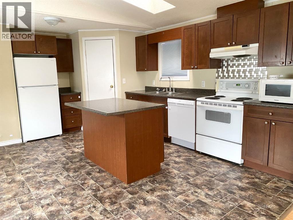 Welcome to 140 Cokerill Crescent. Backing onto Confed with no neighbours behind this home is ready for new owners. The majority of the home has laminate flooring. This mobile features 3 bedrooms and 2 full bathrooms. The kitchen is complete with an eat-up island and opens to a dining nook. Just off the kitchen you have a door leading to the yard and laundry in the hallway leading to the primary bedroom. Don't miss the opportunity to make 140 Cokerill your new home—contact us today to schedule a viewing! SOLD AS IS WHERE IS (id:49203)