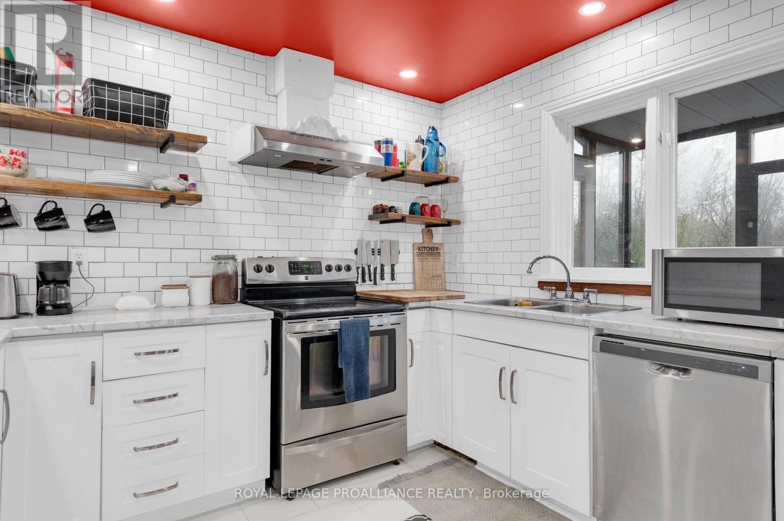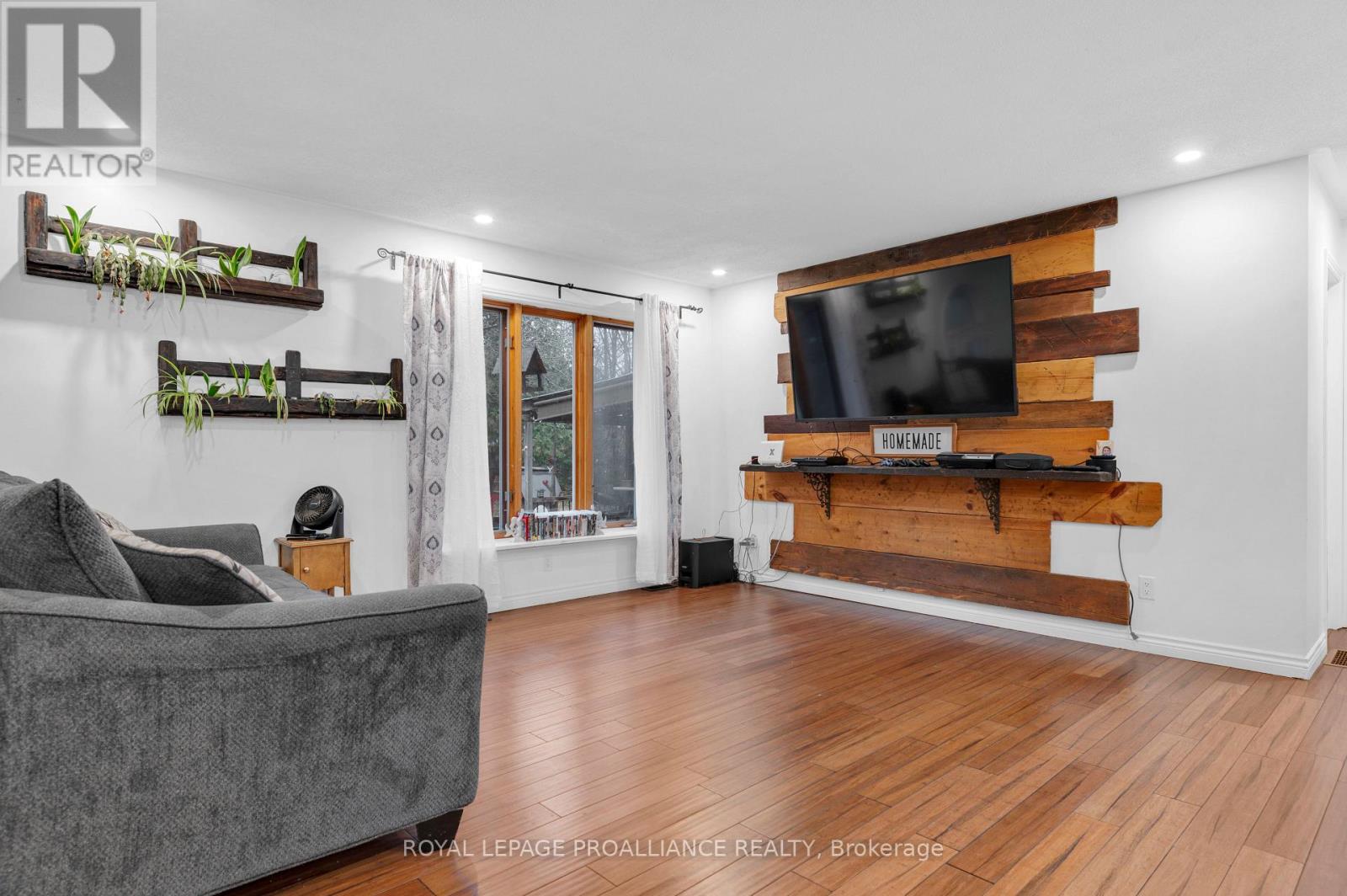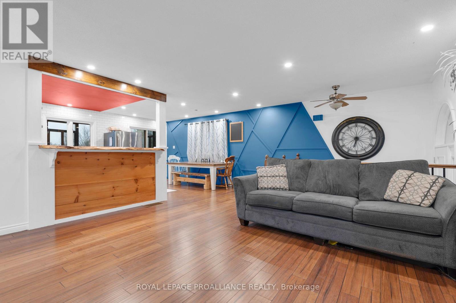 Tucked away on a 2-acre lot, this raised bungalow offers the perfect mix of space, comfort, and country charm. Set well back from the road with a long driveway, the home features an open-concept layout with 4 bedrooms and 3 bathrooms, including a primary suite with ensuite bath. Enjoy great outdoor living with multiple decks, a sunroom, and views over the property's large scenic pond. The attached single-car garage, workshop, storage shed, and above-ground pool add extra convenience for hobbyists and families alike. The finished walkout basement includes 2 bedrooms, a 3pc bath, and a separate entrance - ideal for a guest suite or in-law setup. Located just minutes from Tweed and Madoc, with easy access to trails and an easy commute to Belleville, Peterborough, or Kingston, this home offers the space and setting you've been looking for. (id:49203)