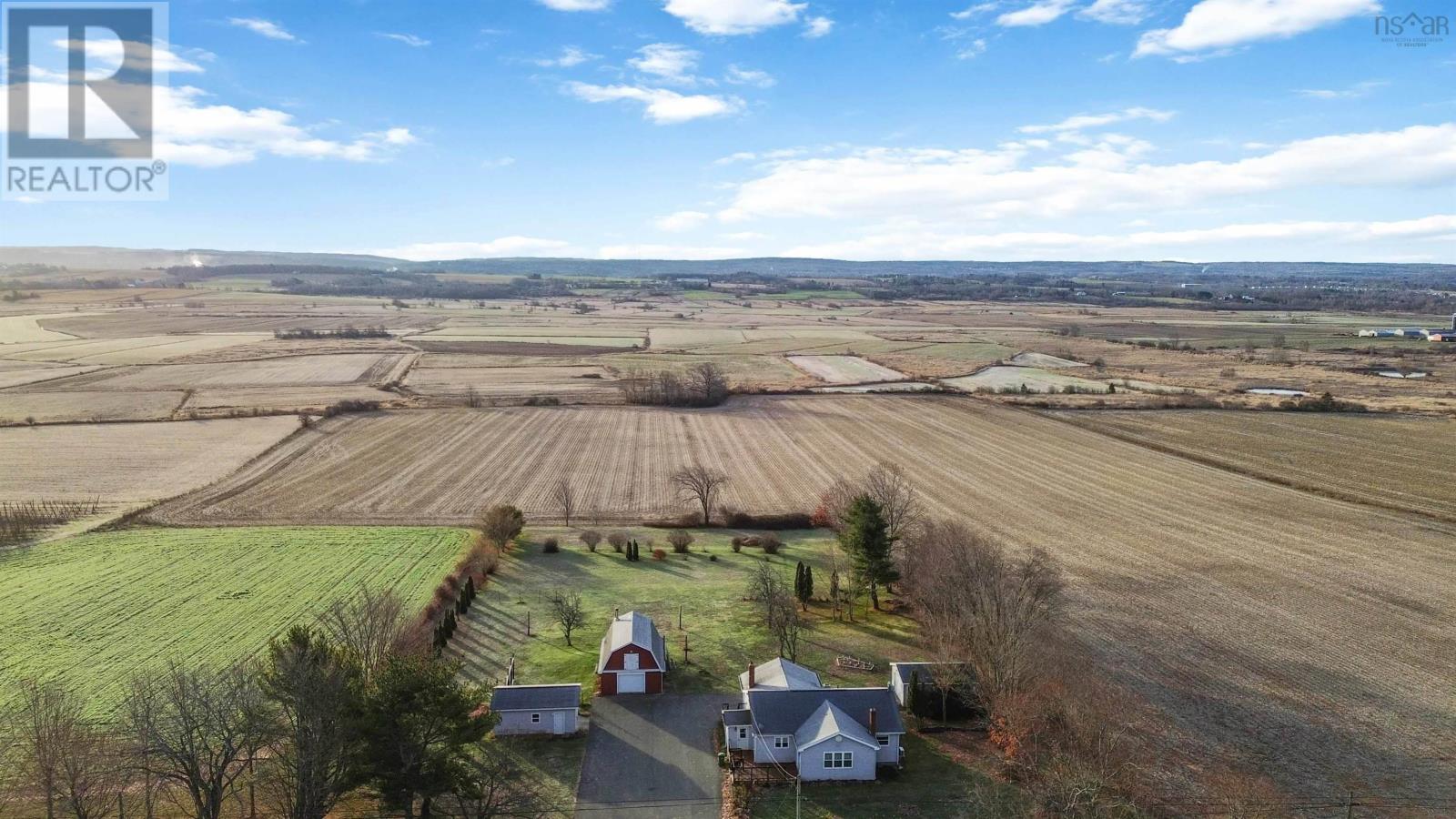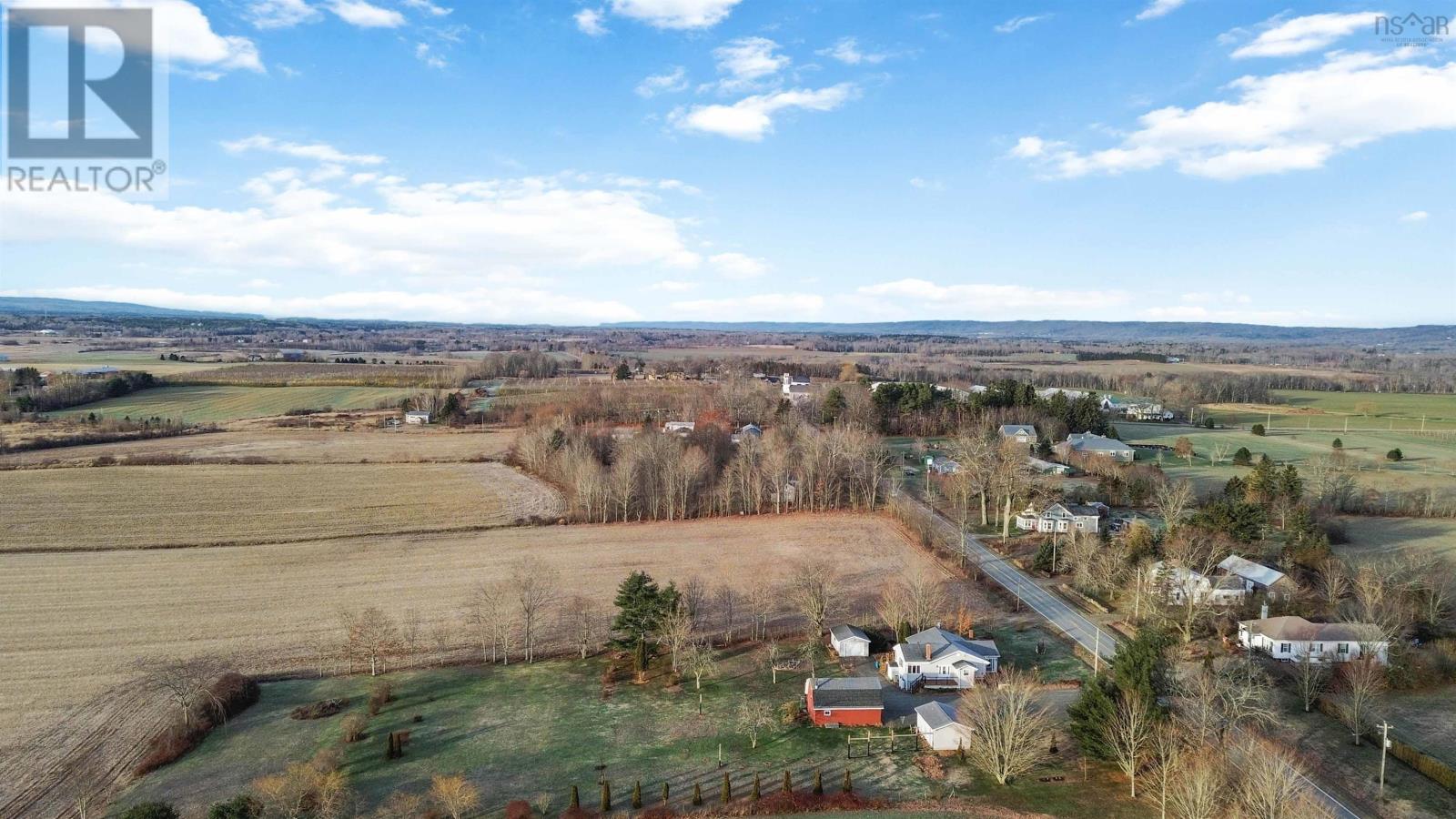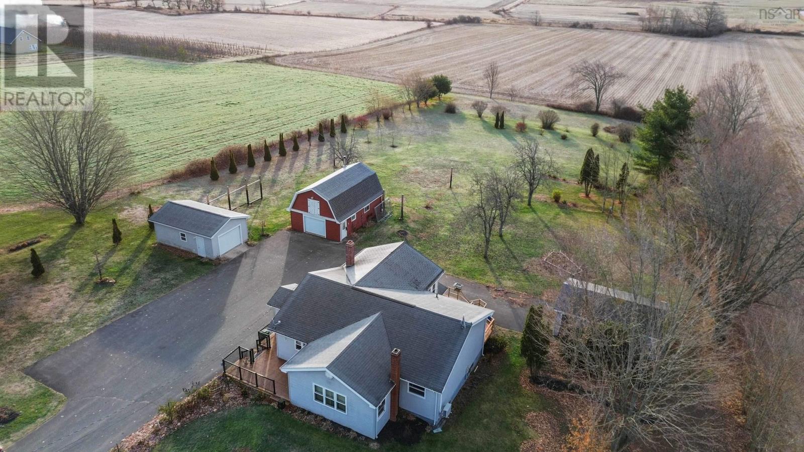 Nestled in the picturesque Annapolis Valley 2+ Acres, beautiful landscaped yard with fantastic curb appeal. 2 bedrooms on the main floor, 3 piece bath, eat-in kitchen, dining room, living room as well as a stunning sunroom with exposed beams. The basement is not developed and waiting for your personal touches, there are so many possibilities for your basement redo. Tons of storage cabinets in the basement. The paved driveway leads to not one, but two garages, offering ample storage and space for all your needs as well as a barn with a loft on the property. Plenty of space in the backyard, surrounded by farmland. (id:49203)