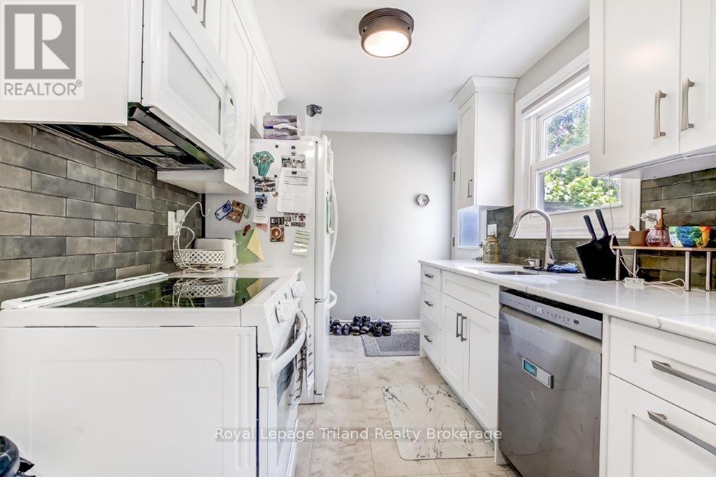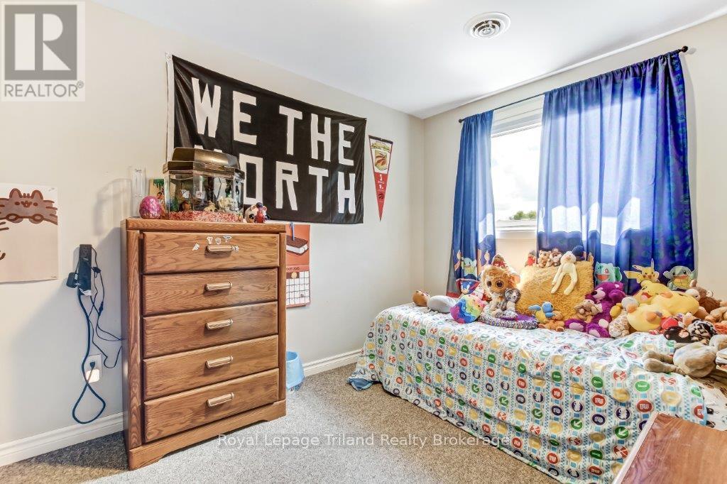 Welcome to 144 Keats Dr. This stylish semi detached home is on a quiet cul de sac and has lots of great features! Main floor is carpet free and has a beautiful, updated eat-in kitchen with pantry, living room and a convenient 2 piece powder room. Upstairs you'll find 4 bedrooms (primary bedroom fits a king size bed)and 4 piece bathroom. On the lower level you will find a home theatre which is wired for sound and a projector screen for watching movies or sports. Outside there is a fenced yard backing onto greenspace, patio with gazebo overlooking the backyard and a shed. Property is beside a walkway so no neighbours on one side of the home. Upgrades include: new central air conditioning ( August 2025) for those hot summer days and sound proofed rec room. Close to Highway 401 and an easy commute to London, Brantford and KW. Come over and check out the area and this quality home. Flexible closing available. (id:49203)