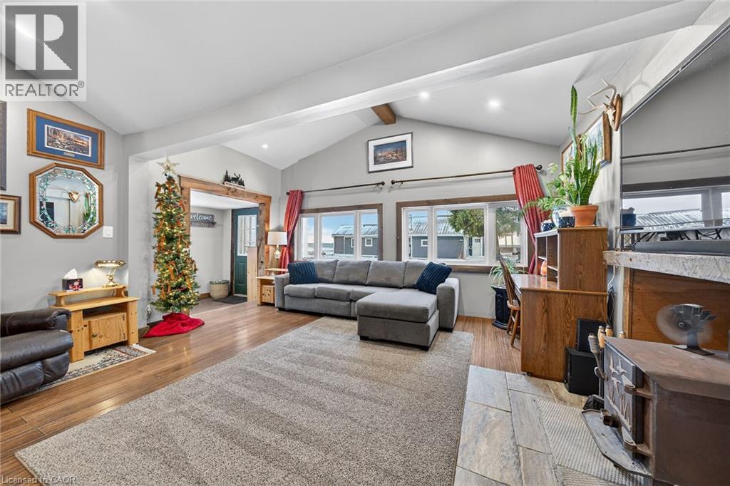 Lake living at 1457 Lakeshore Road, Selkirk! Enjoy partial water views of Lake Erie across the street from this charming 2-bedroom, 2-bath home with many updated throughout. Improvements include a furnace (2017), roof (2016), updated kitchen, vinyl windows and new floors. The home features vaulted ceilings, a cozy wood-burning fireplace, a fully fenced yard, an attached garage, and two additional outbuildings for added storage or workspace. Situated on an impressive 200-foot-deep lot. Deeded right-of-way provides lake access across the road. Relax and take in beautiful sunsets over the lake and enjoy the peaceful lakeside lifestyle. (id:49203)