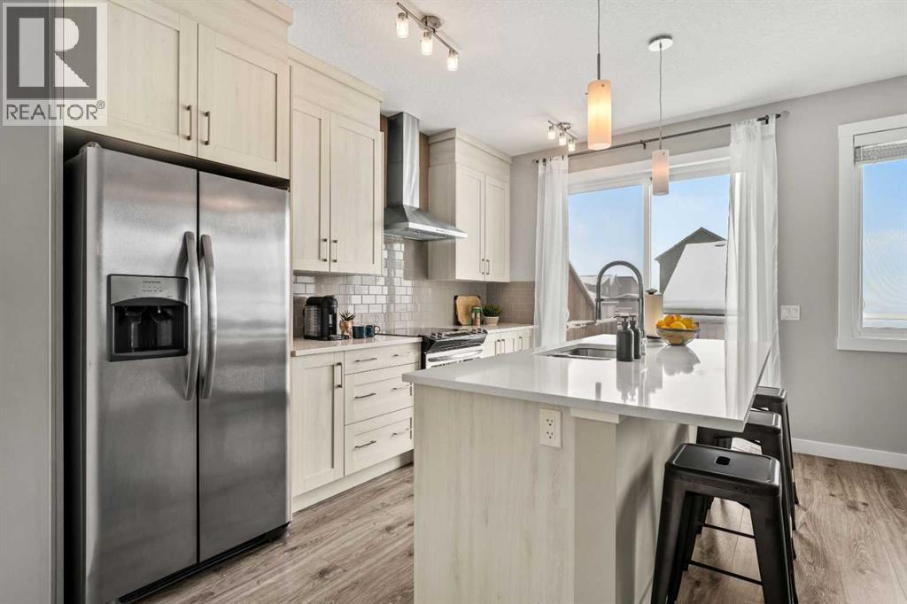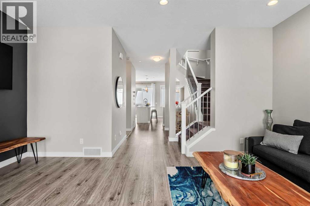 Welcome to 14898 1 St NE! We are so excited to present a truly move-in ready home in the family friendly community of Livingston. This home checks off ALL of the boxes, whether you're a first-time homebuyer, an investor or a family searching for more space to grow. You'll appreciate the front porch that welcomes you into this home. Upon entering, you'll immediately notice the abundance of natural sunlight this home offers. The living room is spacious, enhanced by the high ceilings and flows seamlessly into the rest of the main floor. The kitchen is truly the highlight of the home with ceiling-height cabinetry, stainless steel appliances, granite countertops and a large pantry. The sliding glass doors lead out to the back deck creating an ideal environment for hosting. There is plenty of room for a large six person table as well as space for bar stools for those informal meals. A two piece powder room and a side SEPARATE ENTRANCE complete this floor. Upstairs, you’re greeted by a bonus room, an exceptional feature and a rare find for a semi-detached home. It is ideal for a home office, media room or play room. The primary bedroom is perfectly positioned at the front of the home, where west exposure brings in beautiful natural light year-round. It’s complemented by a spacious ensuite with a modern vanity, walk-in glass shower and a generous walk-in closet. Two additional well-sized bedrooms, a four-piece bathroom and convenient upper-level laundry complete this floor. The backyard is a dream with a beautiful deck, including built-in seating ideal for hosting guests. The oversized double detached garage provides ample parking and storage, along with an outlet for electric vehicle charging. The basement is unfinished, offering all kinds of future opportunities for development especially with a side entrance already in place. This home offers the benefit of living in a well maintained, turnkey home without the hassle of worrying about landscaping, fencing or building a g arage. Located in the vibrant and growing community of Livingston, this home offers the perfect blend of modern design and everyday functionality. Enjoy access to the impressive Livingston Hub through your HOA, nearby parks and scenic pathways. All while being just minutes from Stoney Trail making commuting in and out of the city a breeze. Call for a private viewing! (id:49203)