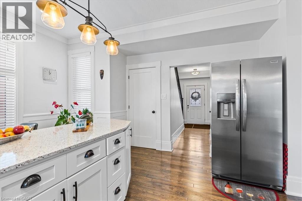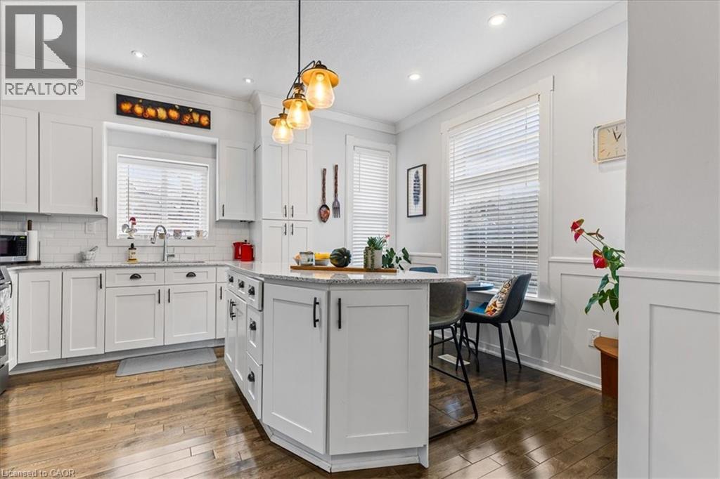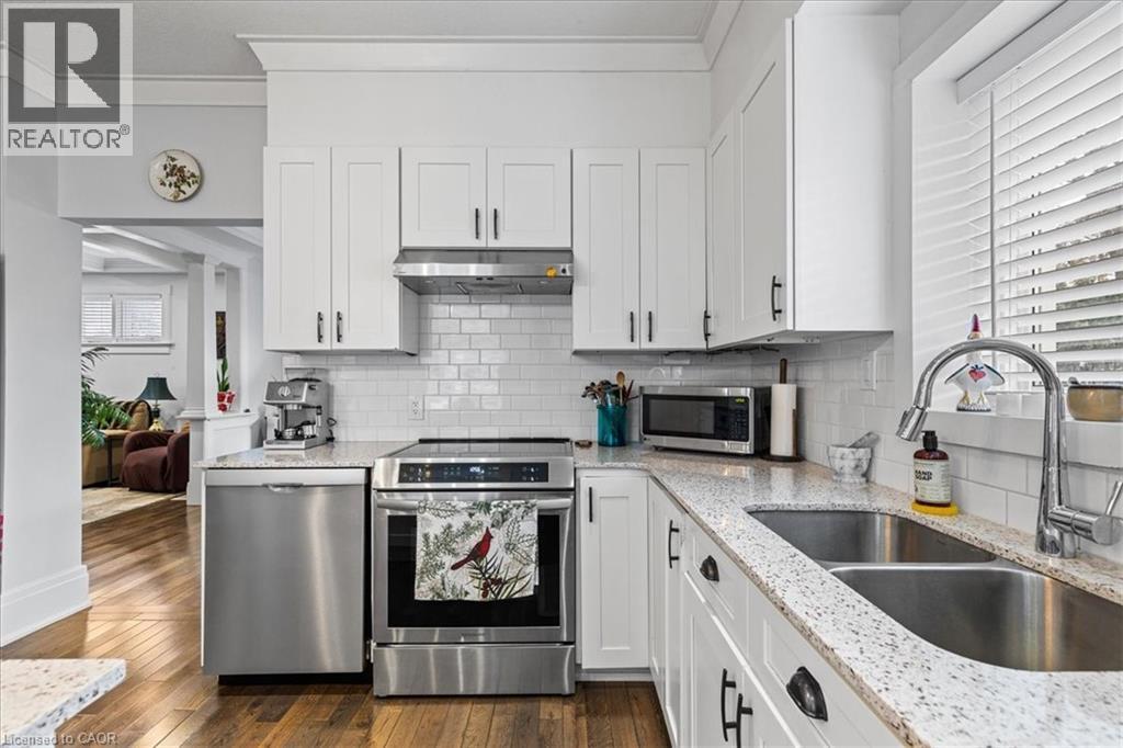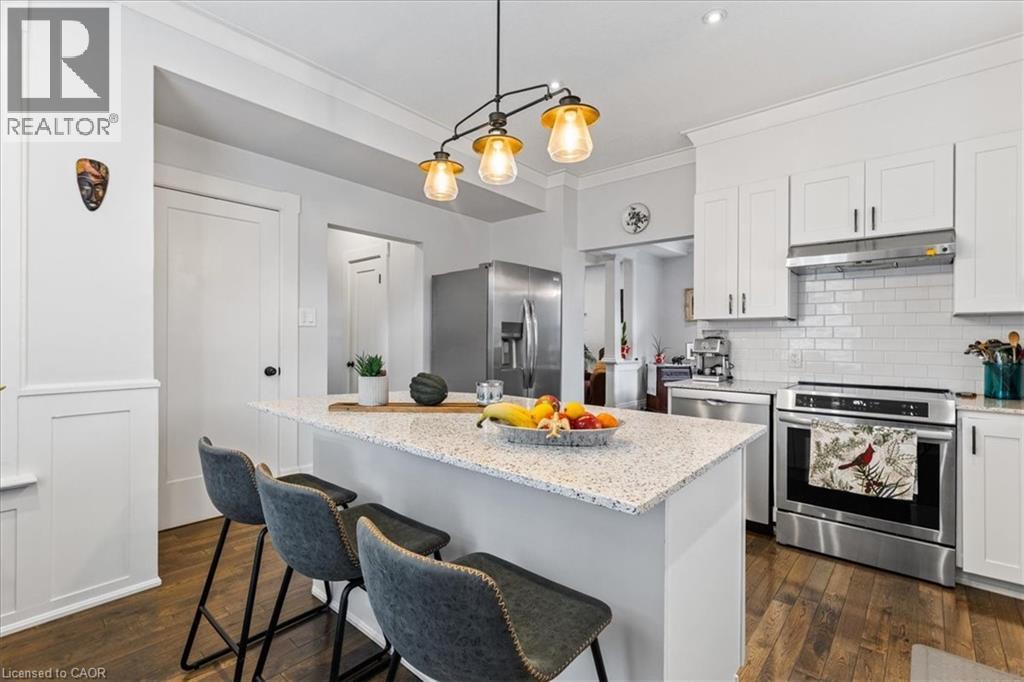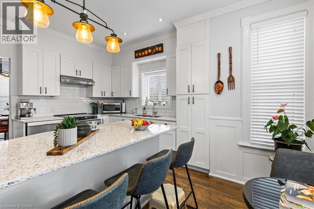 Oh, you are going to fall in LOVE with this home. Almost 1600 square feet of high-quality updates and extras PLUS a AAA location where a 15 minute walk will get you ANYWHERE! Amenities like the LRT, the future Regional Transit Hub, the fine dining and entertainment of Uptown Waterloo and Downtown Kitchener are mere minutes away! Just wait until you see the outstanding finishes that were lovingly incorporated into this home. The gourmet kitchen is appointed with stunning white cabinetry, a large quartz topped island, white subway tile backsplash and 3 brand new hi-end appliances. The generous sized formal dining room features a walkout to a pressure treated sundeck. The warm living room and dining rooms are a focal point with the intricate coffered ceiling treatments, the rich hardwood flooring and the numerous potlights. The home also features a main floor 2 piece powder room (a rarity in century homes). Ascend the solid wood staircase to the upper level and get ready to be impressed. The Primary bedroom offers a double closet and your very own 3 piece ensuite bath! The bathroom is a stunner! An oversized shower with glass doors and gorgeous tiled walls. The upper level is completed with 2 other good sized bedrooms and a fully renovated 4 piece bath finished similarly to the ensuite! All upper bedrooms are finished with dark, warm hardwood flooring. Your lower level offers a finished recreation with 11 potlights and laminate floor. You will have to decide if you want to spend time on your classic, covered front porch or your rear sundeck! Check out this long list of updates. All low maintenance vinyl windows throughout, updated wiring, Decora designer switches and outlets throughout, hi-efficiency gas furnace (2022) and a freshly painted interior. (id:49203)