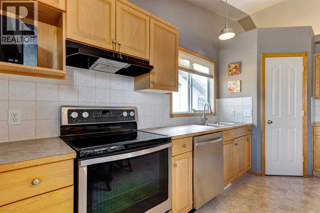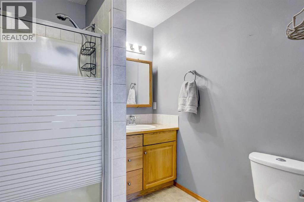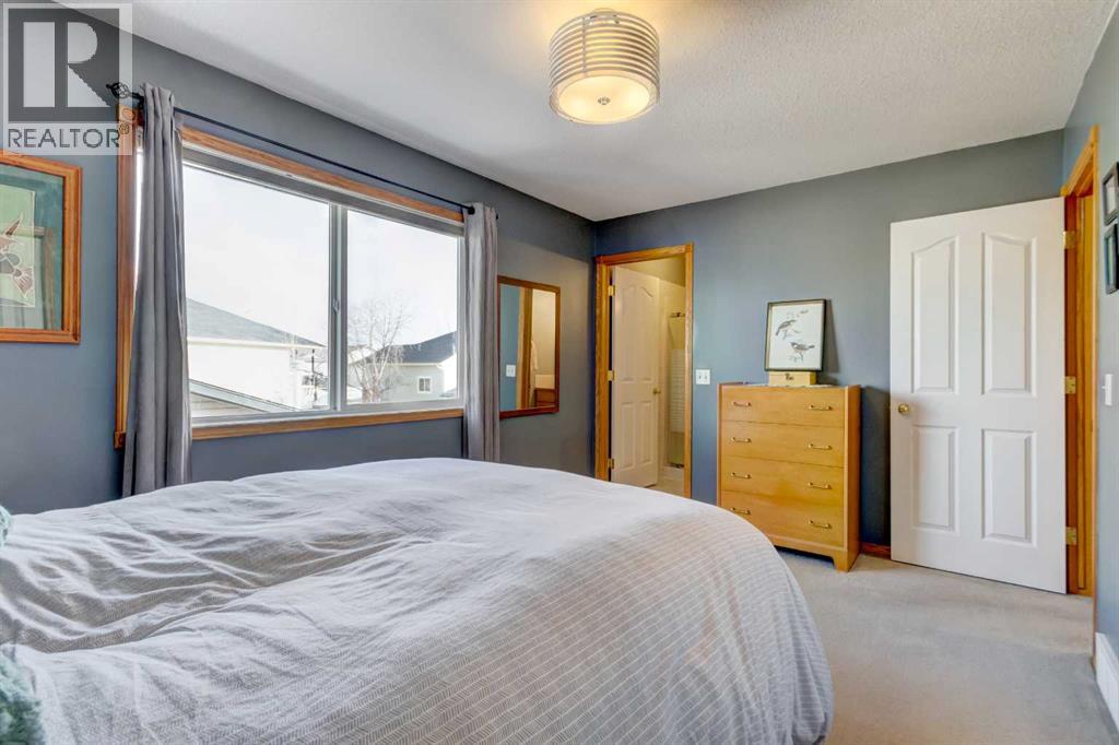 Location is always a factor to consider when buying a home and you need to think about exit strategy for when you decide to sell. This property is located on a quiet close within walking distance to elementary and middle schools, along with the hospital and recreation facilities. On the main level you have vaulted ceilings, West windows bringing in the daylight and a gas fireplace in the living room to take the chill out of the air and provide great ambiance. The kitchen and dining areas have all the East light and views of gorgeous sunrises. Access the upper deck to sit and enjoy morning coffee...and cool off in the evenings! The main level features the primary bedroom with ensuite and 2 secondary bedrooms plus another full bath. The lower level has a beautiful full bath and then, space to create! There is room to develop 2 additional bedrooms and a large family room. You could also apply to the Town to develop for more permanent living for family members or income purposes as this basement has a WALKOUT. The gorgeous backyard (see photos) is a great summer retreat. PLUS it holds the oversized heated double garage accessed off the alley. You could change things up to give yourself some RV parking as well. The garage is ideal for those who like to tinker, maybe rebuilding that classic car? This is a true family neighborhood. Parks are nearby. Kids can walk to school. Strathmore is a robust community with many quality schools, sports programs and facilities, year round scheduled events for all ages. There is retail and medical (another new clinic opening in March and accepting new patients). Come grow with us! Call your Realtor® to view. (id:49203)