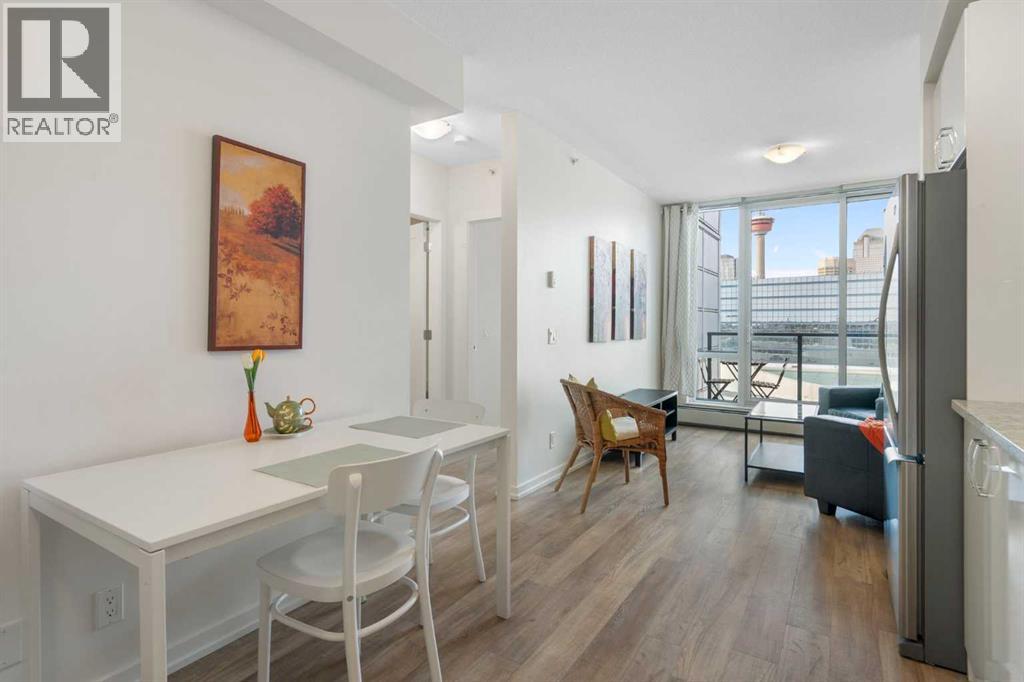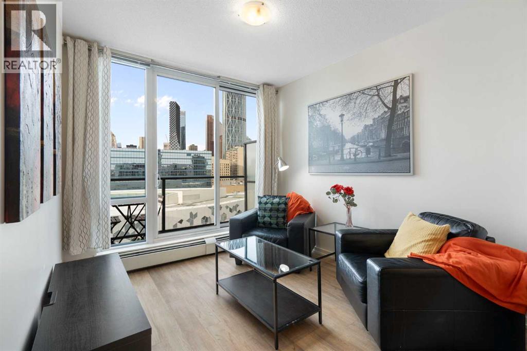$365.94 MonthlyWelcome to this beautifully appointed, fully furnished home offering exceptional value in a prime downtown location. Designed for effortless urban living, this turnkey property includes all kitchenware and even a cruiser bike—perfect for exploring the city on foot or along the scenic river pathways. Ideally situated just steps from the LRT station, Superstore, Central Library, Bow Valley College, Tim Hortons, Stampede Park, and a wide array of shops and amenities, everything you need is truly within reach. The secure, professionally managed building is well maintained and presents beautifully. Inside, the bright and spacious one-bedroom unit is highlighted by floor-to-ceiling windows in both the living room and bedroom, filling the space with natural light and offering sweeping panoramic views. The open-concept design seamlessly connects the kitchen and living area, enhanced by durable vinyl plank flooring throughout. The modern kitchen features sleek high-gloss cabinetry, stainless steel appliances, quartz countertops, and the convenience of an in-suite washer and dryer. The living room extends onto a generous west-facing balcony—an ideal place to unwind while taking in stunning city and mountain views. A spacious primary bedroom and a well-appointed four-piece bathroom complete the interior. Residents enjoy access to premium amenities, including a fully equipped fitness centre, a rooftop patio with breathtaking views, secure bike storage, a communal lounge, and an additional storage locker. Offered fully furnished as shown, this stylish condo is an outstanding opportunity for those seeking comfort, convenience, and vibrant downtown living at an affordable price. For those with a vehicle, monthly parking is available in a city lot located directly across the street. (id:49203)