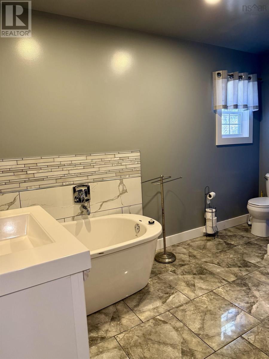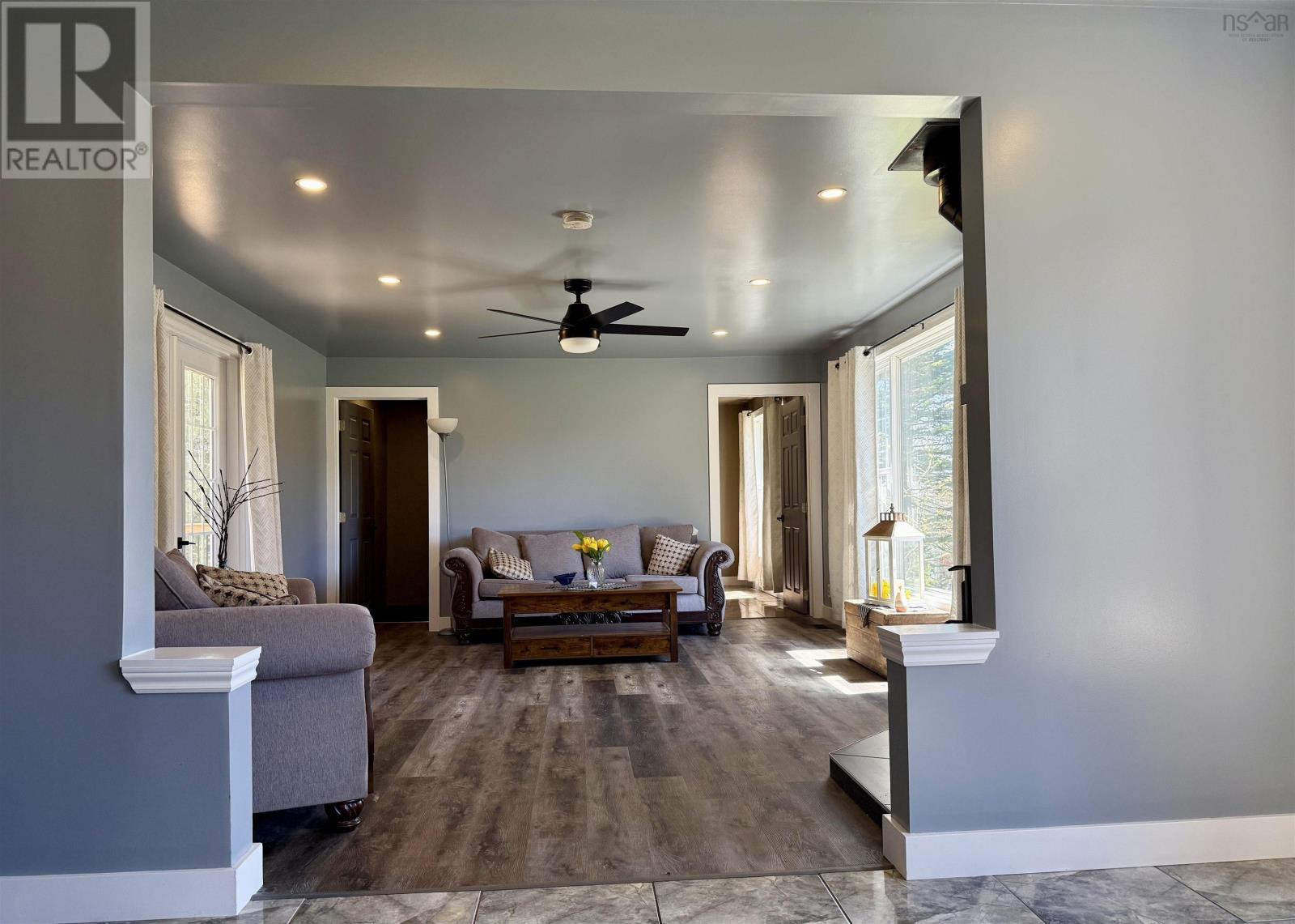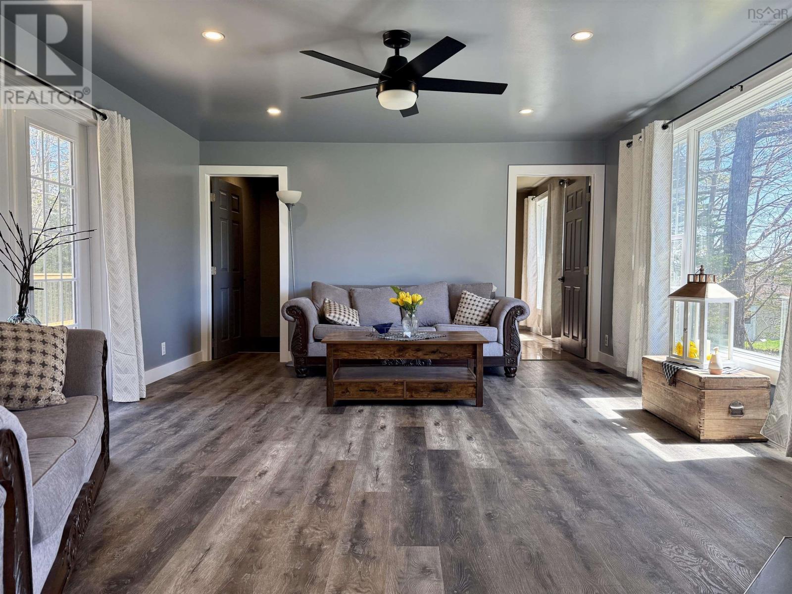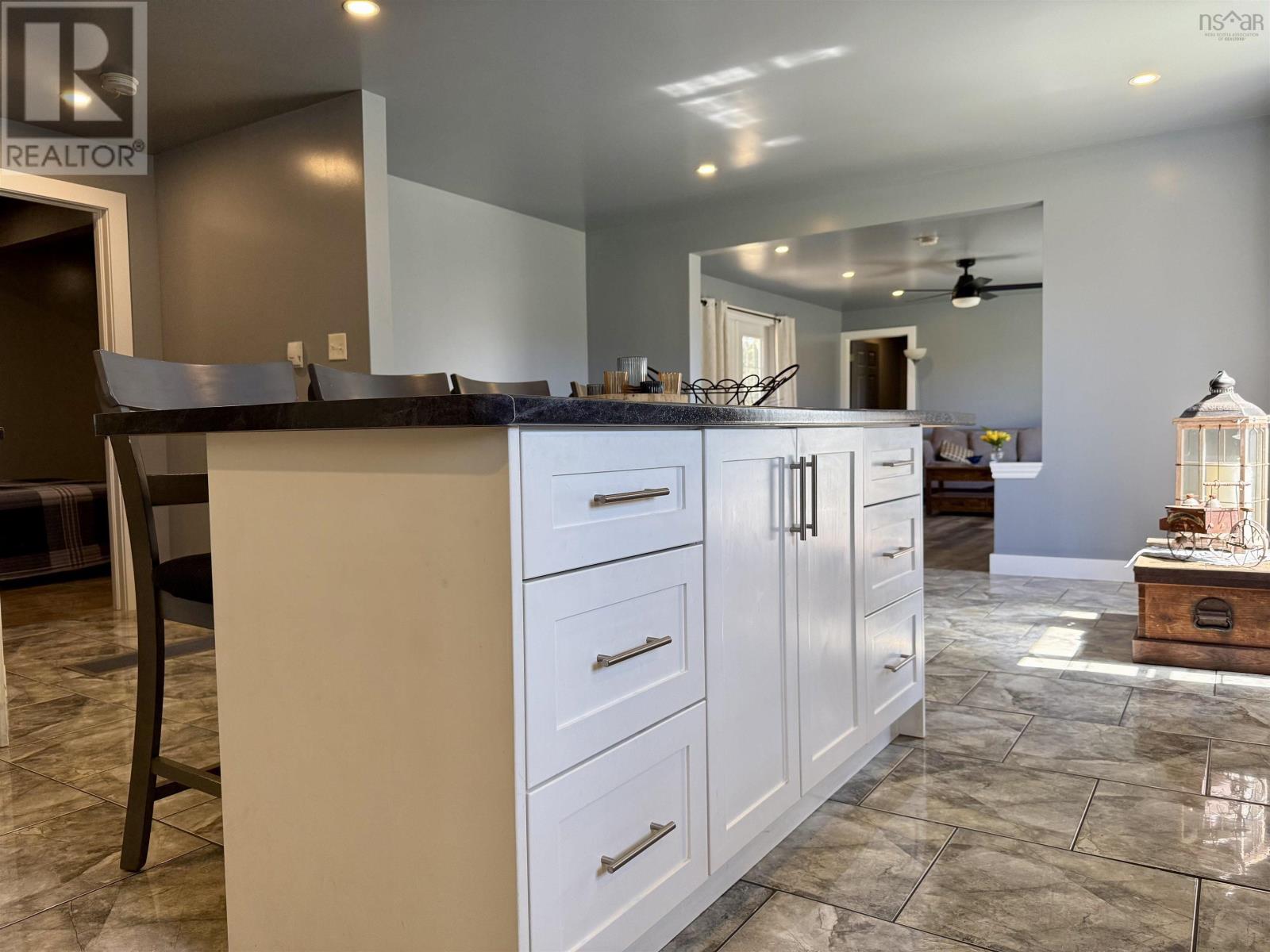 Step into this newly renovated 2 bedroom home. Inside, you'll find an open-concept layout that merges the kitchen, dining, and living spaces, along with a luxurious tiled bathroom complete with in-floor heating, a soaker tub, and a spacious walk-in shower with a large rainfall showerhead. For cozy evenings, enjoy the warmth of a wood stove that also helps reduce heating costs. The large basement offers ample space for extra storage. The exterior features a new roof, deck, and siding that enhance its curb appeal. Situated just a 10-minute drive from the charming Town of Shelburne, Nova Scotia, this home perfectly combines comfort and convenience. (id:49203)