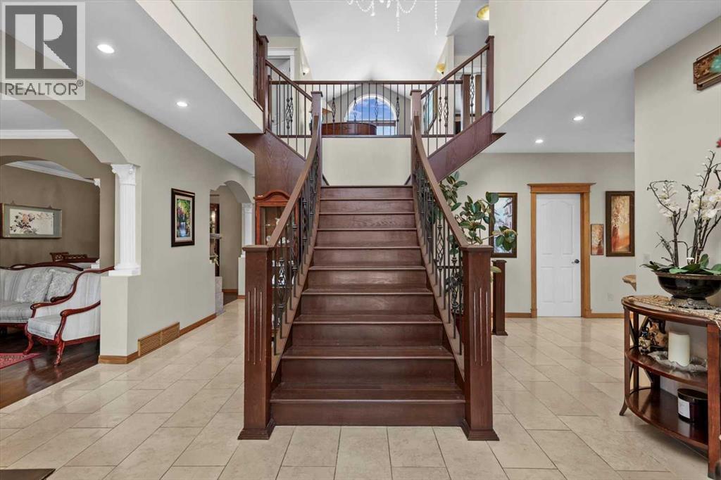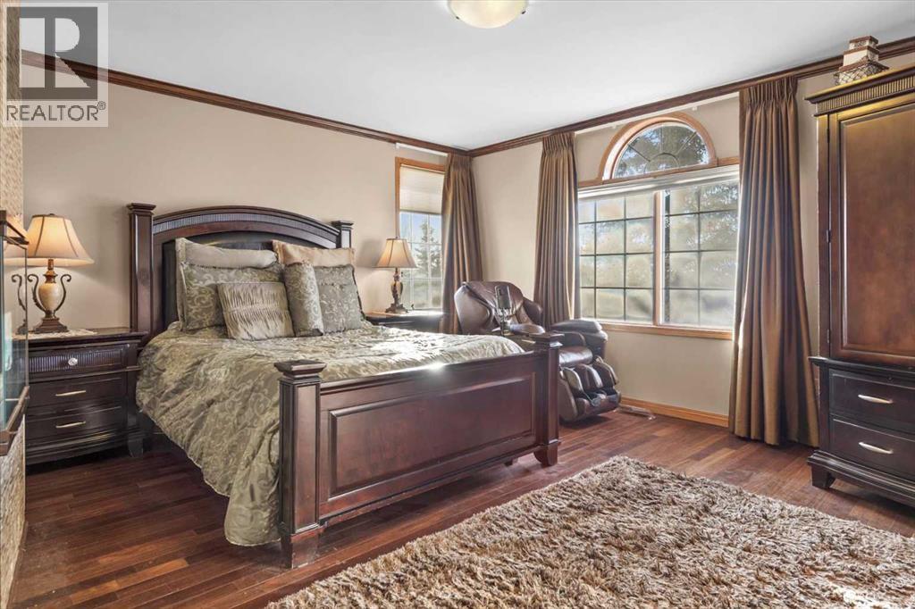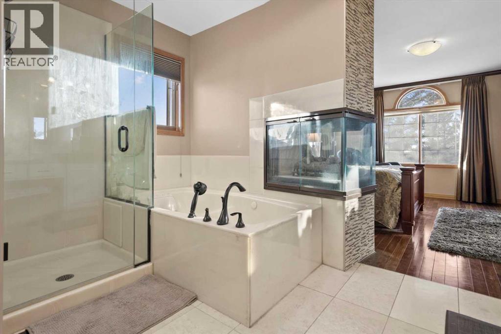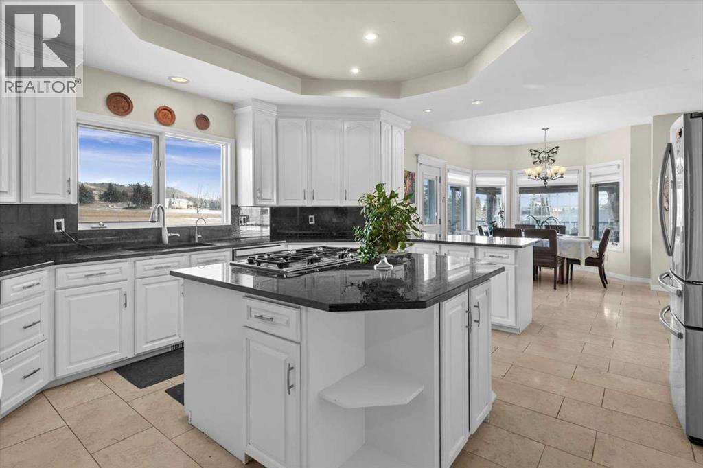 Welcome to Rosewood Estates, an exceptional Springbank community located just minutes west of Calgary. This original-owner 2-storey home with a walkout basement sits on a beautifully landscaped 2-acre lot and offers over 5,000 sq. ft. of thoughtfully designed living space, all positioned to capture sweeping, unobstructed views.Bright, open, and meticulously maintained, the home is ideal for family living with 5 bedrooms and 3 full baths a private home office. The main floor features a spacious kitchen and adjoining family room, along with an additional living and formal dining area complete with a dining nook and access to the expansive deck, perfect for enjoying the property’s stunning vistas.Upstairs, you’ll find a generous bonus room and the primary bedroom, which includes a 5-piece ensuite and a triple-sided fireplace. In addition to the primary suite, the upper level offers a total of four bedrooms, including the primary plus three additional bedrooms, one of which features its own private 2-piece bathroom. A separate 4-piece bathroom completes the upper level, providing excellent convenience and flexibility for family or guests.The walkout level is designed for entertaining, featuring a kitchen area, a living room with a fireplace, a sunroom, an additional bedroom with a 3-piece bathroom, and a playroom.Completing this exceptional property is a spacious triple garage, offering ample room for vehicles, storage, or hobby space. This home provides the tranquility of country living with the convenience of being just minutes from shopping and top-rated public and private schools. (id:49203)