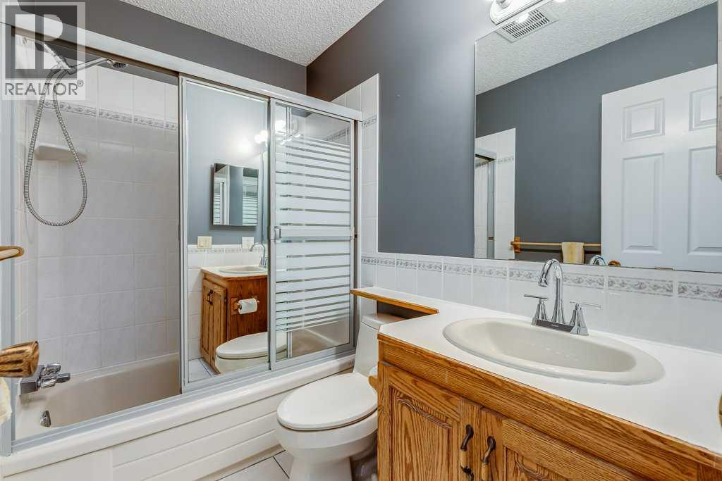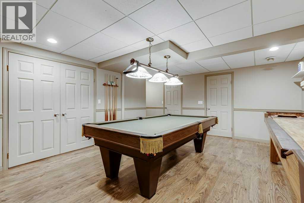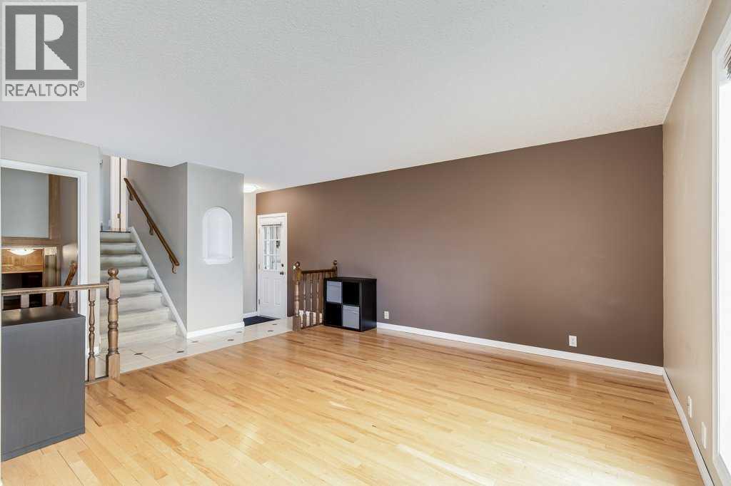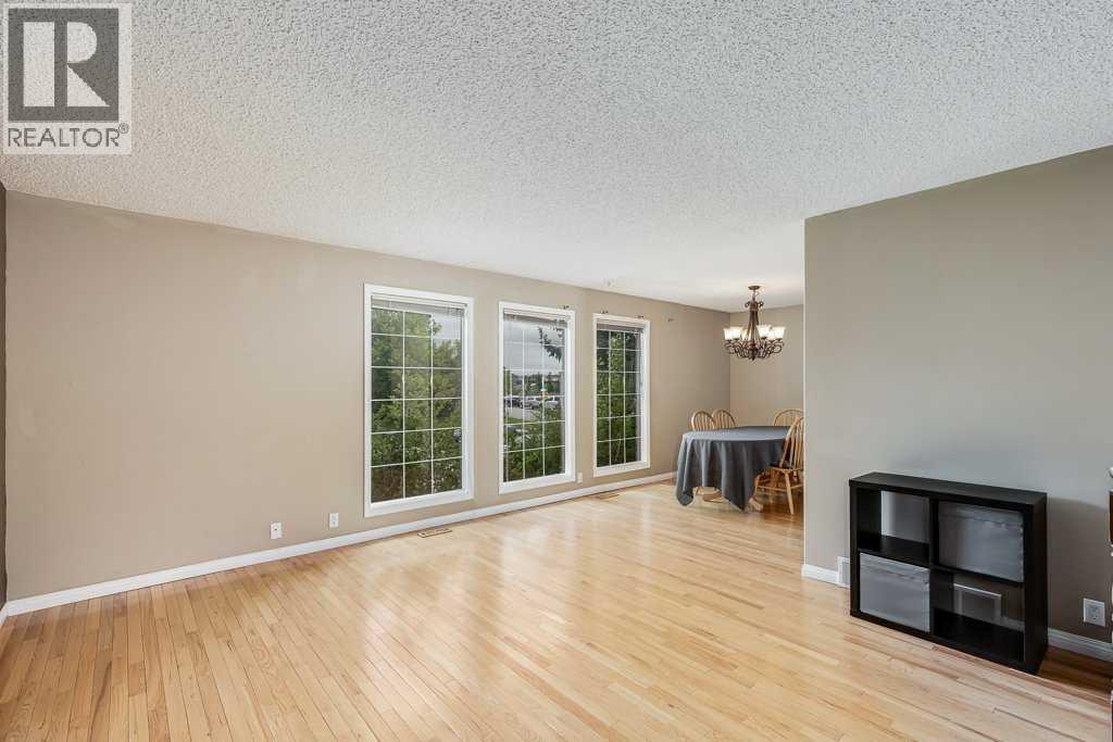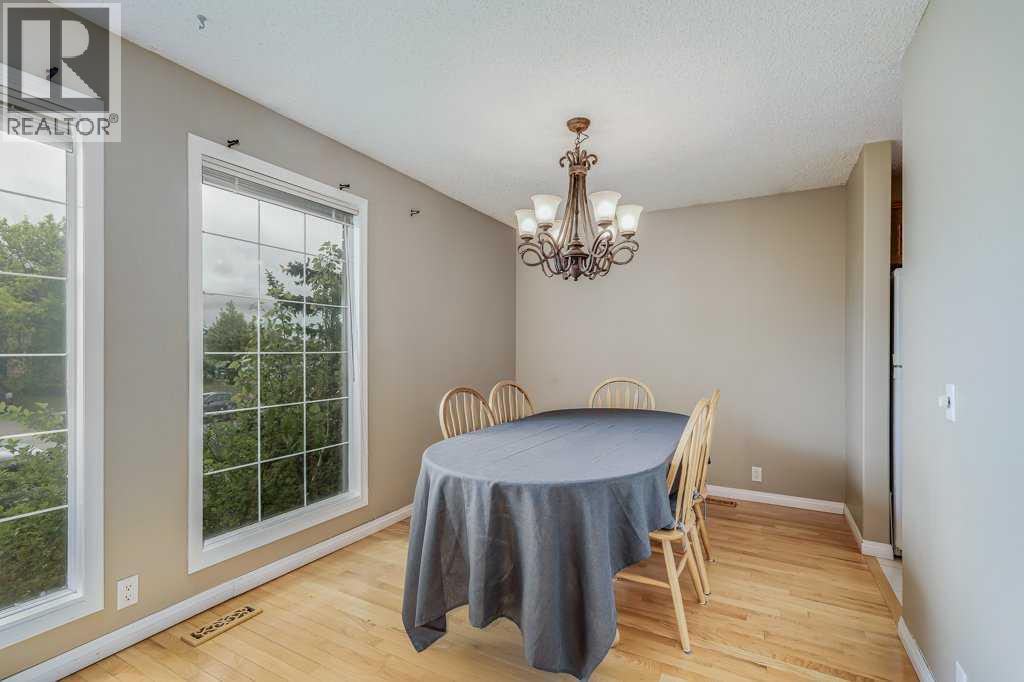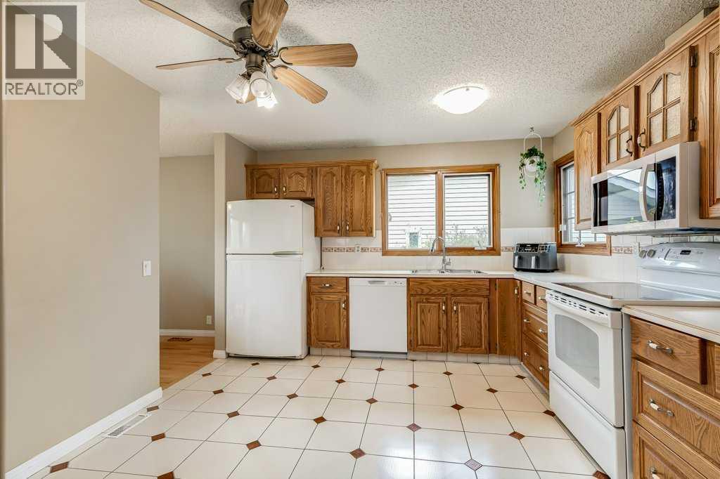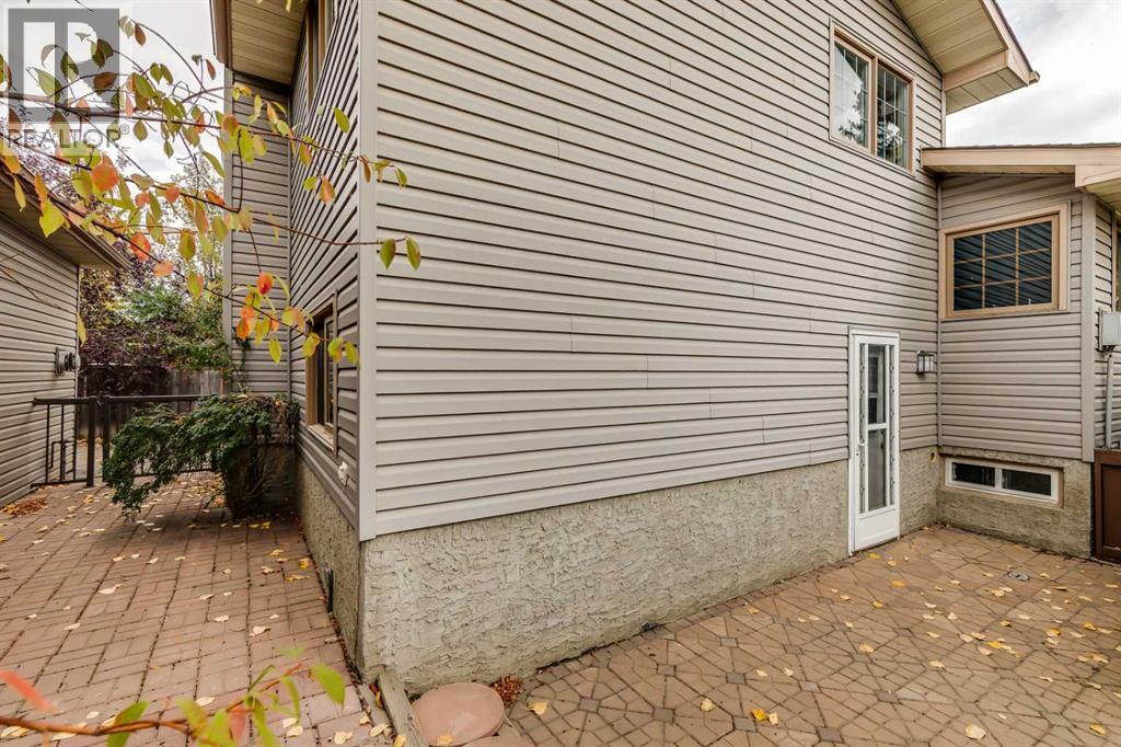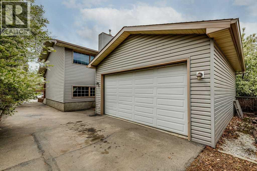 Incredibly located just 2 doors from Nose Creek Park encouraging tranquil walks on the expansive pathway that winds alongside the creek. Want something more urban? This unsurpassable location has the best of both worlds! Walk out your front door in the other direction and bam you’re on Main Street with endless shops, restaurants, services and amenities. Then come home to a private, extremely quiet sanctuary with a heated garage! This charming home is well maintained with many upgrades already completed. The roof shingles, vinyl siding, eaves troughs and downspouts on both the house and garage were replaced in 2015 plus extra insulation was added. New natural gas hot water heater (2018), Telus internet Fibre Drop installed (2019), 2 bathroom fans replaced (2019/2021) and the upper level carpet was replaced with durable laminate in 2 bedrooms and the hallway (2023). Natural light streams into the living and dining rooms from extra south-facing windows illuminating the hardwood floors and creating a bright and airy gathering and entertaining space. The kitchen is well laid out with a plethora of cabinets and drawers plus corner windows for seemingly infinite sunlight. Retreat at the end of the day to the upper level primary bedroom with its own private ensuite, no need to share with the kids! Both additional bedrooms are spacious with easy access to the 4-piece bathroom. Put your feet up and relax in front of the floor-to-ceiling brick encased fireplace in the family room. A separate flex area is great for a home office or study space. French doors lead to the backyard oasis promoting a seamless indoor/outdoor lifestyle. And there is still a fully finished basement with a huge rec room and included billiard table and shuffleboard for friendly games nights with friends and family. Enjoy casual barbeques and time spent unwinding in the backyard privately nestled behind the HEATED double detached garage with an extra long drive for loads of additional parking or an RV. St eps away from the nearly completed Multi-Use and Library Facility. Don’t miss your chance at this solid home in an unbeatable location! (id:49203)