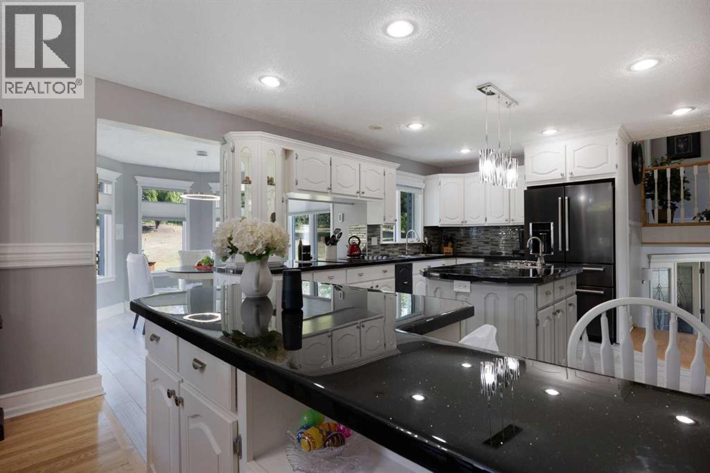 Custom build home on 1.81 acres immaculately kept. Acreage Living at its best. Welcome to 160 Community Lane Pride of ownership shows throughout this custom built home. Entering into the Spacious foyer, featuring custom built-in cabinetry W/ storage. tile flooring. The Formal living room boasts gleaming hardwood floors, floor to ceiling windows, built-in bookshelf & storage. Baseboards & Trim throughout Are Oak. Recently updated beautiful Kitchen with an abundance of custom solid Oak cabinetry, centre island w/ more cabinets & a prep sink, kitchen boasts stylish finishes, newer appliances, built-in wall oven, countertop cooktop facing the back yard the kitchen sink also looks out to the beautiful backyard. kitchen features: under cabinet lighting, Spice drawer, utility drawer, Lazy Susan, a Pullout Chef pantry, broom closet & file drawer beside the built in desk so many features , all cabinets are solid oak. large formal dining area open to the Kitchen & the beautiful sunny Breakfast nook featuring heated tile flooring & big beautiful windows, with access to back deck. The Upper level has 3 generous bedrooms, all with hardwood floors. The primary suite has access to a beautiful 4 pcs. bathroom w/ soaker tub & stand-up shower. the Lower level, you will find a cozy family room with cork flooring, built in cabinets, & a cozy Wood burning fireplace. adjacent to that there’s a exercise/mudroom with access to a 3-pcs bathroom & access to the double attached heated garage w/ newer epoxy flooring, new furnace and Newer garage doors, main door and garage has recently been painted. Basement level has another family room W/ Gas stove a 4th bedroom. Also a fantastic Sewing/ storage room with lots of built in storage. Also a utility rm w/ newer hot water tank & 2–90% high efficiency furnaces with electronic air filters(2017). Beautiful large private deck W/ access off dinette features built in planters and a walk way to a Amazing custom built gazebo crafted from BC Fir with Wood-burning F/P, this is an amazing place to hang out to enjoy the out doors. Double Attached Heated Garage with access to the hose . Additional outbuildings, Large heated workshop w/ 220 wiring , shed. Beautiful manicure grass back yard, lots of private space for family. Newer shingles 2017 septic tank 2023 tied in with city water & sewer, weeping tile inspected 2025 (no issues) , outside rock look siding 2022. Also 90% of window panes throughout have been replaced “triple E” on North, West and East exposure and “Double E” on South exposure. Original owners, no smoking no pets. The parking and the privacy in the back yard is amazing, there is also a good chance you may see deer walking through the back trees. call today for your private showing to this amazing property (id:49203)