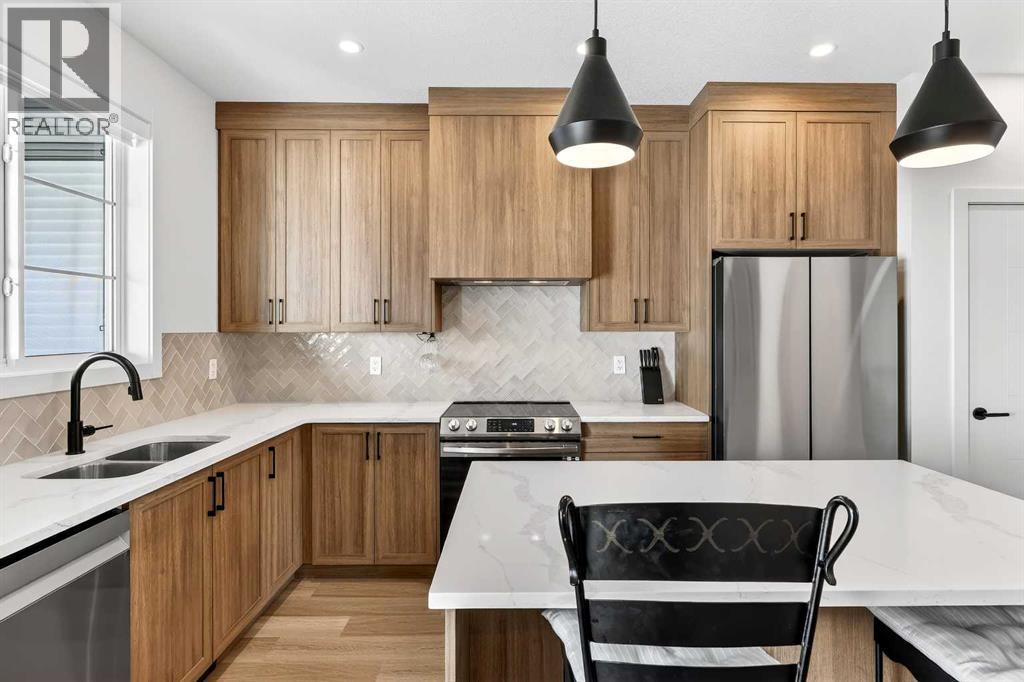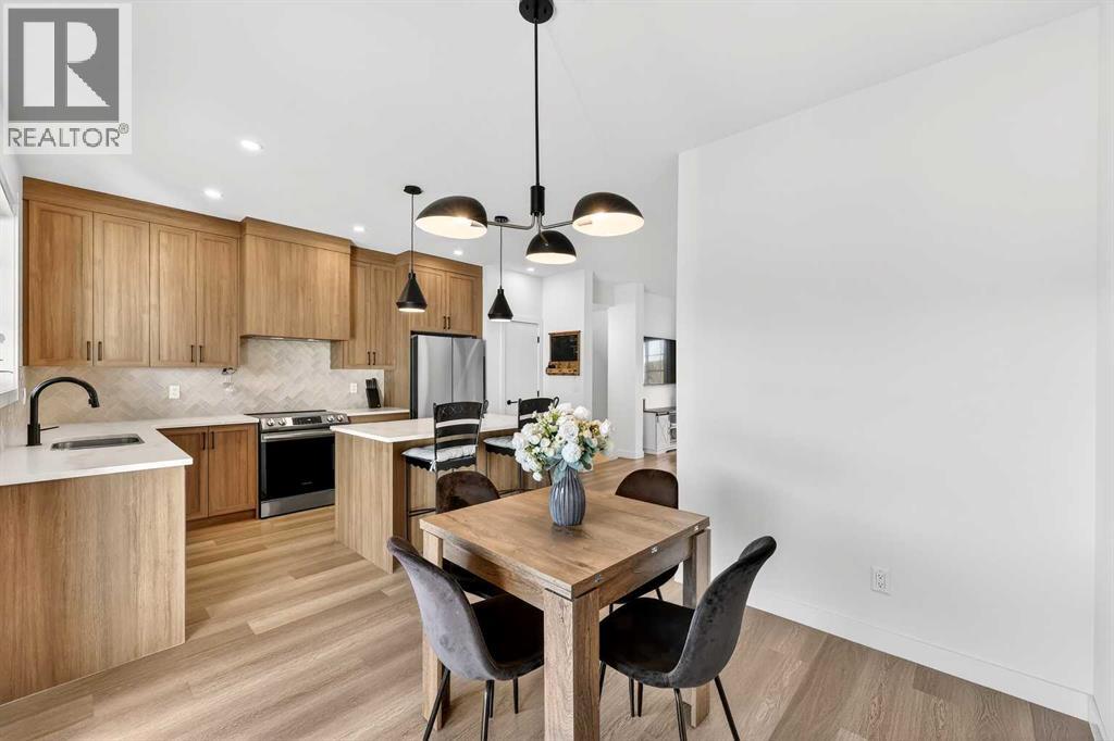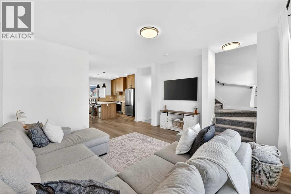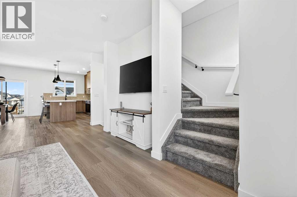 $298 MonthlyOpen House Saturday April 25th 1:00pm-3:00pm. Welcome to #1604 – 201 Cooperswood Green SW, a beautifully designed 3-storey Village Townhome in the highly sought-after Vesta Elevate Collection in Cooper’s Crossing, an 11-time winner of Airdrie’s Best Community Award. Blending modern contemporary architecture with upscale interior finishes, this home offers exceptional style, functionality, and an unbeatable location.The thoughtfully designed open-concept layout features 3 bedrooms, 2.5 bathrooms, and a versatile flex room ideal for a home office, gym, or additional living space. The bright and spacious main floor is perfect for both everyday living and entertaining. The gourmet kitchen is a true highlight, complete with full-height cabinetry to the ceiling, sleek modern finishes, generous prep space, and a layout that flows seamlessly into the dining and living areas. A convenient main floor powder room adds comfort and practicality for guests.Upstairs, the deluxe primary suite provides a private retreat, while the secondary bedrooms are impressively sized compared to most townhome layouts, offering flexibility for families, guests, or work-from-home needs. The overall design maximizes space, natural light, and livability across all three levels.Parking is never a concern with a double attached garage plus two additional private driveway stalls — a rare and valuable feature in townhome living.Located directly across from Cooper’s Town Promenade, you’ll enjoy walkable access to Save-On-Foods, Starbucks, McDonald’s, Shoppers Drug Mart, Pet Value, and everyday amenities. Parks, pathways, schools, and green spaces are all nearby, making this an ideal home for professionals, families, or investors looking to be in one of Airdrie’s premier communities.This is an opportunity to own a stylish, low-maintenance home in a vibrant, award-winning neighborhood where convenience meets elevated living. (id:49203)