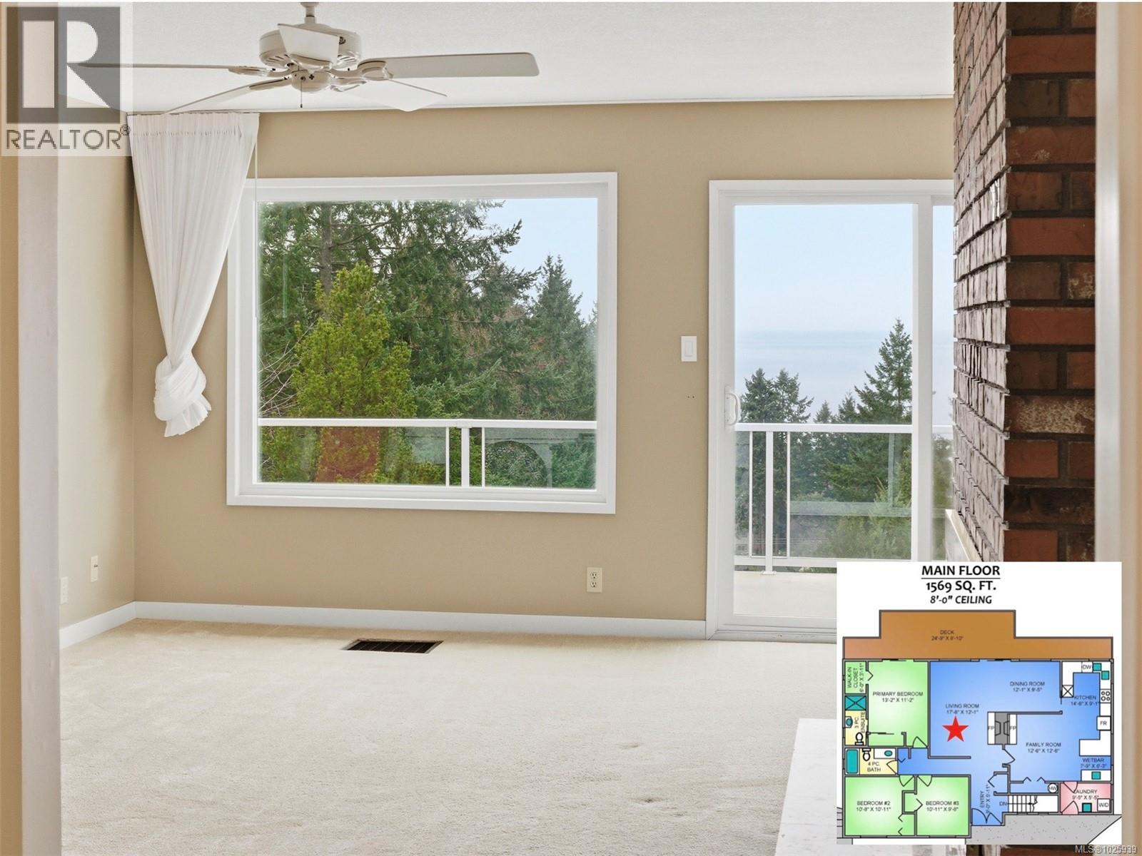 Acreage stye living in the heart of North Nanaimo. Subdivide Potential, suite potential in a fabulous spot. The home is a level entry walkout with 3 bedrooms and 2 bathrooms on the main floor. Upgraded open concept kitchen with sitting room with fireplace and coffee nook. Open concept dining and living room with another fireplace & sliding doors that lead to a large deck with ocean views! The walk out basement can be suited. 220 amps in the finished worksop could be a kitchen. 2 additional bedrooms, bathroom, sauna, storage and living room that leads to the patio. *Double carport. The property also has future potential access to Bradbury road which will give potential for a subdivision in the future. Lovely gardens, lawns, plants, patios. Potential to subdivide 1-2 lots… (id:49203)