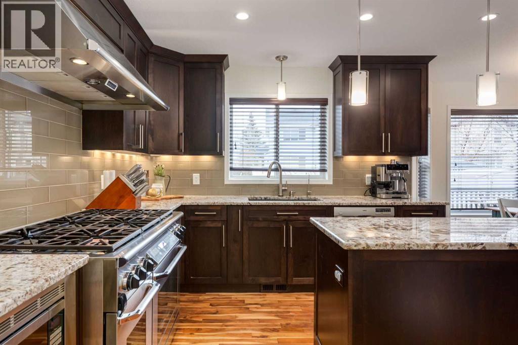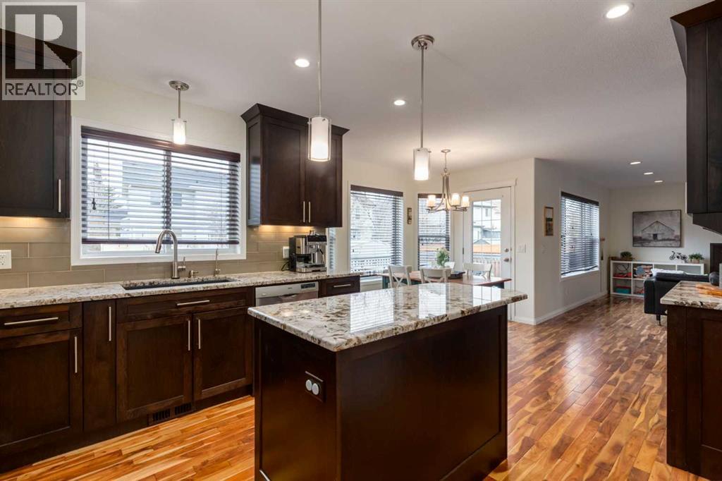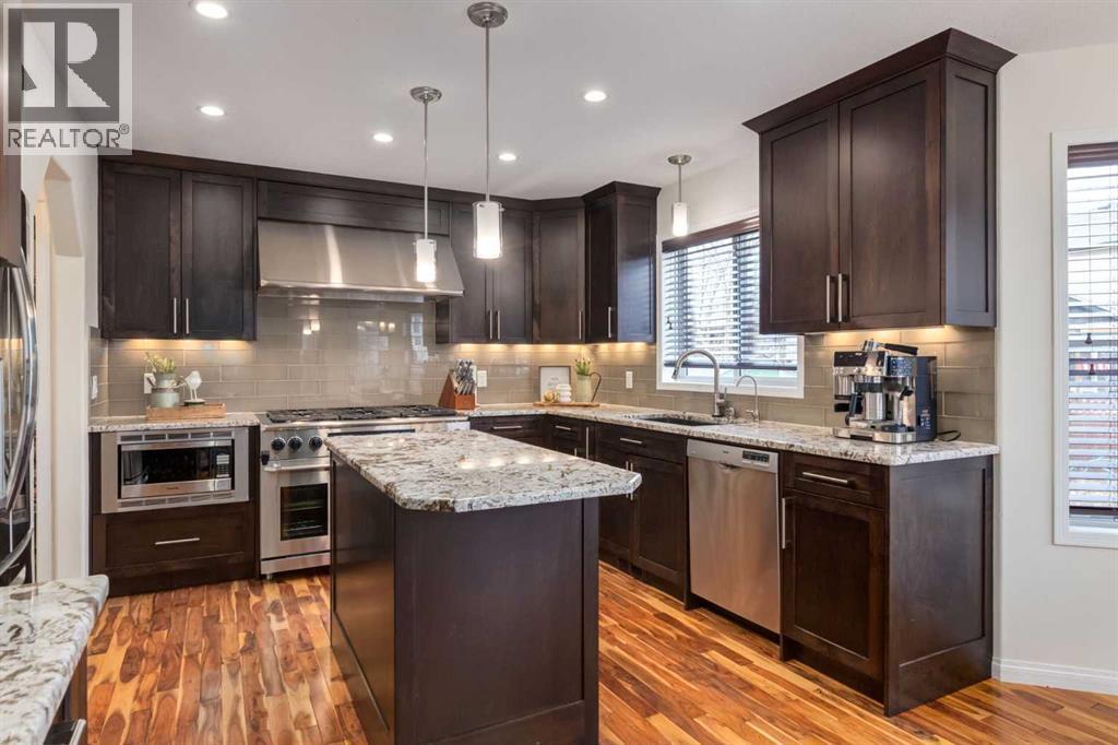 Situated on a quiet street in sought-after and well-established community of West Creek, this fully finished air conditioned two-storey home offers 4 bedrooms, 3.5 bathrooms and over 2700 sqft of total living space. You will love the location just minutes from Trennan pond and Chestermere Lake. This home is beyond welcoming and has curb appeal in abundance. You will pass by garden plots full of gorgeous flowers and a covered front porch as you step into the naturally bright front entry into this inviting home. The main floor offers a classic layout with hardwood flooring running almost entirely throughout. People working from home will love the spacious front flex room which can lend itself as an office or whatever you may need. The great sized living room features a gas fireplace and plenty of space for your furniture. The heart of this home is the impressive custom eat-in kitchen. It's both stylish and highly functional with granite countertops, soft-close cabinetry, stainless steel appliances including a show-stopping 6-burner gas stove with dual ovens and range hood, built-in wine rack and reverse osmosis water tap. A large pantry with convenient pass-through to the laundry/mudroom makes bringing in groceries a breeze. A convenient ½ bath rounds out this floors offerings. Upstairs you will discover 3 generous bedrooms including an ample sized primary retreat with a walk-in closet and 5pc ensuite which includes a private water closet, jetted soaker tub, dual vanity and views of Trennan Pond. An additional 4pc bath with linen closet completes the upper level. The fully finished basement extends the living space with a large recreation/media room that’s wired for surround sound with a second gas fireplace and an area great for a play space, home gym or your various hobbies. A 4th bedroom with an oversized walk-in storage closet 3pc bath with custom tiled shower and cozy in-floor heat as well as under the stair storage finish off this floor. Outside you will find an incredibly lush lawn, fire pit, 2 storage sheds, a charming greenhouse and organic garden beds (no pesticides have been used here) for those looking to grow their own veggies, a fenced in dog run and a large sun deck ideal for BBQ’ing – add all of this together and you have created your own personal backyard oasis designed for entertaining and relaxation. Say goodbye to scraping your windshields in Winter, the heated attached double garage with man door will make life so much easier. Living here means you’ll have quick access to major roadways making it an easy commute into Calgary as well as access to year-round activities with Chestermere Lake and Trennan pond/pathways just minutes from your front door. There is something for everyone with the golf course, skate park, community center, schools and playgrounds all within walking distance. Chestermere continues to grow offering tons of amenities including the soon to be built Bridgeport district nearby. This house could be your home! (id:49203)