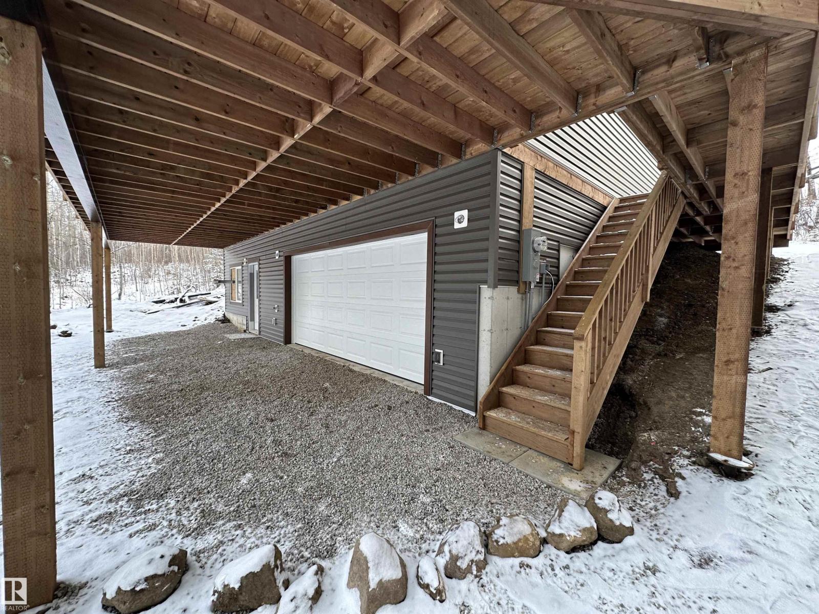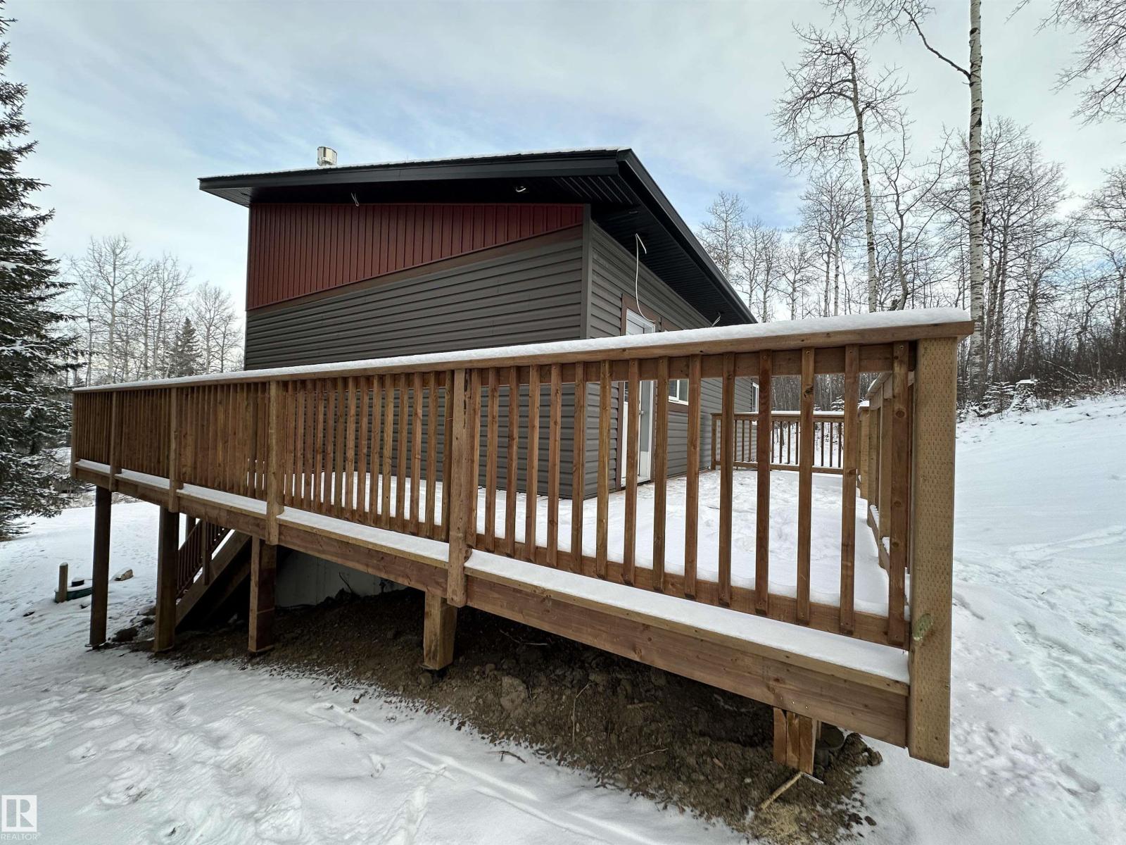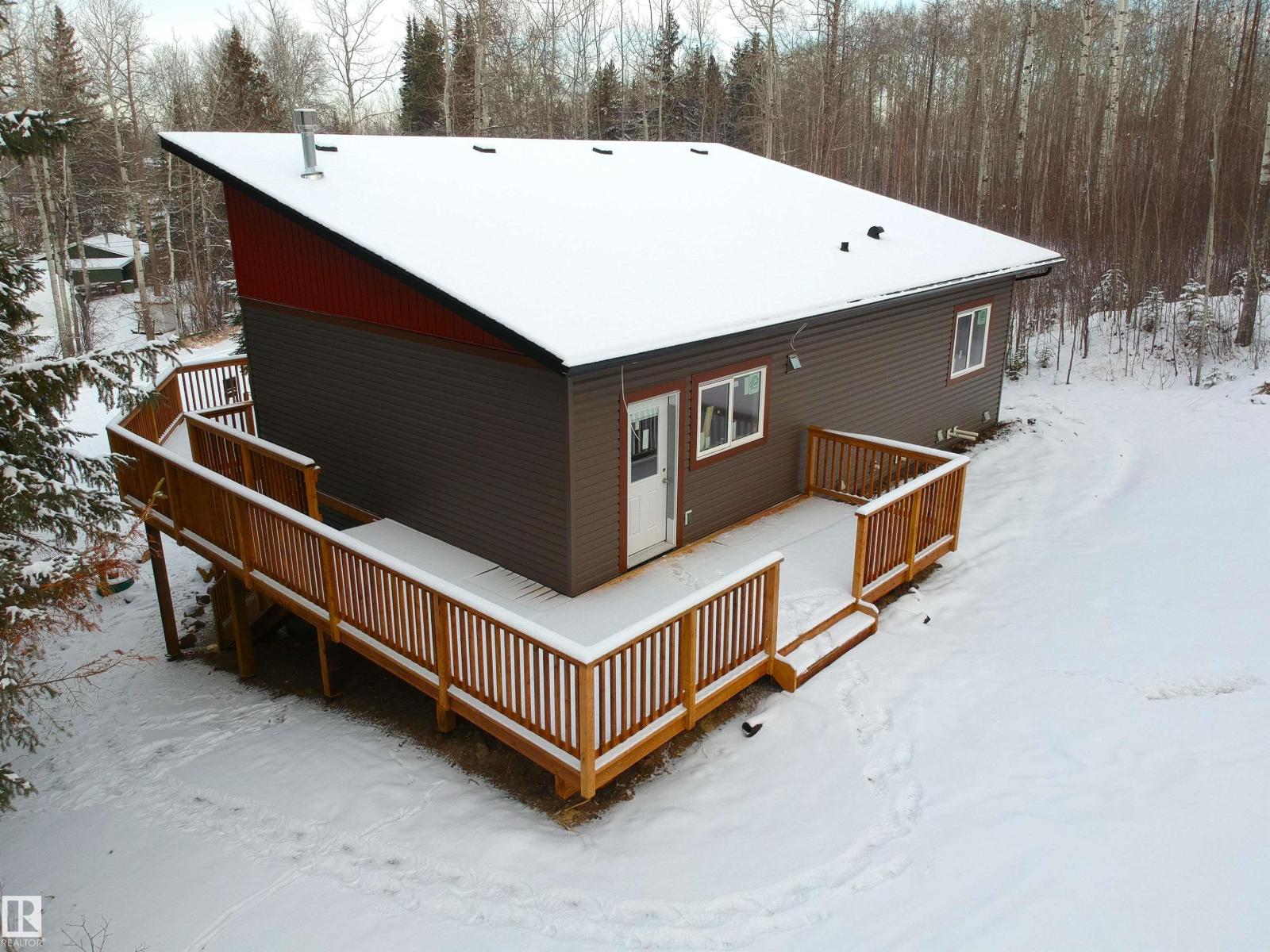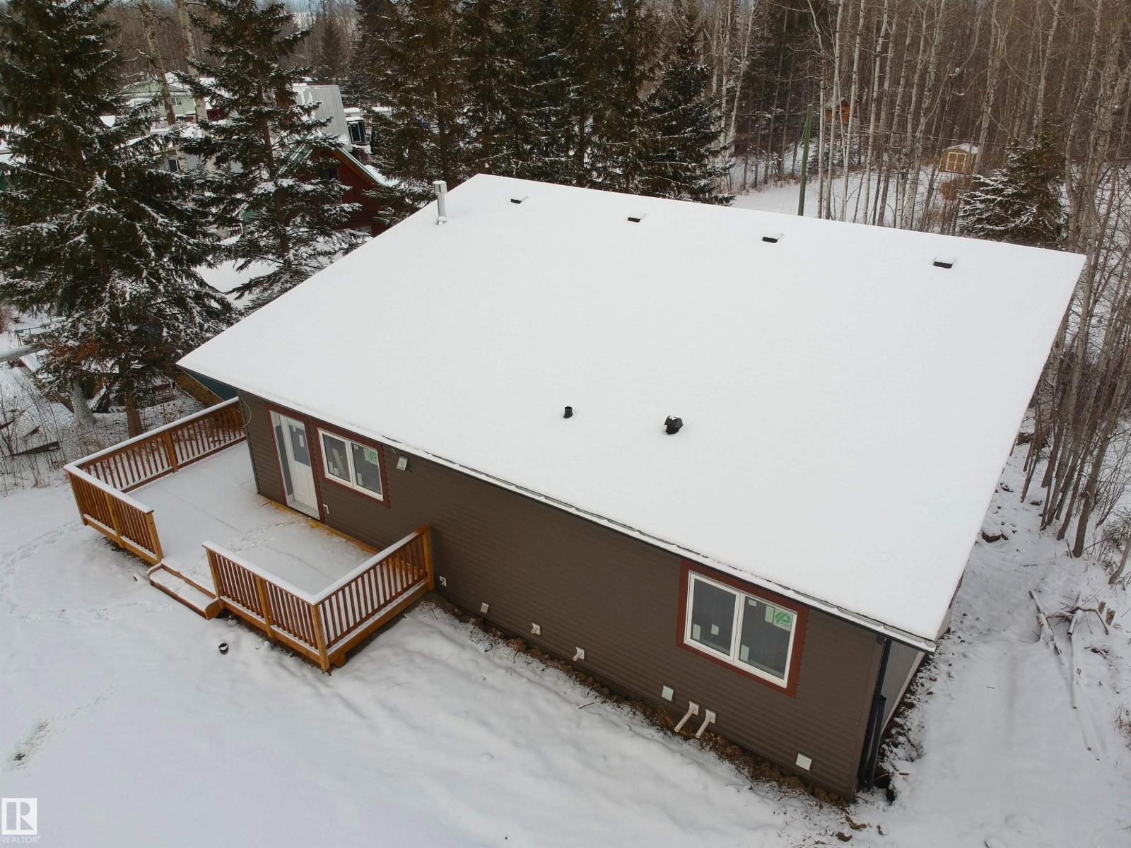 Under Construction and move in ready by Jan 31/26 ... Custom built 960 sqft raised bungalow with walkout basement garage. Wide open design, 14' vaulted pine tongue & groove ceiling, fireplace, luxury vinyl plank flooring, big windows w loads of natural light, 8' quartz topped peninsula island, shaker style kitchen cabinets, 4 piece stainless steel appliance package, walk-in pantry, 2 bedrooms up and 4 piece main bath. Stepping out of the vaulted great room, you're immersed in the peaceful sights and sounds of nature off your huge wrap around deck. The finished walkout basement has in-floor heat, 9' ceilings, primary suite with a 4 piece ensuite, laundry room, utility room and a 21 x 24 drywalled, taped and painted garage. 100 AMP power service, drilled well and a 2800 gallon septic holding tank. Tucked on a private, pie shaped lot surrounded by mature trees. Close to the shores of Isle Lake, the beach, boat launch and only 45 min west of Edm. Price includes GST, with rebate assigned back to the builder. (id:49203)