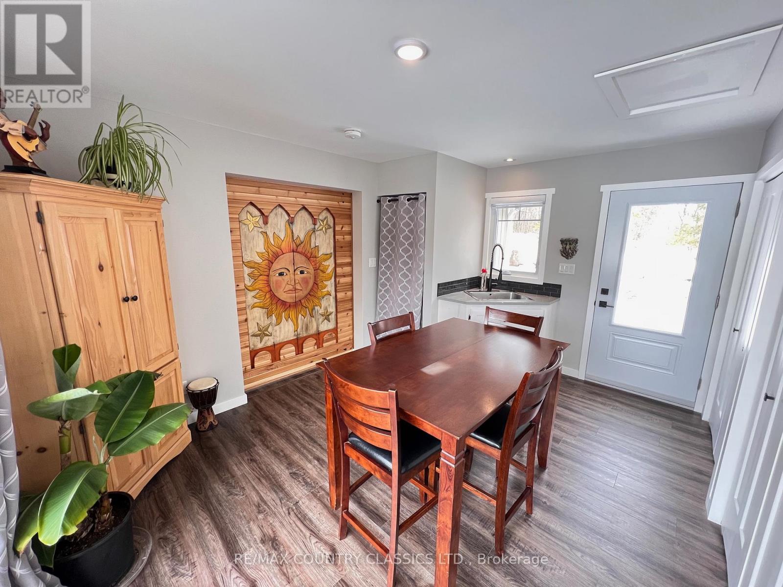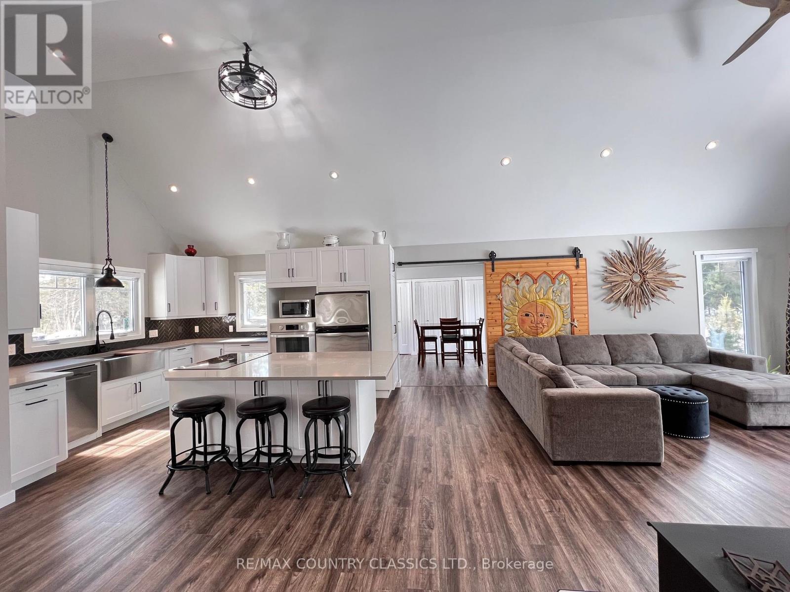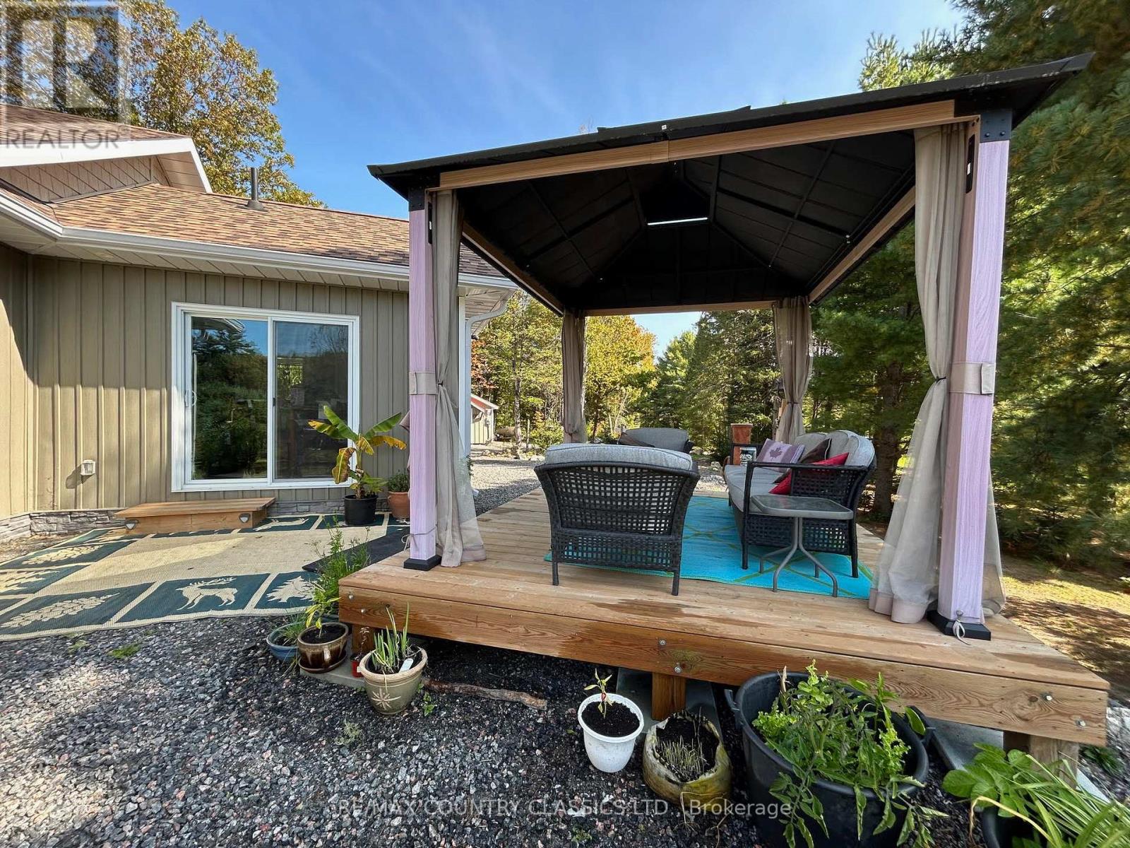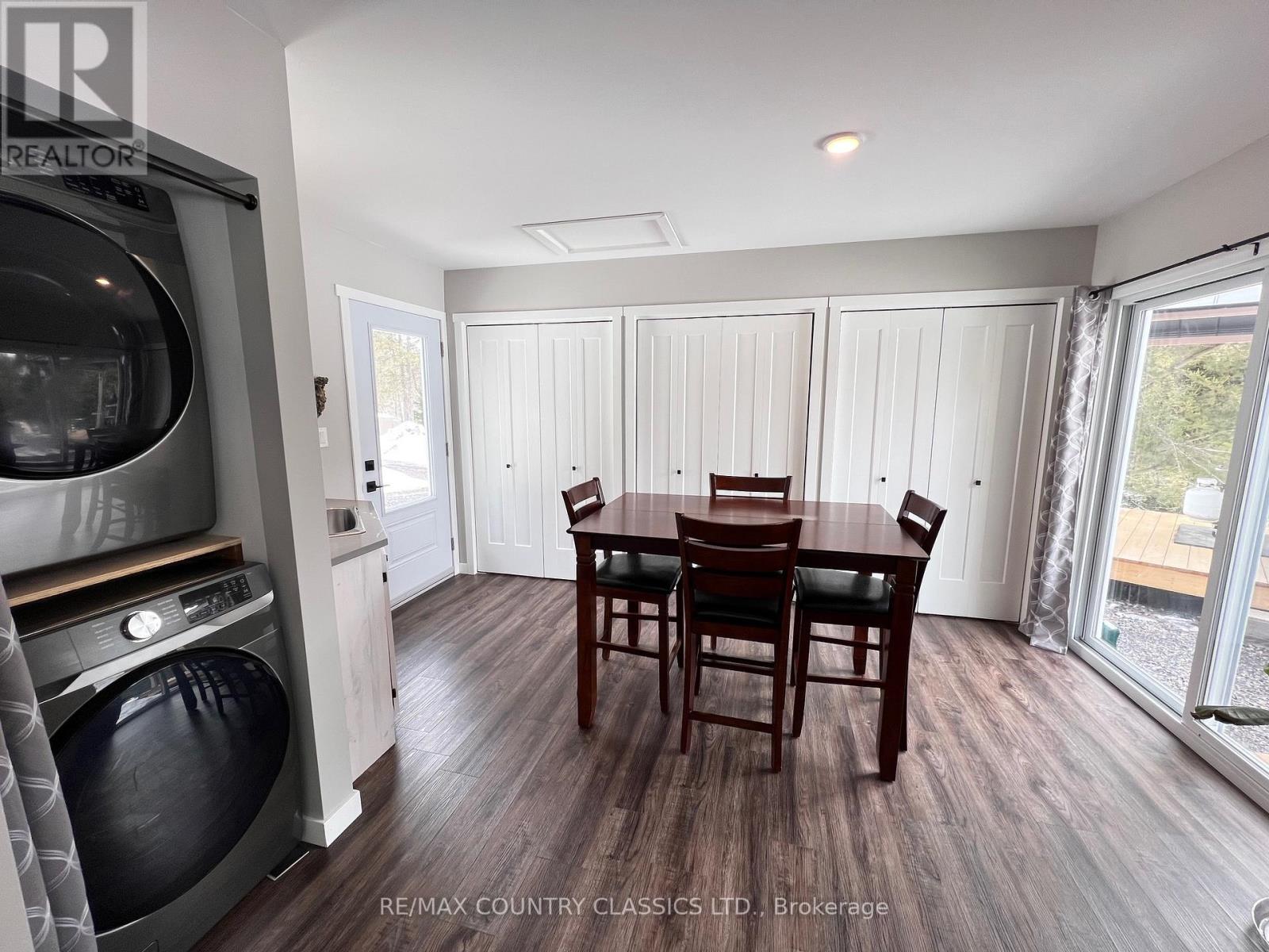 Looking for your dream escape in the country - look no further. Here is your scenic 106 acres backing on to thousands of acres of crown land. There is an extensive trail system throughout the property which is excellent for ATV's or horses. Only 15 minutes from Parry Sound, all amenities are at your doorstep. Built in 2022, this meticulously maintained 2 bedroom bungalow offers the ultimate privacy and no light pollution. A park-like setting with an incredible view overlooking a creek that meanders through the property. Living room and kitchen combination with a cozy wood stove and lots of windows to appreciate your view all day long. Dining room opens to the back yard where you can enjoy your morning coffee in the gazebo. Detached 28 X 37' garage is heated and is the ultimate man cave/workshop. Heated shed on the property for extra storage. For the nature lover or hunter, there is an abundance of wildlife on the property! There is a year round spring fed pond and this well treed property has logging potential. Home has in-floor heating, hot water on demand and the generator is wired in. Very economical to heat. Hydro average $150.00 a month and propane is approx $2000 a year. (id:49203)