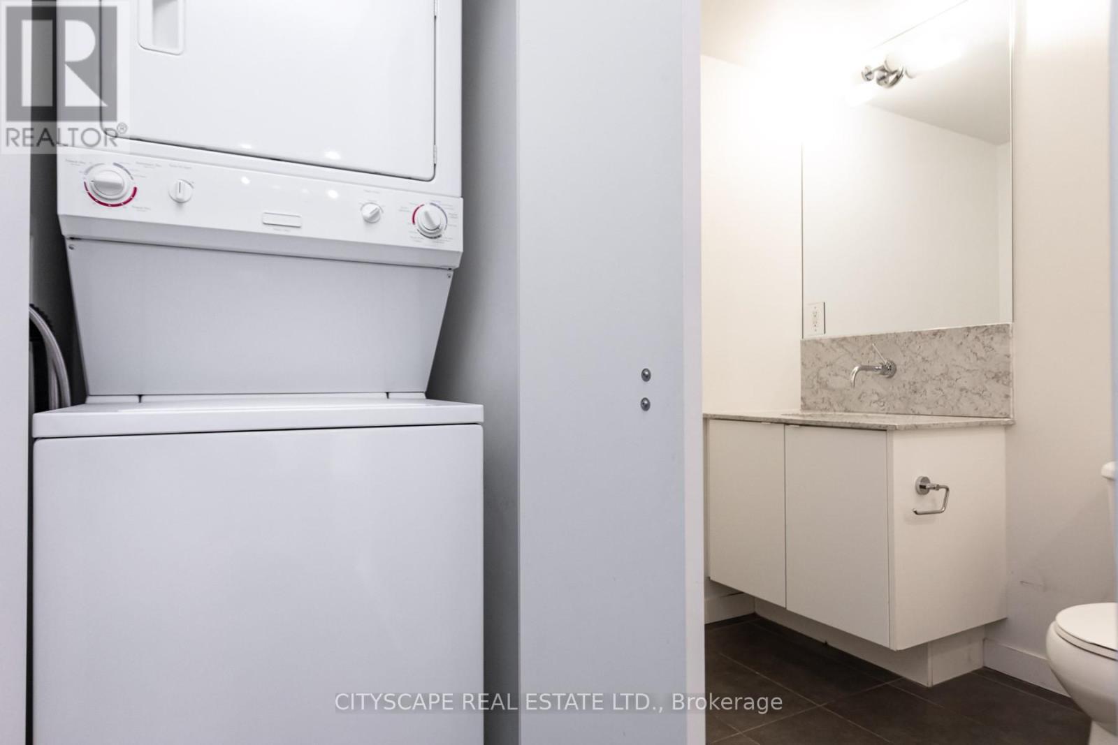 Well, Sunlit Suite with South East corner with City & lake views. Very spacious close for a one bedroom unit with large balcony, 9 ft ceiling, granite counters, SS appliances, modern kitchen w/center island overlooking living & dining. The best of vibrant liberty village. A short walk to the GO transit, King Streetcar, and the lake & BMO field. Natural light in every room. Ensuite Laundry. The unit is pet-friendly. (id:49203)
