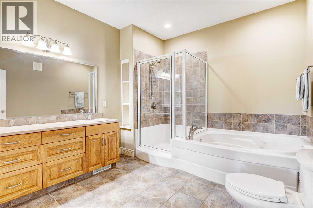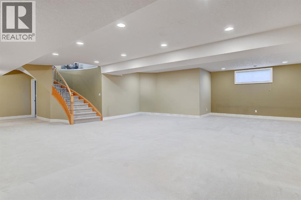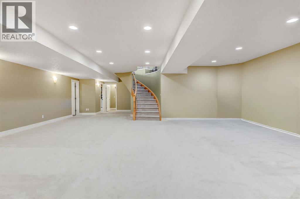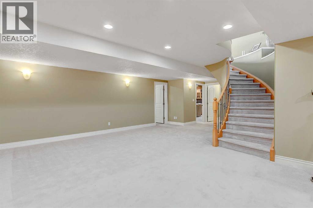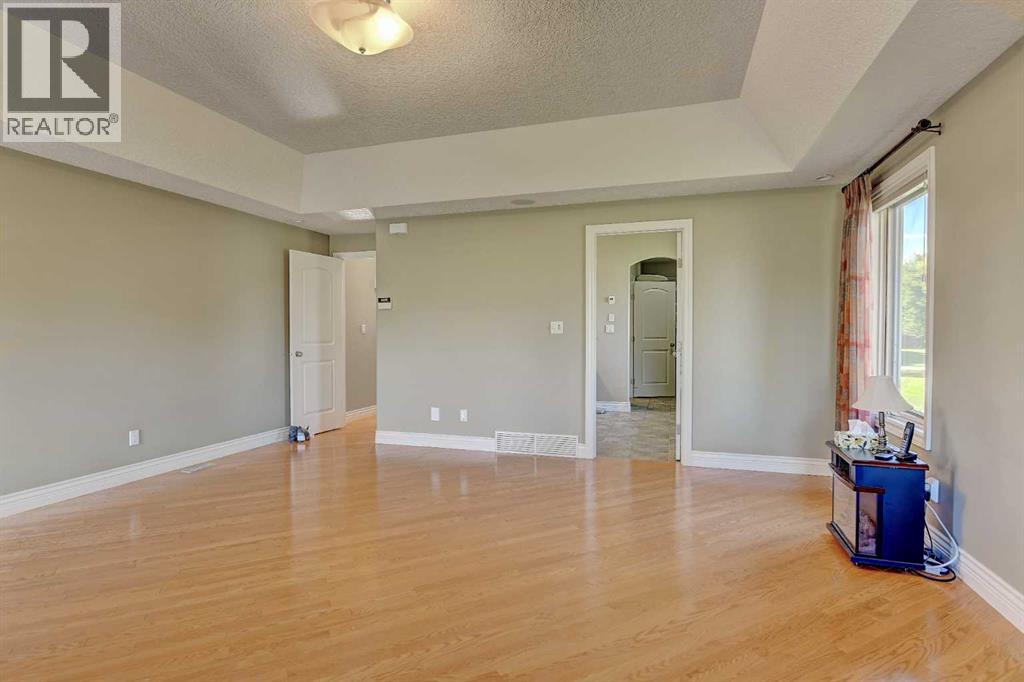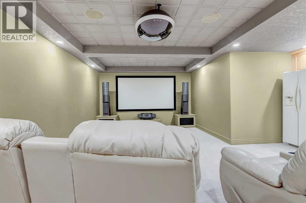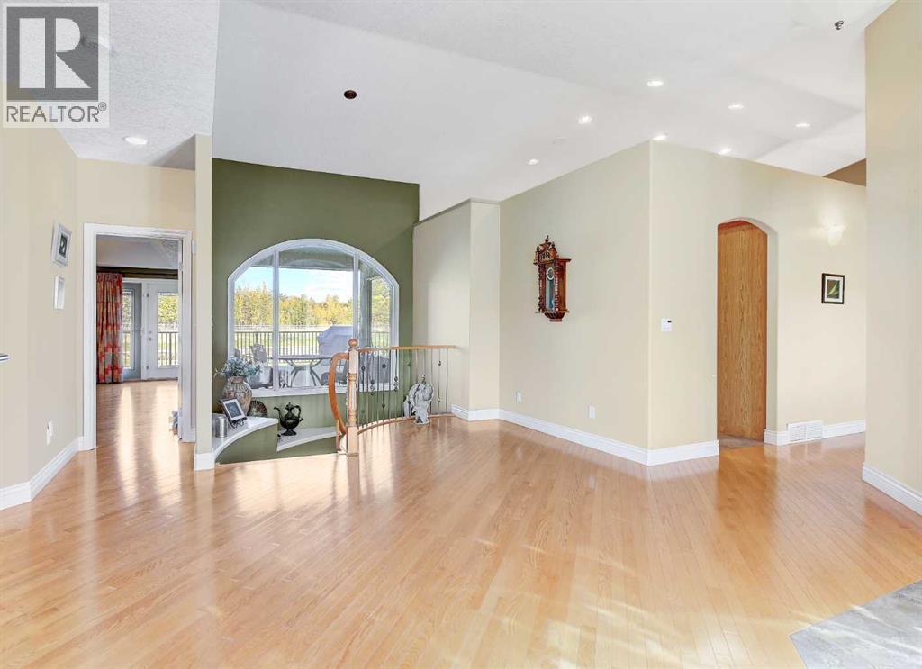 Backing directly onto the Dunes Golf Course, this custom bungalow offers room for both daily family life and entertaining. Hardwood floors run throughout the main level, setting a warm tone the moment you step inside. Off the foyer, a formal dining room with a trayed ceiling and a large window is made for dinner parties, while the vaulted living room offers another refined space for conversation. The kitchen opens up with solid wood cabinetry, a center island, tiled flooring, stainless steel appliances, and nearly 20 ft vaulted ceilings. The walk-in pantry provides even more storage. The breakfast nook, surrounded by windows and patio doors, frames uninterrupted views of the Dunes Golf Course. From here, the vaulted ceilings continue into the family living room, where a gas fireplace anchors the room and tall windows fill it with natural light. The generous size allows kids to sprawl with toys or homework while still keeping everyone connected. The primary suite sits privately on one side of the main floor, with patio doors opening directly onto the deck. With trayed ceilings, room for a king bed plus a sitting area, and a generous walk-in closet with shelving for every season, it feels like a retreat at the end of the day. The ensuite includes a soaker tub, walk-in shower, and wide vanity, while an adjoining jack and jill half bathroom gives opportunity for a primary with dual bathrooms. On the other side of the main floor you’ll find two additional spacious bedrooms and a full bathroom with a soaker tub and shower. A large laundry and mudroom with extensive cabinetry, a sink, and closets completes the main level. A curved staircase leads down to the finished basement with 9-foot ceilings and in-floor heating. The family room here is expansive, with space for billiards, a play area, or another family room. Two oversized bedrooms, full bathroom, and a massive storage room with built-in shelving extend the home’s functionality. The theatre room makes nights in feel s pecial, complete with a projector, large screen, and built-in speakers. A full wet bar with a sink, dishwasher, fridge, and cabinetry turns it into an unparalleled snack zone, keeping the evening flowing without needing to head upstairs. A half bathroom sits nearby for convenience. Outside, the yard is designed to be lived in. Paver walkways lead to a firepit, while the large deck with a gas line and hot tub overlook the golf course with no rear neighbours.The triple car garage offers not only parking, but space and security for vehicles, golf carts, and toys. This home is rounded out with a A/C, central vac, built-in sound system, double-pane windows, and city water. That’s not all, say goodbye to shovelling your driveway!! That’s right, the large driveway is cleared for you all winter long. - for a fee. Spacious, quiet, and set in one of Grande Prairie’s most prestigious neighbourhoods, this property offers a lifestyle few homes can match. Call your REALTOR® (id:49203)