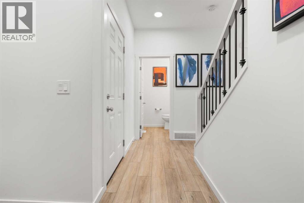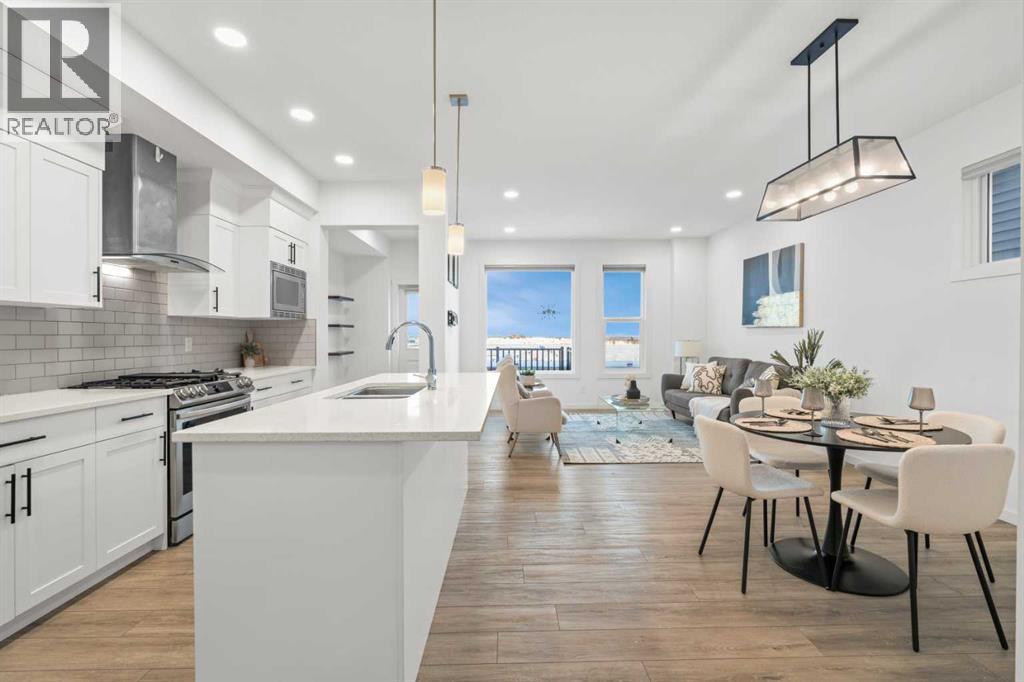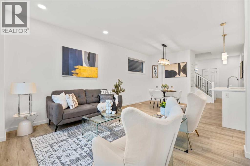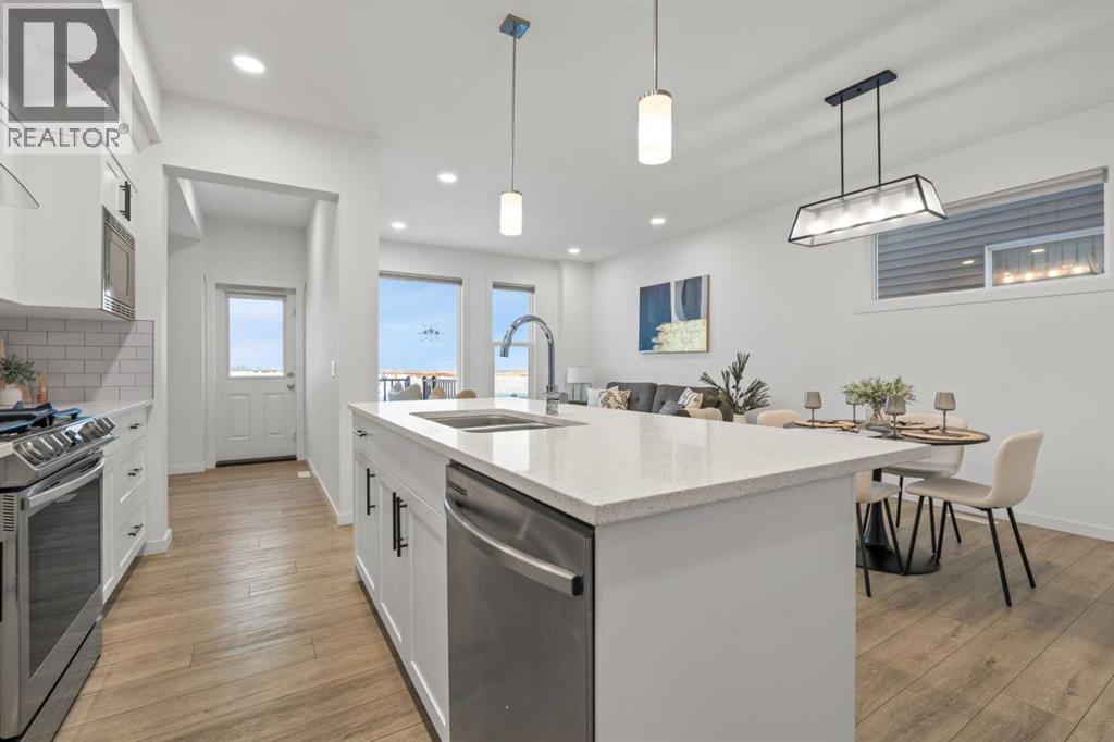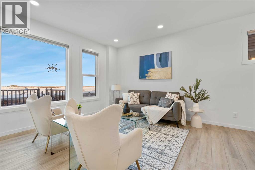 Welcome to this beautifully appointed 3-bedroom, 2.5-bath duplex in the peaceful and thoughtfully designed community of Creekstone—one of Southwest Calgary’s most exciting new neighbourhoods. This home offers the perfect blend of modern comfort and natural surroundings, featuring a quiet family-friendly street, a single attached garage, a spacious backyard with an oversized deck, and open views with no rear neighbours—including a glimpse of downtown Calgary. Inside, the main floor is filled with natural light thanks to oversized windows, 9 ft ceilings, and light-toned luxury vinyl plank flooring. The kitchen stands out with stainless steel appliances, rich dark cabinetry raised to the bulkhead, quartz countertops, a large pantry, and a generous centre island, all flowing into a bright dining area and a stylish rear living room with wall-to-wall windows, patio doors, and a custom wood-slat entertainment wall. Upstairs, a central bonus room provides flexible space, while the primary bedroom offers downtown views, a walk-in closet, and a beautiful 4-piece ensuite. Two additional bedrooms, a full bathroom, and a dedicated laundry room complete the upper level. The home also includes a separate side entrance with basement framing and plumbing already done, making it easier to convert into a future 1-bedroom suite (subject to city approval), supported by a low look-out basement window at eye level. Living in Pine Creek means enjoying over 50% preserved natural land with walking paths, wetlands, storm ponds, and playgrounds, plus future plans for a school and sports fields—all while being minutes from South Health Campus, Spruce Meadows, Fish Creek Park, and major routes like Macleod Trail and Stoney Trail. Whether you're starting a family, seeking more space, or exploring rental potential, this home delivers exceptional value, comfort, and lifestyle. (id:49203)
