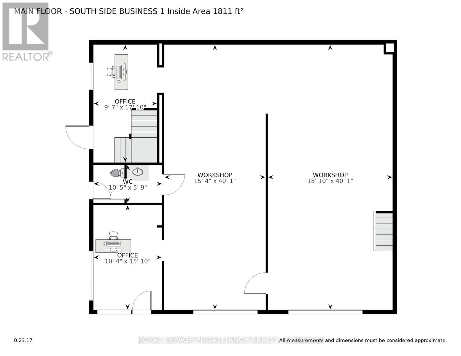 A rare opportunity to acquire a substantial commercial property in the heart of Brockville's core. Situated on slightly under acre, this high-visibility property offers over 5,000 sq. ft. of versatile commercial / retail space, making it an excellent investment with multiple income streams and future-use possibilities.The building is currently configured into two separate units: South Unit:This space features office areas, storage, a washroom, two 10-ft bay doors, 3-phase power, and a loft area. The loft was previously used as a residential apartment (complete with fire escape) and is currently utilized as office space, but offers the potential to be restored as a residential rental unit, creating an additional income opportunity (subject to approvals). North Unit: Currently leased, the north unit provides immediate income and includes two bay doors (one on each side), a large retail/showroom area, and a rear workshop space - ideal for a wide range of commercial operations. Constructed of solid cinder block, the building offers durability and long-term value. The north portion features a steel roof, while the south portion has a membrane roof. The property benefits from ample on-site parking and excellent exposure in a central, well-trafficked location.Please note: this is a BUILDING ONLY sale. With strong visibility, flexible layout, and existing tenancy, this property presents outstanding potential for investors, owner-operators, or businesses seeking a prominent Brockville location. Numerous permitted uses and redevelopment possibilities make this a compelling addition to any commercial portfolio. Centrally located near Highway 401. (id:49203)