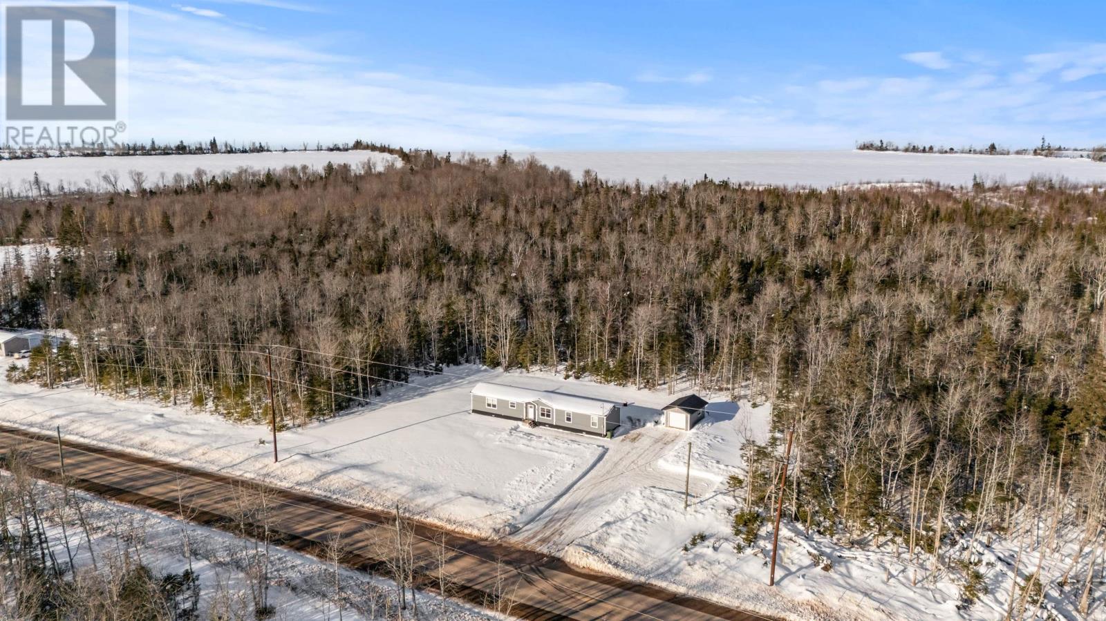 Newer Contemporary Rancher-style 3-bedroom, 2-bath home can be your own Rural Paradise, perfectly situated on a level, sprawling 9-acre lot that?s partially cleared but surrounded by natural woodlands. This property features direct access to the renowned Confederation Trail which is perfect for 4-season activities, and is conveniently centrally located less than 25 minutes from Stratford, Charlottetown and Montague. This is a well-maintained, sunny & cheerful home featuring an open concept with cathedral ceiling in the main living area, a spacious kitchen with a full complement of stainless steel kitchen appliances, an informal neo-angle breakfast bar and generous built-in pantry. The light & bright living room features large windows, and the separate dining area has expansive patio doors which let in an abundance of natural light, with access to a generous raised deck overlooking the private wooded rear yard and grassy play areas - perfect for outdoor dining and entertaining. Oversized primary bedroom features walk-in closet, ensuite bath with modern gliding glass door walk-in shower and large vanity. There are two additional bedrooms and a 2nd full bath with tub, plus a conveniently located laundry closet with bi-fold doors to complete this wonderful home. Bonuses: Low-maintenance flooring throughout, crown mouldings, a welcoming foyer with storage closet, plus plenty of extra storage space. The home is economically heated by electric and features a centrally located heat pump for heating and air conditioning The recently constructed detached outbuilding is wired and ready to hold all of your toys, and includes a great workshop area for a variety of projects. Oversized gravel driveway with convenient access to the outbuilding and vehicle-friendly turn-around area makes access to the year-round paved Mount Stewart Road a breeze. (id:49203)