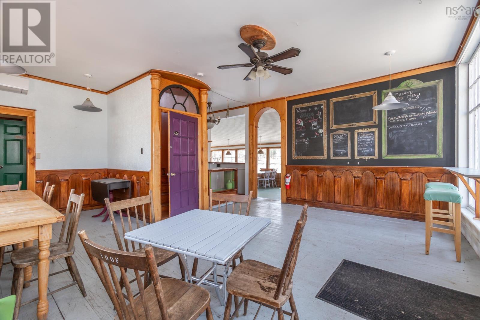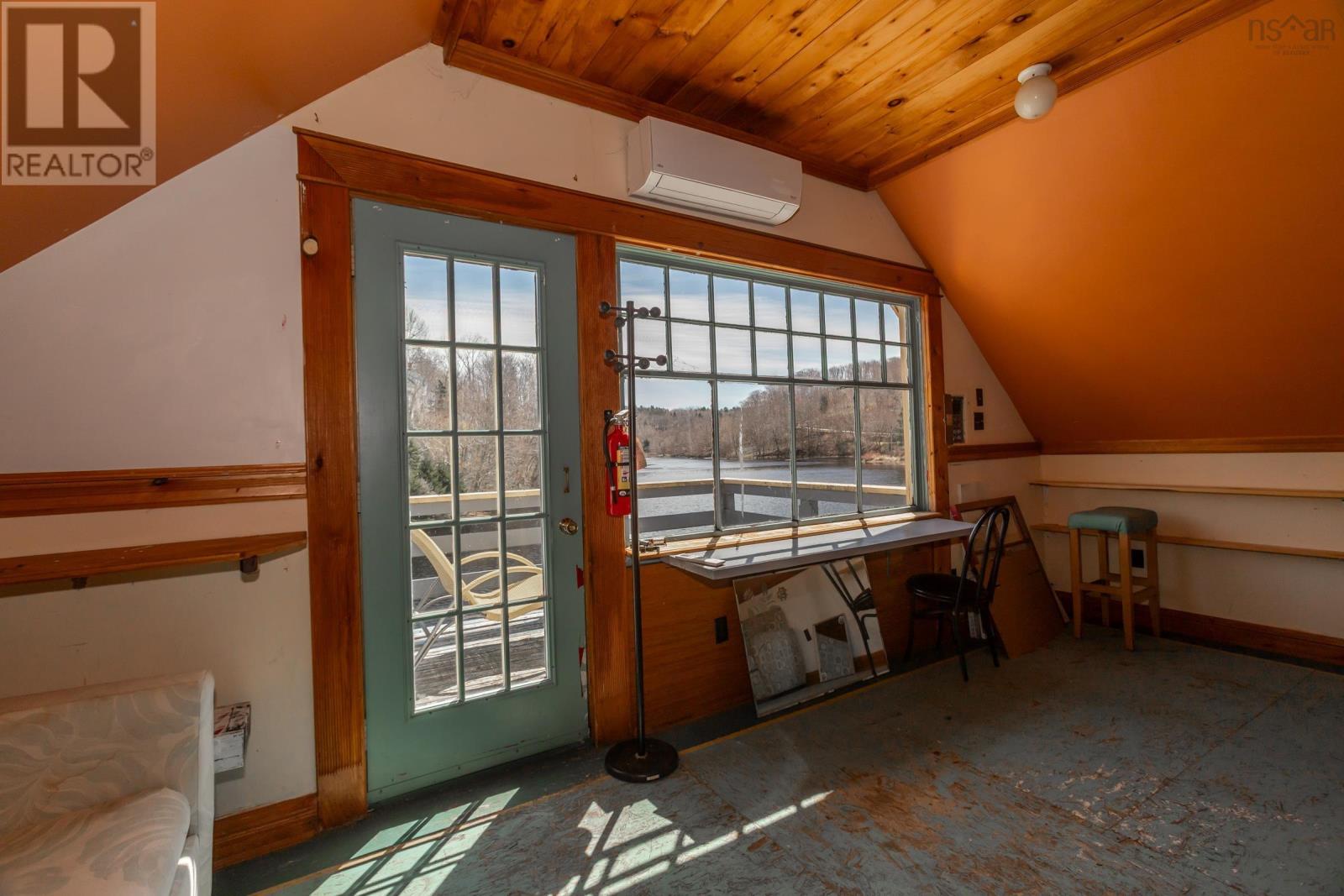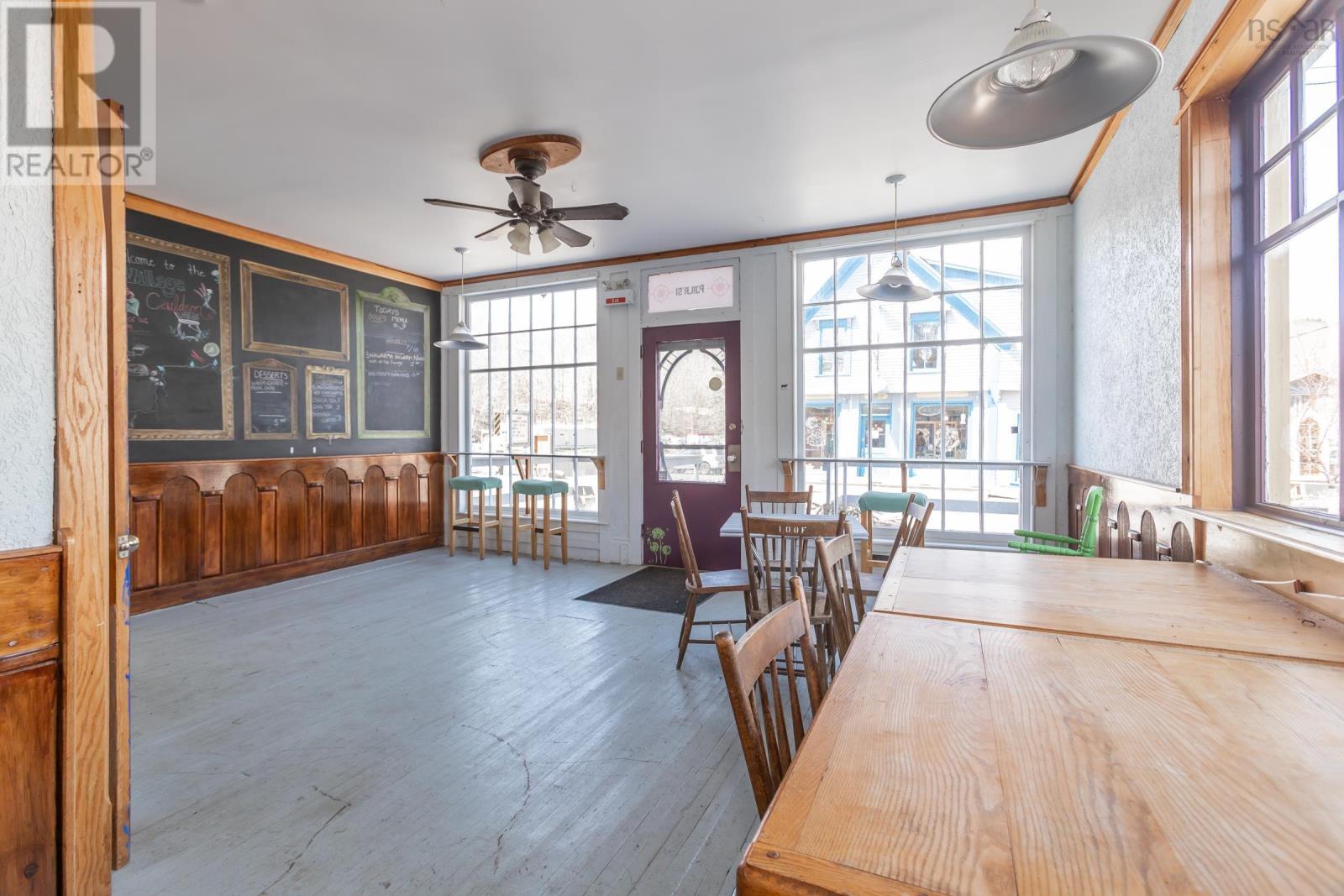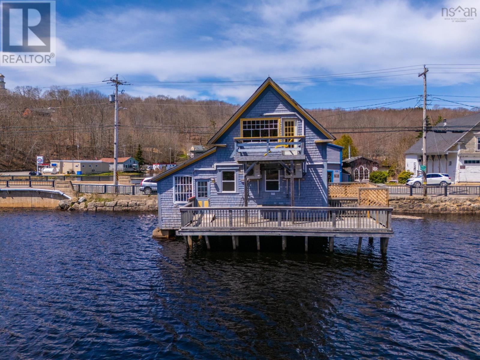 Welcome to the William Riordan Building, circa 1852. This stunning waterfront property is best suited as a gathering spot, a café and homey environment that is ideal for community activities, dining or simply relaxing in the Artisan Village of Bear River. This building sits on piers overlooking the Tidal River and gives it a unique and picturesque setting. Mix of rustic, communal space inside with large dining area, kitchen and cozy nooks perfect for a gallery, cafe, or creative studio. The outdoor back deck allows for panoramic views of the river where locals can gather to enjoy food and the beautiful surroundings. The second-floor suite provides a cozy, private retreat with stunning views of the Bear River. This is a great property for anyone looking for a charming rental experience or even a boutique café or community hub. Property now has municipal water & sewer. Property being sold "as is, where is" No PDS (id:49203)