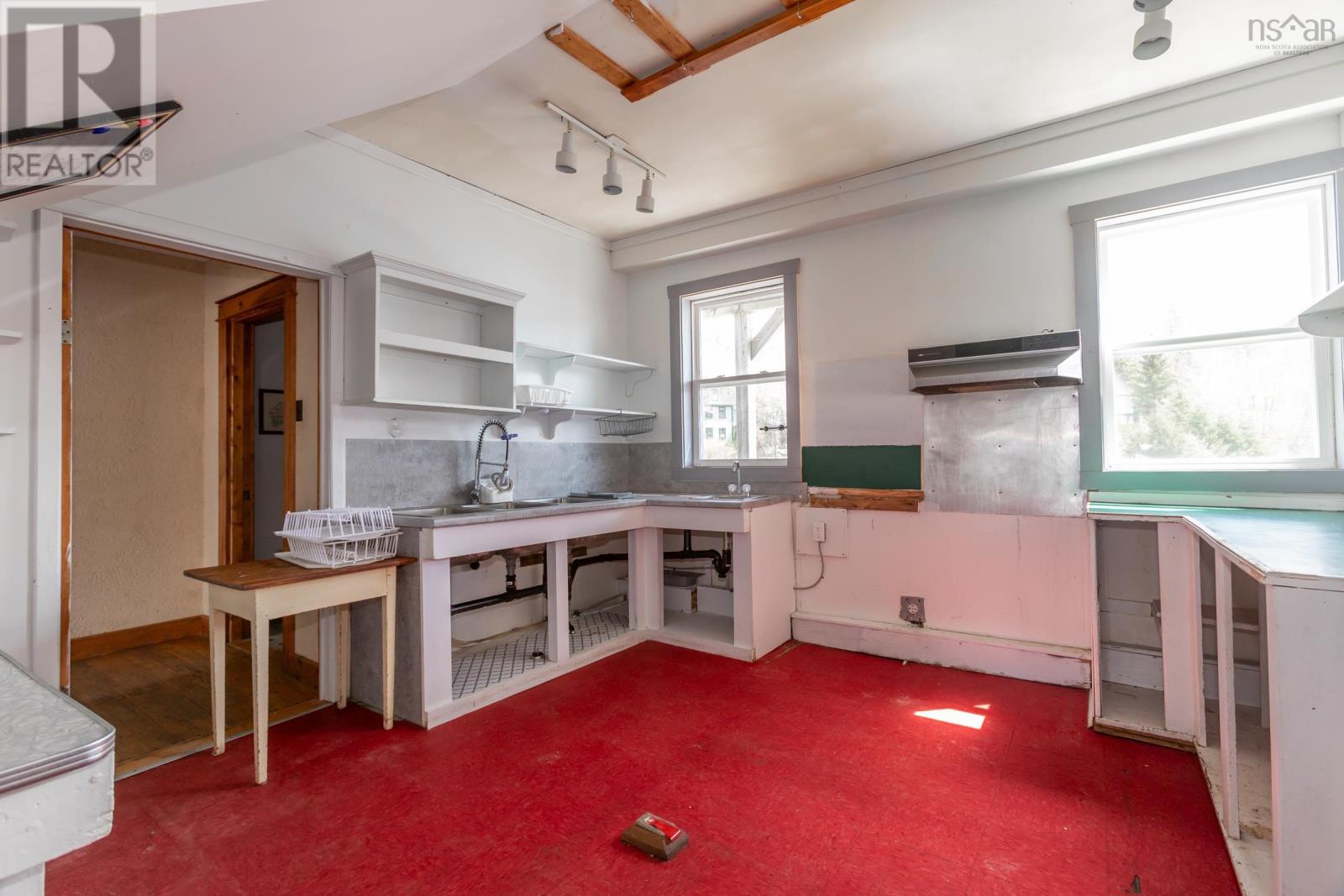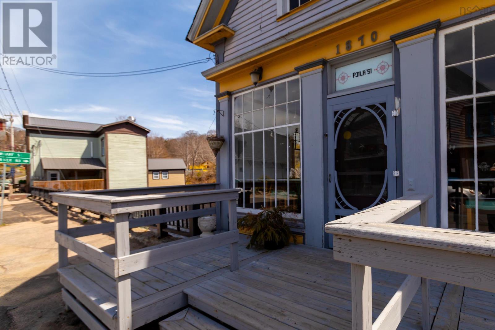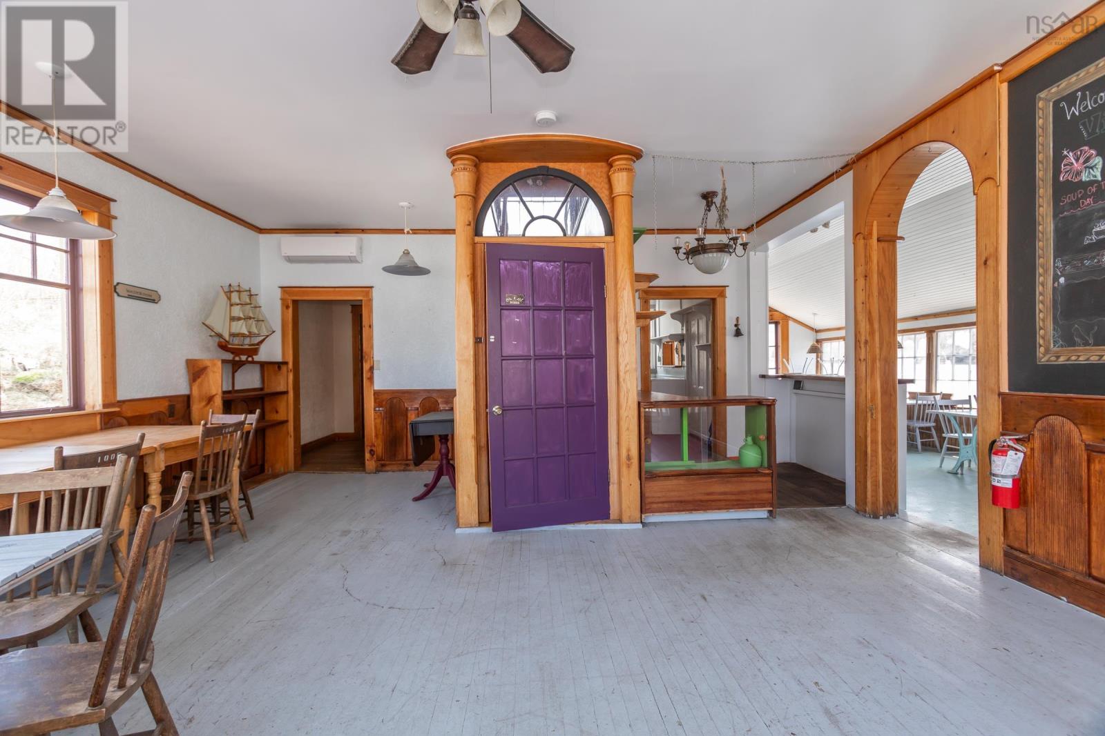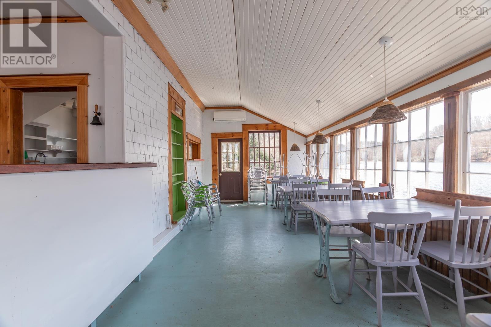 Welcome to the William Riordan Building, circa 1852. This stunning waterfront property is best suited as a gathering spot, a café and homey environment that is ideal for community activities, dining or simply relaxing in the Artisan Village of Bear River. This building sits on piers overlooking the Tidal River and gives it a unique and picturesque setting. Mix of rustic, communal space inside with large dining area, kitchen and cozy nooks perfect for a gallery, cafe, or creative studio. The outdoor back deck allows for panoramic views of the river where locals can gather to enjoy food and the beautiful surroundings. The second-floor suite provides a cozy, private retreat with stunning views of the Bear River. This is a great property for anyone looking for a charming rental experience or even a boutique café or community hub. Property now has municipal water & sewer. Property being sold "as is, where is" No PDS (id:49203)