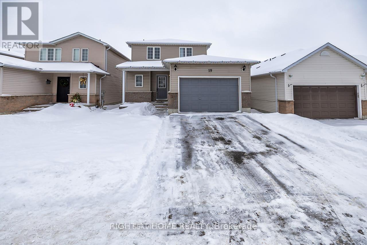 Welcome to 19 Brooking Street in Bowmanville. This 3-bedroom open concept home is perfectly located in a well sought-after, family-friendly neighbourhood just minutes from Public & Catholic Elementary schools, parks, and shops. The inviting main floor features newly installed flooring. The combined living room & dining room with gas fireplace has a walk-out to the two tiered deck and backyard. The kitchen overlooking the living room & dining room is ideal for entertaining. The staircase with newly installed broadloom leads to the second floor landing with upgraded flooring. The Primary bedroom has a double closet. The second and third bedrooms are a comfortable size with generous closet space. Enjoy relaxing and entertaining in the backyard and on the two tiered deck. The unspoiled basement is good for storage and has the laundry. The 1.5 car garage and 2 car driveway allow for ample parking. This move-in-ready home is one you won't want to miss. (id:49203)
