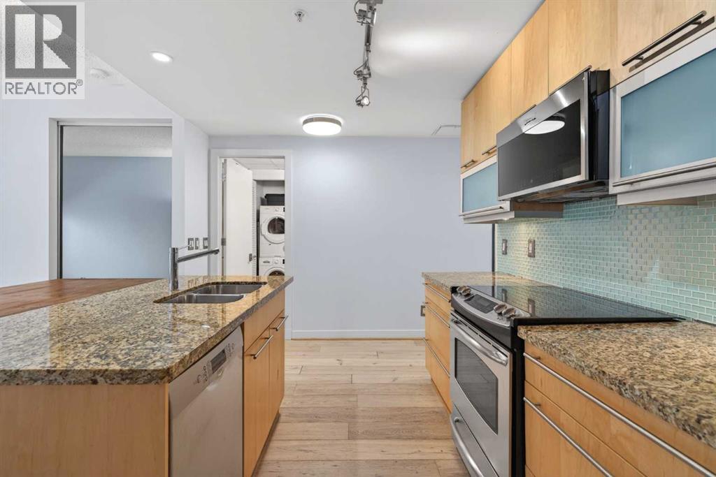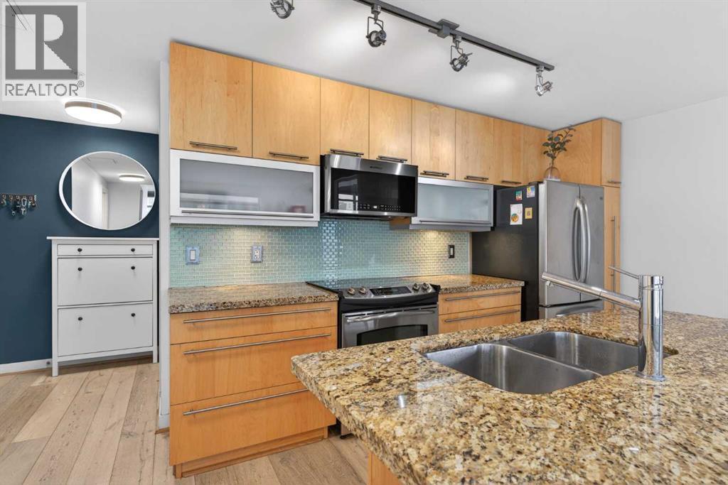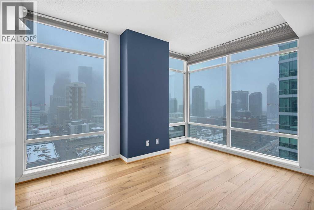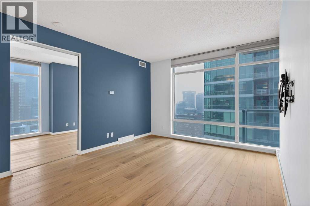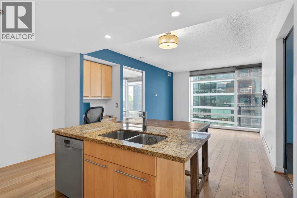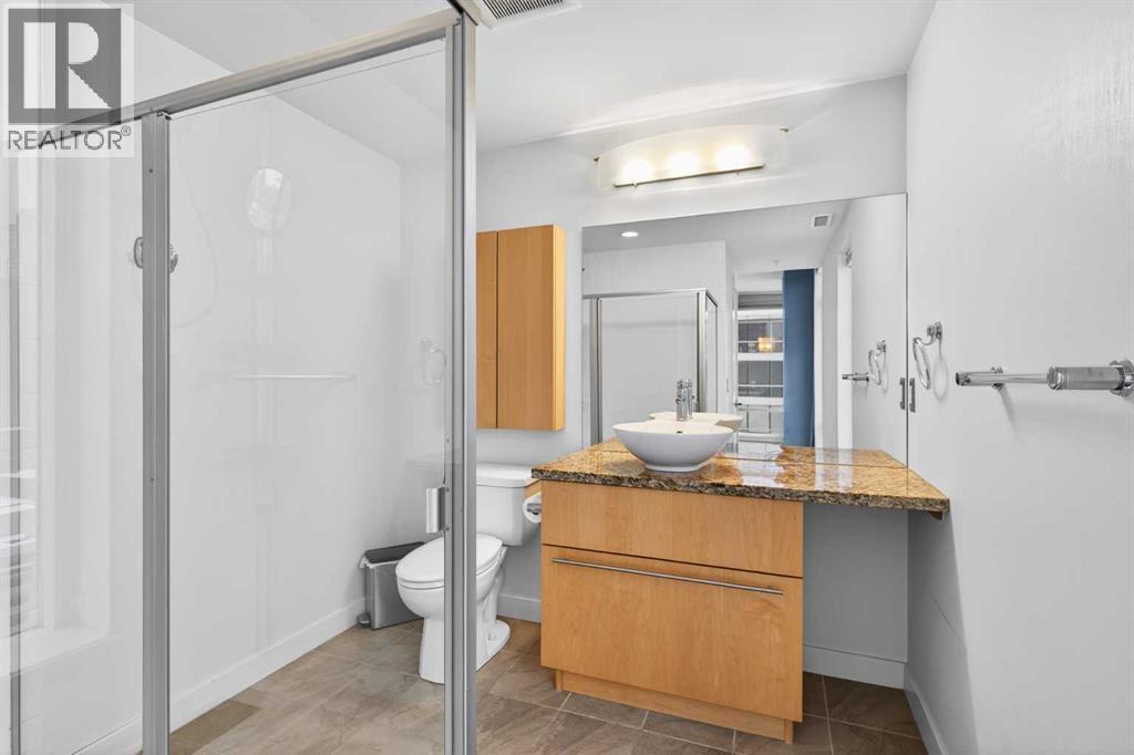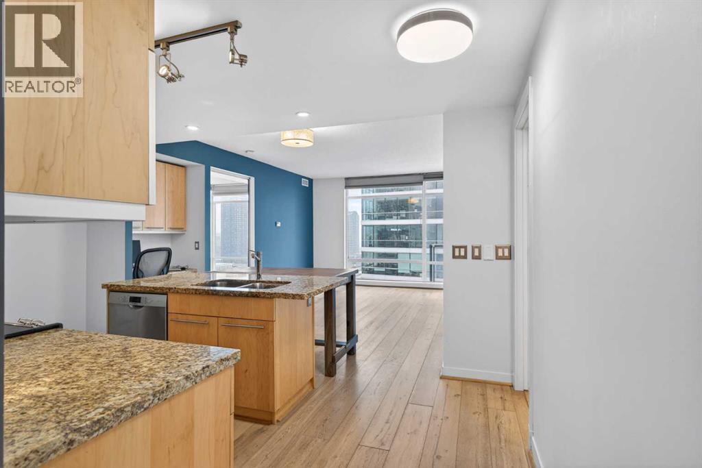 A spacious corner unit in the heart of downtown Calgary with unobstructed views of the skyline and the iconic Bow Tower. This 2-bedroom, 2-bathroom home offers a functional layout with both bedrooms featuring their own ensuites, ideal for privacy and flexible living.Filled with natural light from floor-to-ceiling windows, the unit features granite countertops, maple cabinetry, hardwood flooring, 9-foot ceilings, air conditioning, stainless steel appliances, and in-unit laundry. Enjoy a gas BBQ hookup for easy outdoor entertaining.Titled, heated underground parking is included, along with visitor parking.Walk to work and enjoy everything downtown has to offer shopping, restaurants, nightlife, plus nearby amenities like a tennis court and playground. The building also features 1st Street Market right on site for added everyday convenience. Book your showing today! (id:49203)