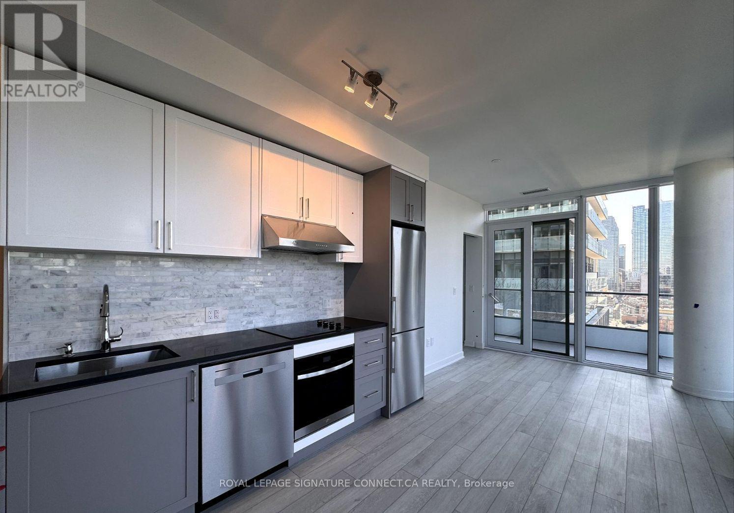 Experience luxury in this fully upgraded 2-bed, 2-bath corner suite at Pemberton's Time & Space! Unit 1901 boasts a massive wrap-around balcony with stunning NW sunset views of the downtown core. Over $20k in premium builder upgrades including vinyl flooring, custom shaker cabinetry throughout, marble backsplash, and professional closet organizers. Both bathrooms feature upgraded tiling and walk-in showers. A true standout feature is the rare, private locker located directly in front of the parking spot for effortless storage access. Ideally situated steps from the Distillery, St. Lawrence Market, and the Waterfront. Building amenities include an infinity-edge pool, rooftop cabanas, gym, yoga studio, and more. A turnkey gem in the heart of the city! (id:49203)