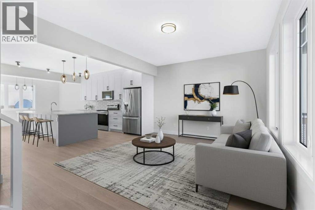 ACT NOW! Possession for May 2026! Quality new construction home built by a local Master Builder in Crossfield, who has lived in the community for 30+ years! Situated on what is arguably the best lot in this new development, this West facing end unit provides additional parking options and overlooks the baseball diamond and adjacent green space. Additionally, this location offers walking distance two schools, the local Community Centre and just minutes from the quaint downtown offering a multitude of amenities. This 3 bedroom, 3 bathroom semi-detached home spans over 1500 sq ft and features an open main floor layout. The Kitchen boasts abundant cabinetry, high-end appliances, and a beautiful, functional center island, ideal for extra counter space, homework, and entertaining guests. A patio door off the dining area leads directly to the deck and back yard, uncommonly found in this price point. This home has back lane access and a parking pad, a garage could still be added at an additional cost. Upstairs, the Primary Bedroom includes a walk-in closet and full ensuite bathroom. The two additional bedrooms are generously sized with convenient access to the centrally located main bathroom. Laundry is also conveniently located on this upper floor. Additionally, the home features side door access for private entry to the unfinished basement, allowing for additional future living space and includes bathroom rough-in. What sets this home apart is its construction by a Local Master Builder, employing Journeyman Tradesmen in all aspects of the build. These builders, along with their families, have been part of this community for multiple generations and take pride in constructing quality homes for local families. No expense has been spared in the use of upgraded materials during both the building process and the finishing touches. Features include Lux windows, stone countertops, upgraded plumbing fixtures and lighting fixtures, as well as higher-end appliances which includes t he washer and dryer, also not a common inclusion. This home is currently under construction. There is still some opportunity for custom upgrades, if you act fast! The area size was calculated by applying the RMS to the blueprints provided by the builder. (id:49203)