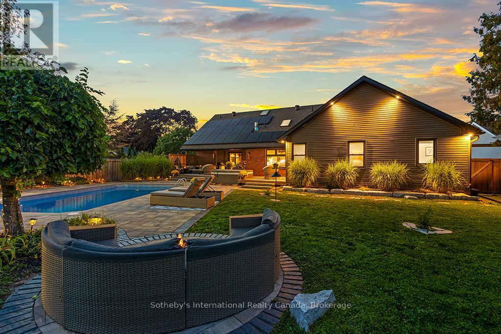 Unique Luxury Home Off-Grid on demand, light-filled, high-performance, perfectly located in the heart of Collingwood. Sustainably designed and thoughtfully renovated, it delivers what today's buyers want most: sophisticated comfort, lower energy costs, and healthier indoor air quality. Designed to enhance daily lifestyles, this home pairs modern comfort with premium eco-chic features. Currently connected to municipal hydro, gas and water, it also incorporates layered systems enabling fully capable independent off-grid operation whenever chosen. Featuring solar-battery power, an atmospheric water system, and a full 24kW gas generator. The integrated energy system provides exceptional resilience when needed. Inside, natural light fills refined spaces finished with timeless materials. The chef's kitchen includes premium appliances, a Panda marble island and stove frame, Calacatta granite backsplashes. Living areas flow naturally, one centred around a European wood burning stove and the other around a sleek gas fireplace with a walkout to the heated pool and hot tub. A beautiful dining room with barn doors. The main floor primary suite offers direct garden access, a spa inspired ensuite, and double walk-in closets. A functional mudroom with garage entry, a dedicated laundry room, and a 2pc bath complete this level. Upstairs features three bright bedrooms and two full bathrooms. The finished lower level provides flexible space for a gym, guest suite, and a media room. Outdoors, nature and design blend seamlessly with a pool, hot tub, fire pits areas, fruit trees, vegetable beds, and raised herb gardens. This landscape is created for connection, nourishment, and tranquillity. Set on a 83.5 x 165 foot lot, moments from cafes, markets, trails, lake, golf clubs and the beautiful mountains. 196 Ninth represents innovation, sustainability, and modern elegance in perfect harmony. Attached in Documents a detailed list of upgrades and sustainable features. (id:49203)