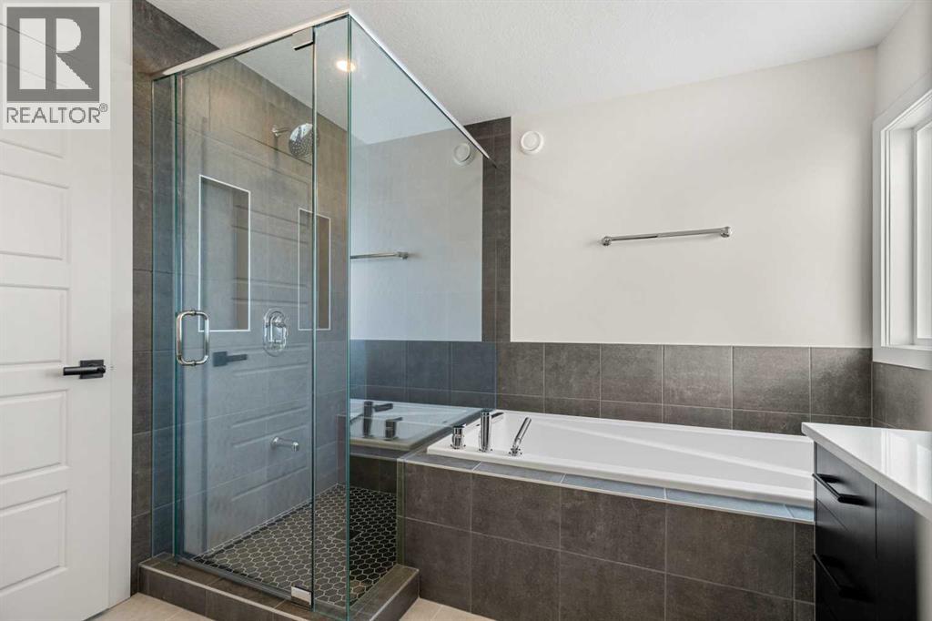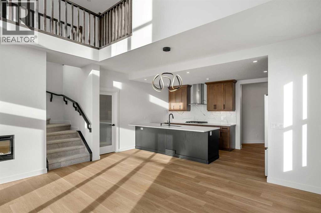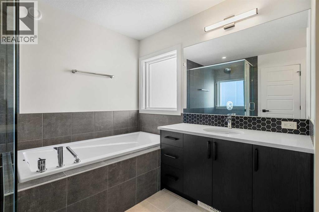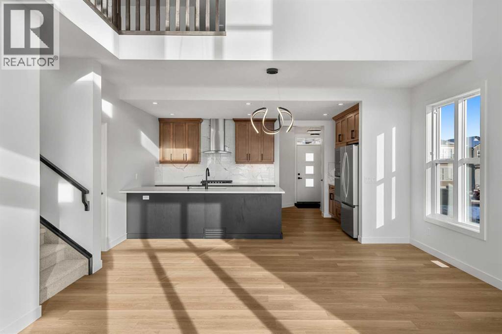 This beautifully designed home at 19723 44 Street SE offers a perfect blend of modern style, functional living, and exceptional flexibility for today’s homeowners. From the moment you step inside, you’re greeted by high ceilings and contemporary light fixtures that create a bright, open, and welcoming atmosphere throughout the main living spaces with a LEGAL basement suite.The thoughtfully planned main level flows seamlessly, ideal for both everyday living and entertaining. Upstairs, the home continues to impress with a convenient upper-level laundry room and a spacious primary retreat. The primary bedroom features a luxurious 5-piece ensuite, providing a spa-inspired escape complete with elegant finishes and ample space to unwind. Additional bedrooms are well-proportioned and designed with comfort and practicality in mind.A standout feature of this property is the fully finished legal basement suite, offering excellent potential for rental income, extended family living, or a private guest space. The suite includes its own private entrance, a functional layout, and a washer and dryer conveniently located in the hallway, ensuring independence and ease of use for occupants.Outside, the fenced yard provides some privacy, great for entertaining. The combination of interior elegance and exterior functionality makes this home both inviting and versatile.With its modern finishes, smart layout, and income-generating potential, this home delivers exceptional value for families, investors, or multi-generational households. Situated in a growing southeast Calgary community with access to nearby amenities, parks, and major routes, 19723 44 Street SE is a move-in-ready opportunity that balances lifestyle, comfort, and long-term potential. *Main photo has been virtually modified to display what the home will look like with landscaping, however, landscaping is NOT included in the purchase of this home. (id:49203)