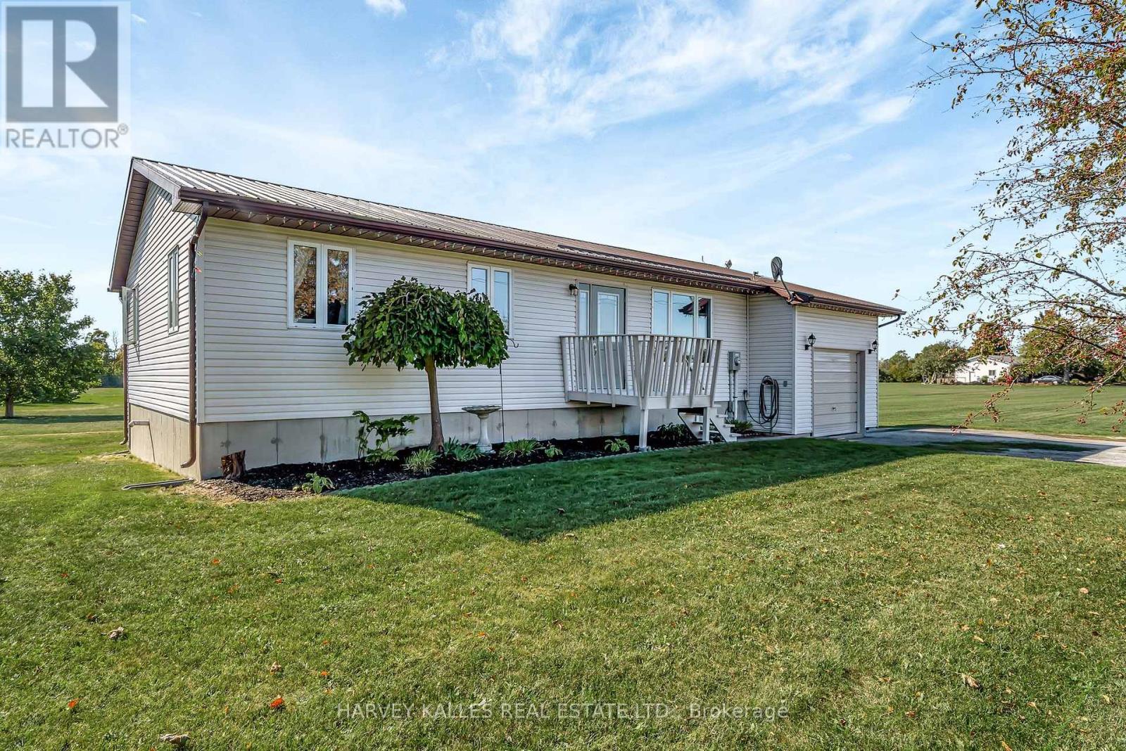 Perfectly positioned between Lake Ontario and East Lake on an expansive 6-acre property, this tidy bungalow offers the peace and privacy of country living with all the comforts of home. The well-designed main floor features a bright, spacious living room, an open-concept kitchen and dining area ideal for gathering, and a convenient foyer with access to the laundry room. Three comfortable bedrooms, a full bath, and a handy 2-piece semi-ensuite off the primary bedroom provide a layout tailored for everyday ease. The full basement, bright and partially finished, offers excellent potential - perfect for creating a cozy family room, hobby space, or home gym. Enjoy winter evenings by the pellet stove, and summer days spent outdoors on the back deck, soaking in the southern exposure and vibrant sunsets. An attached garage and two storage sheds provide ample space for vehicles, tools, and recreational equipment, while the expansive lot invites endless possibilities-gardens, play areas, manicured lawns, or simply room to roam. A full-sized soccer net is already in place for outdoor fun. Thoughtful updates, including a wired-in generator, durable metal roof, and new furnace, make this a truly move-in-ready opportunity. Blending comfort, functionality, and outdoor living, this property is ready to welcome its next chapter. (id:49203)