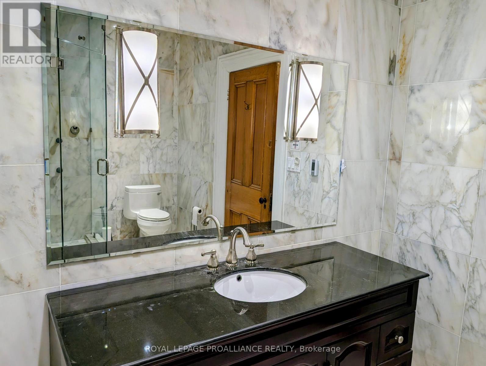 1,000 sq ft of bright, move-in ready office commercial space just steps from downtown Peterborough. Set on a street of beautiful century homes, many converted to professional offices, this property offers commercial zoning in a polished, established setting. This main floor features high ceilings and a functional layout suited to a variety of professional uses. A separate side entrance provides private client and staff access, and dedicated on-site parking at the rear; a rare find this close to the downtown core. The kitchen cabinets and counter and appliances are brand new and the space has been freshly painted throughout. An ideal opportunity for professional offices, consultants, or service-based businesses seeking a central, convenient location. Rent is $2300/month, plus hydro and 50% of the taxes and snow removal. (id:49203)
