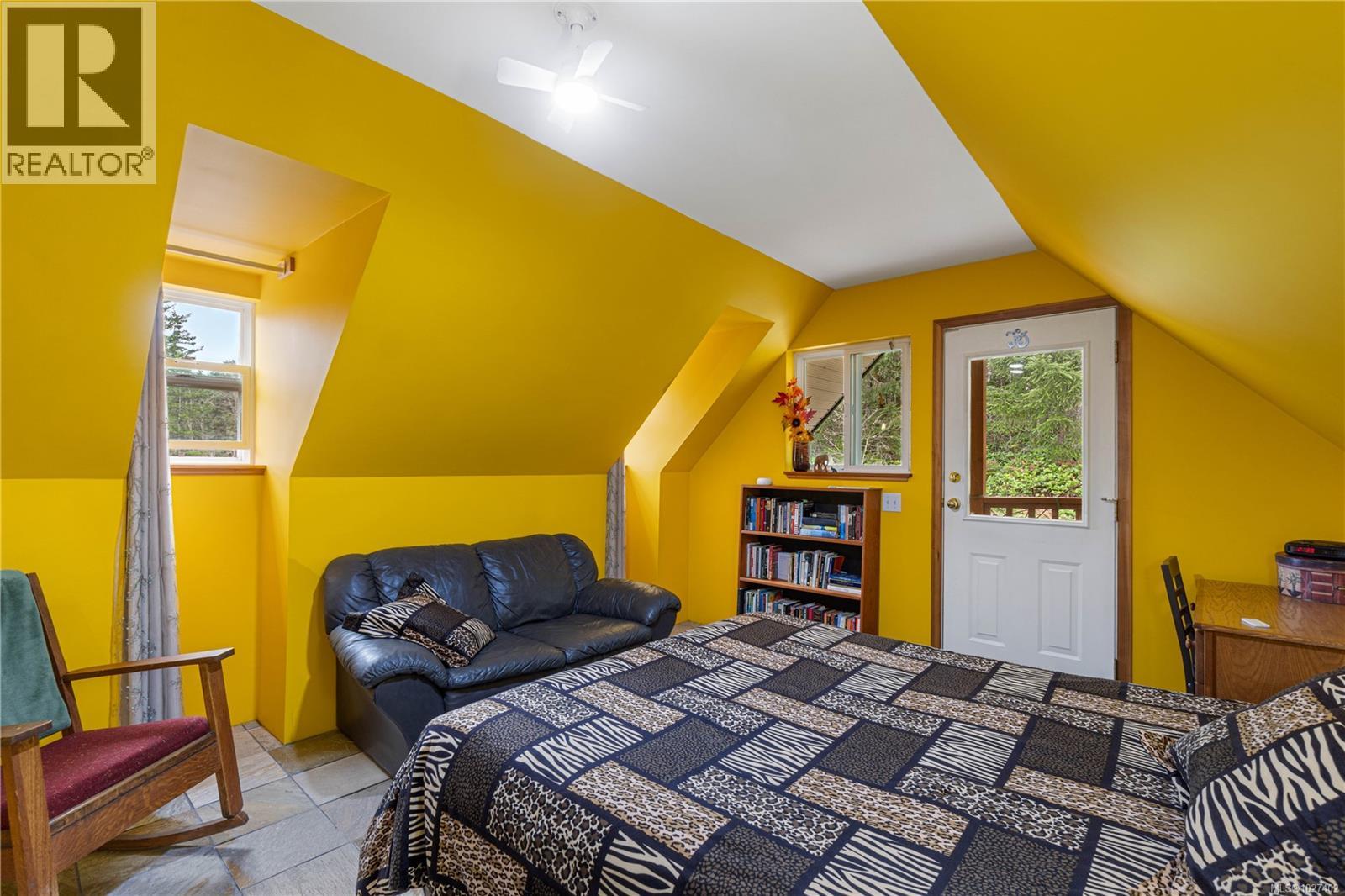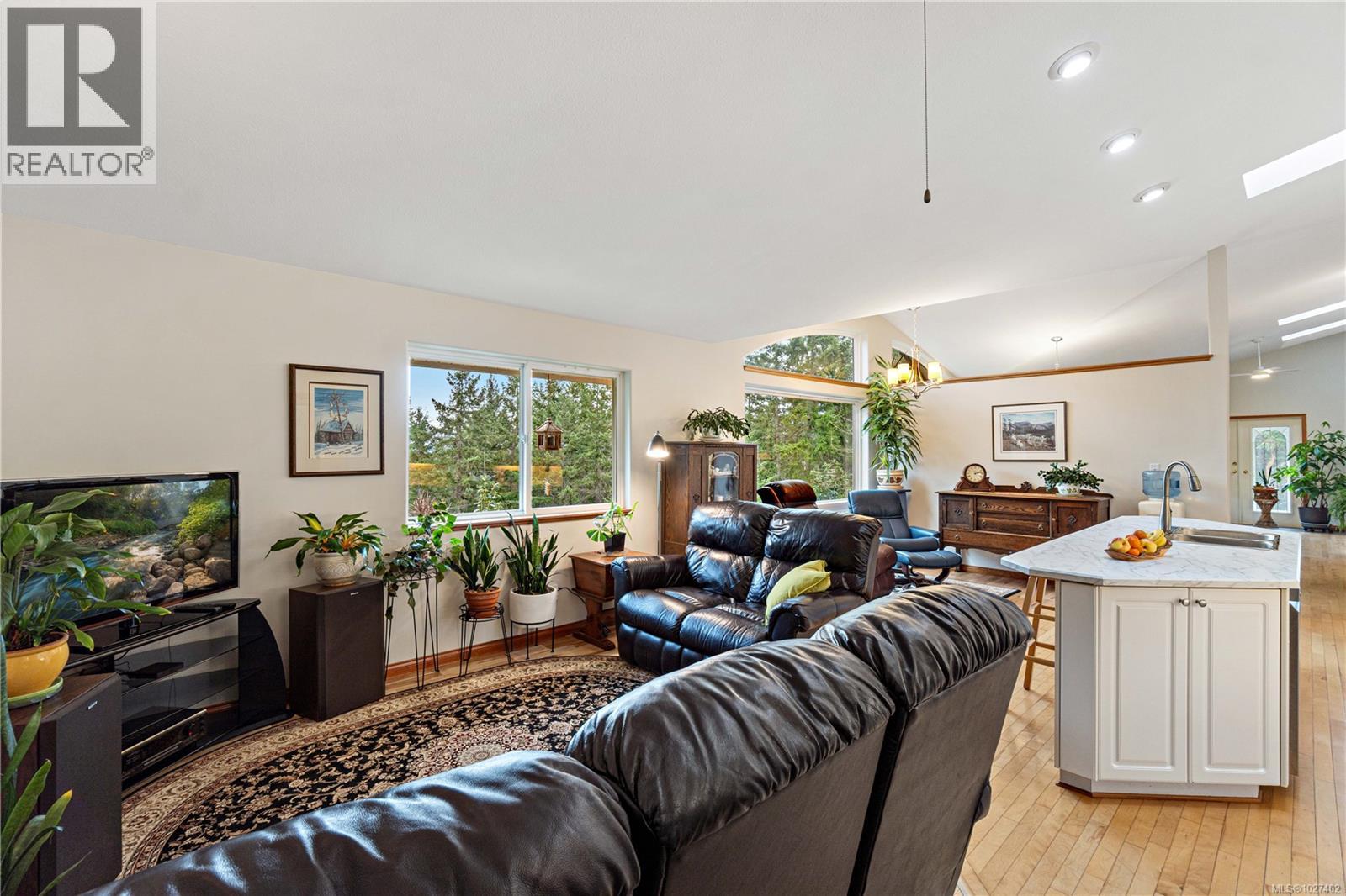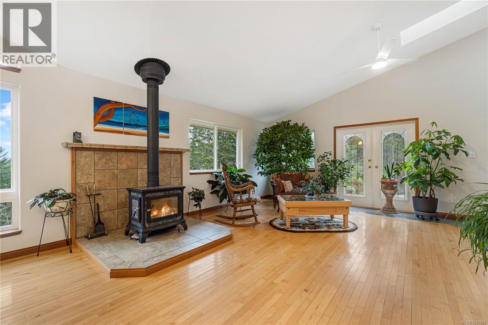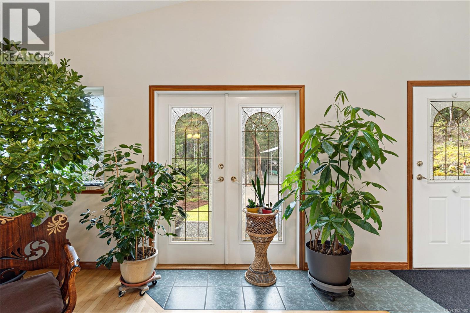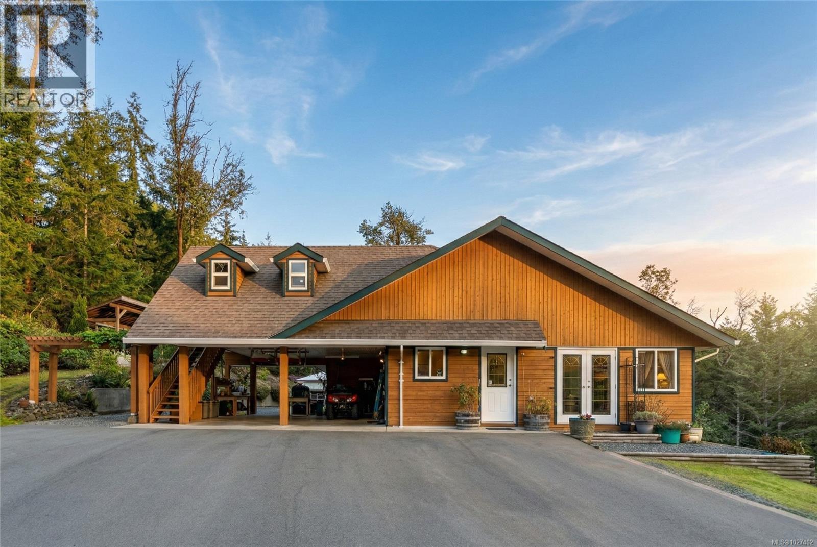 Tucked high among the treetops of the rugged West Coast wilderness, this private hillside retreat offers a true escape. Set on 6.07 acres, the 4 bed, 3 bath home spans approx. 2,211 sq ft and is designed to capture the surrounding natural beauty, with vaulted ceilings and expansive picture windows that frame the scenery and welcome natural light. Wake each morning to songbirds and frequent wildlife sightings at your door. The open layout is bright and inviting, ideal for relaxed living and entertaining, and includes the convenience of a built-in vacuum system. A private fourth bedroom guest suite on the upper level provides excellent separation for visitors and offers income potential. Outdoor living is exceptional, with a generous rear patio that wraps around tiered gardens. Enjoy a productive orchard with grapes, blueberries, figs, plums, and more. Recent upgrades include a newer roof, heat pump, paved driveway, and an RV parking pad with 20x30 steel shelter. Contact the listing agent, Kirk Walper, at 250-228-4275 for more information. (id:49203)