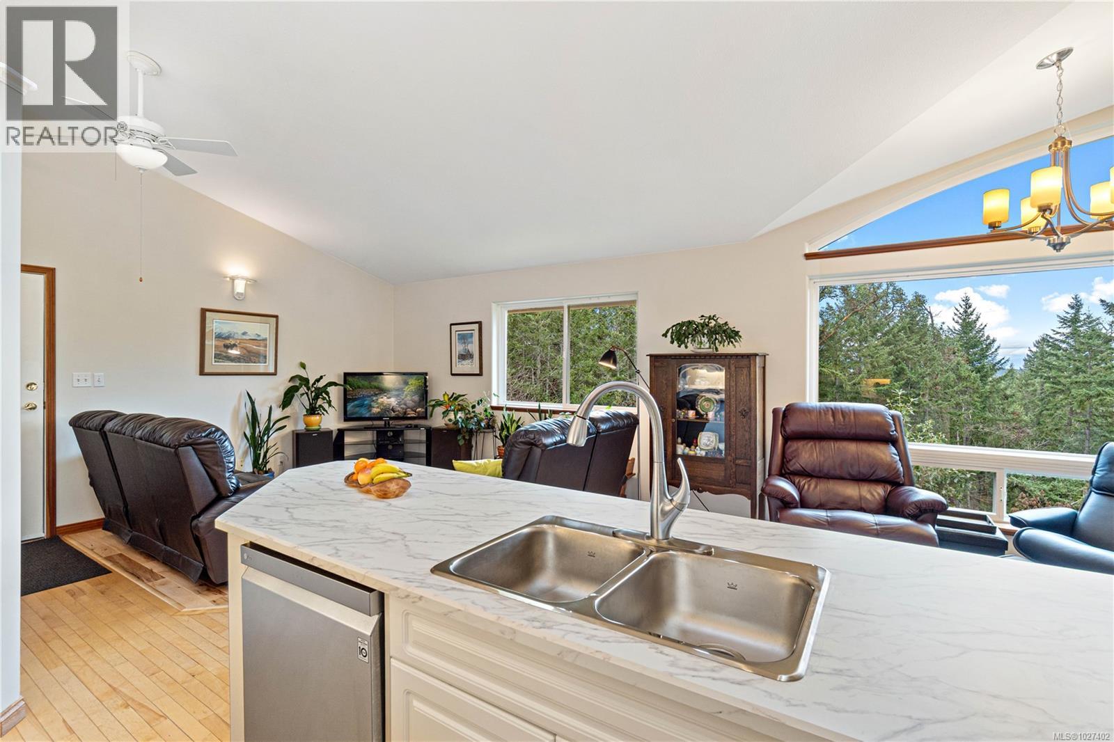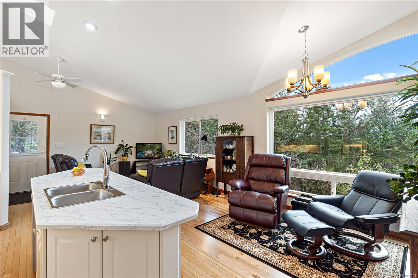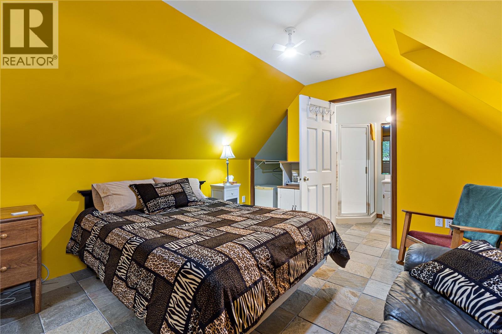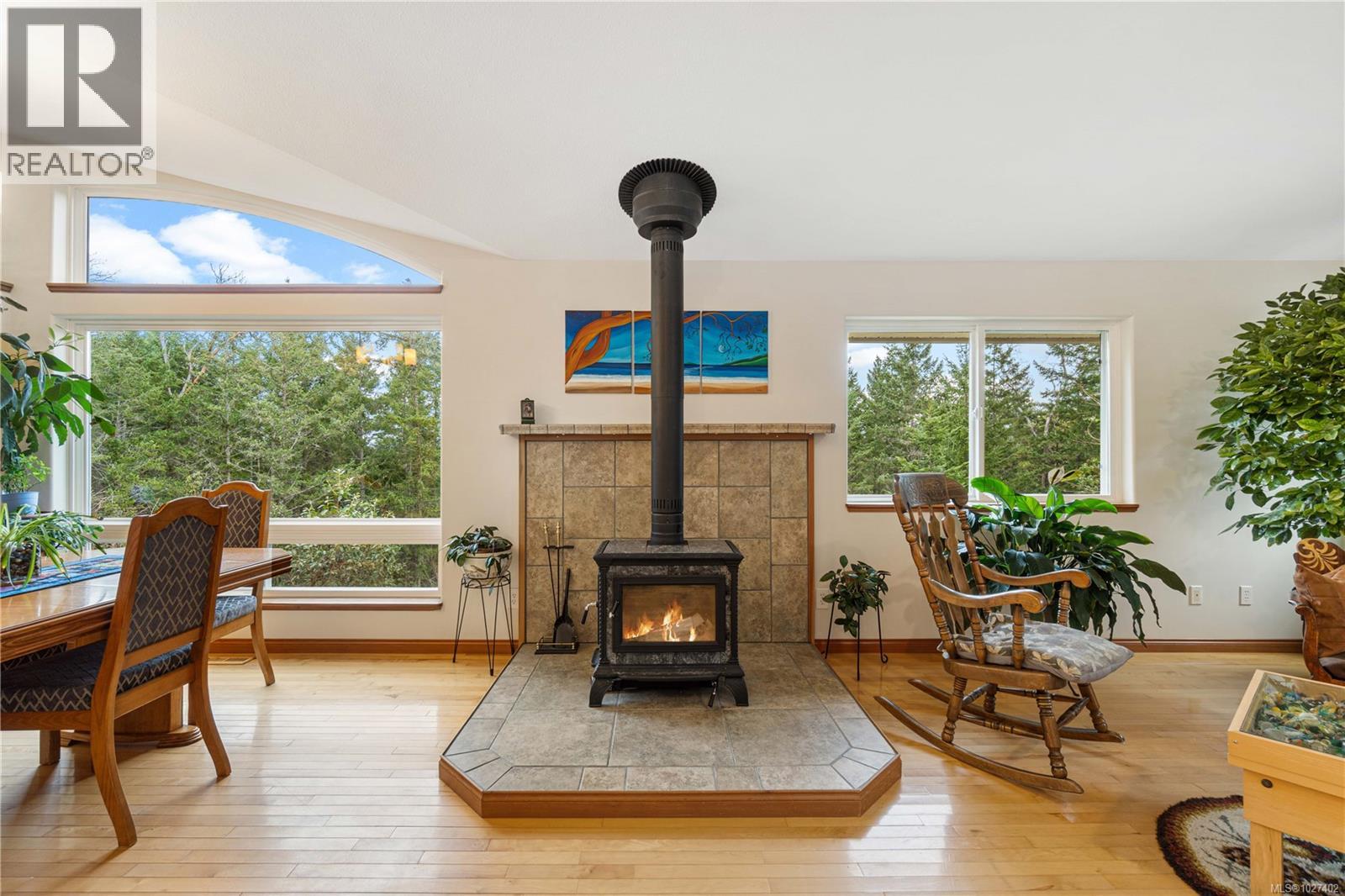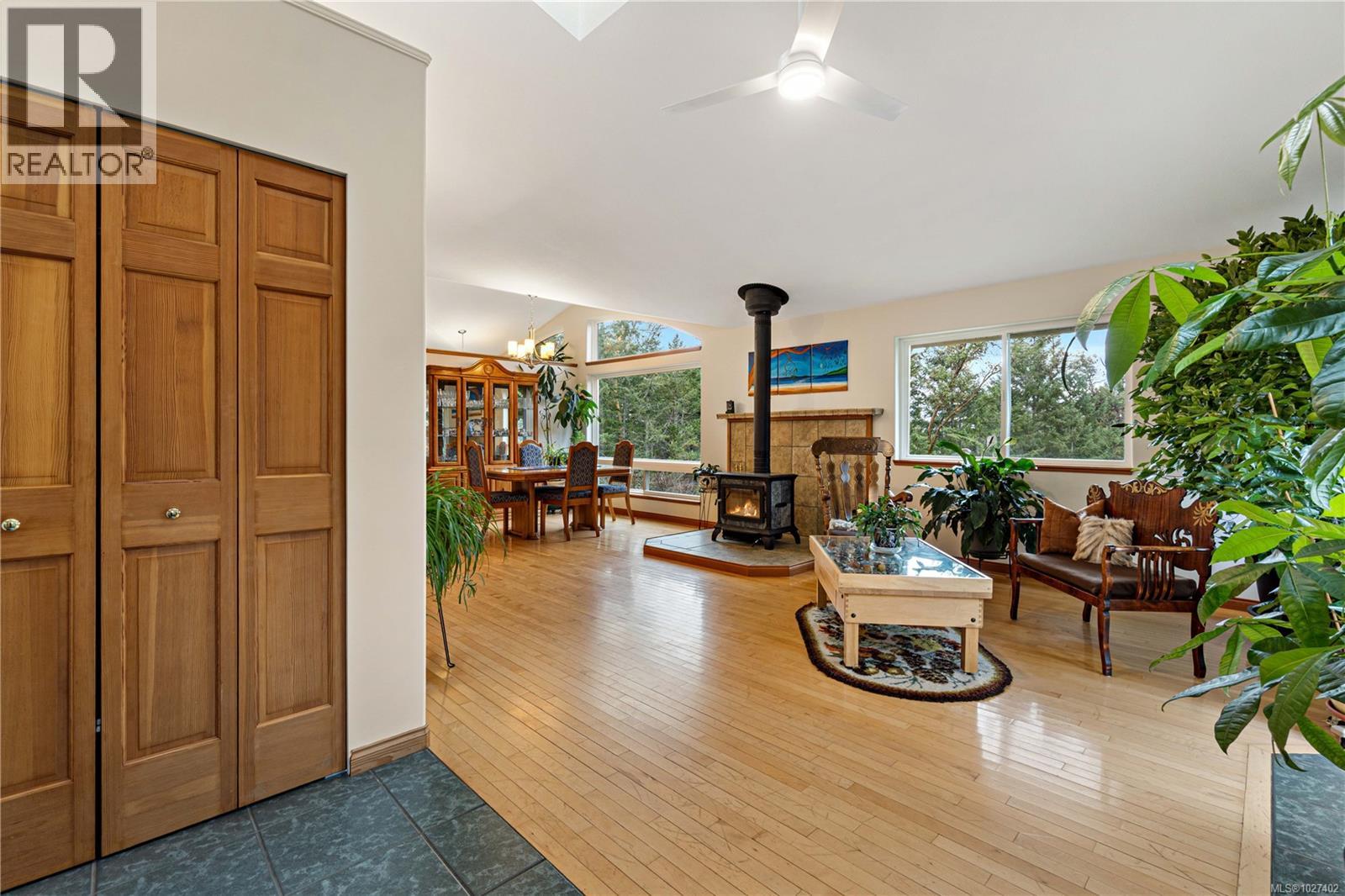 Tucked high among the treetops of the rugged West Coast wilderness, this private hillside retreat offers a true escape. Set on 6.07 acres, the 4 bed, 3 bath home spans approx. 2,211 sq ft and is designed to capture the surrounding natural beauty, with vaulted ceilings and expansive picture windows that frame the scenery and welcome natural light. Wake each morning to songbirds and frequent wildlife sightings at your door. The open layout is bright and inviting, ideal for relaxed living and entertaining, and includes the convenience of a built-in vacuum system. A private fourth bedroom guest suite on the upper level provides excellent separation for visitors and offers income potential. Outdoor living is exceptional, with a generous rear patio that wraps around tiered gardens. Enjoy a productive orchard with grapes, blueberries, figs, plums, and more. Recent upgrades include a newer roof, heat pump, paved driveway, and an RV parking pad with 20x30 steel shelter. Contact the listing agent, Kirk Walper, at 250-228-4275 for more information. (id:49203)