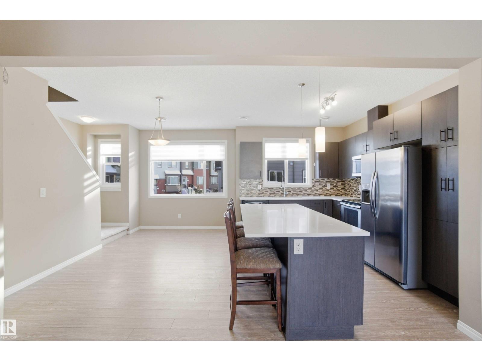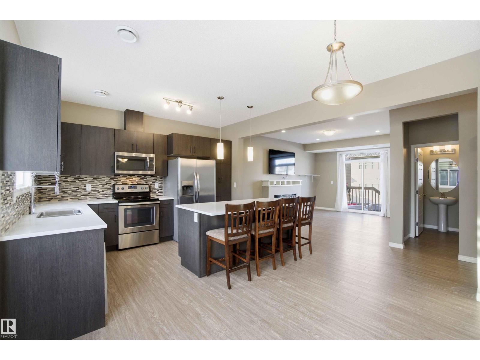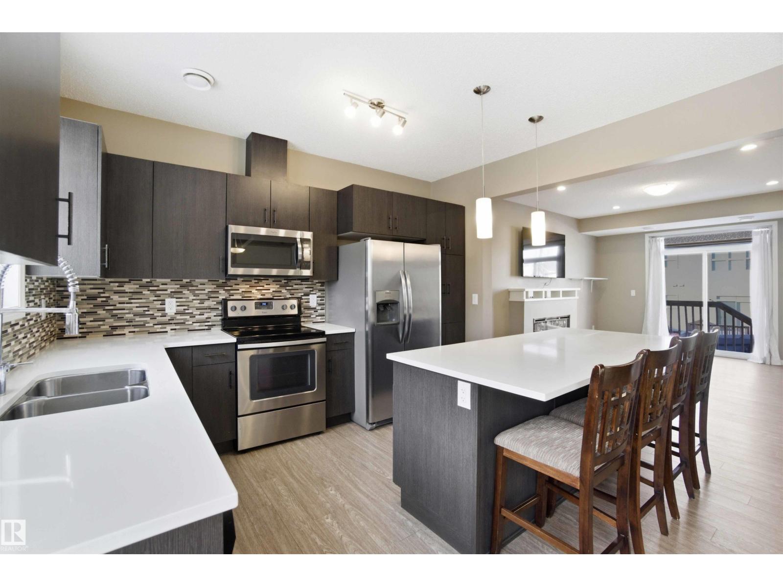 Modern and move-in ready, this 3-bedroom, 2.5-bath home offers approximately 1,447 sq ft of bright, functional living space. The spacious kitchen features quartz countertops, tile backsplash, upgraded stainless steel appliances, and plenty of cabinetry. The open-concept living room includes an electric fireplace and convenient 2-piece bath on the main floor. Upstairs you’ll find a laundry room, a primary suite with walk-in closet and private ensuite, plus two additional bedrooms and a full bath. Enjoy the fully fenced, west-facing backyard—perfect for entertaining or relaxing in the sun and your yard maintenance is included in condo fees. Complete with an attached garage, parking pad, and visitor parking right beside, this home checks all the boxes! (id:49203)