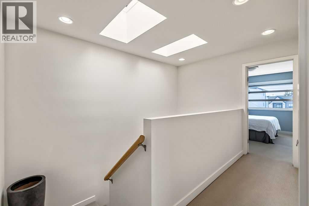 *** OPEN HOUSE SUNDAY MARCH 8 1 PM to 3 PM *** Beautiful, spacious and bright townhouse/condo in a great location! Only one owner has lived here and it shows - pride of ownership is evident! Tucked away from the street, you will enter into a ground level generous flex room with heated floors and plenty of windows. This room is ideal for an office, workout space, games room or mudroom. The heated attached garage is accessible from this level so no need to go outside into the cold! Moving up to the main floor, you will find a large open concept living space with 9' ceilings, hardwood floors, kitchen with maple cabinets & breakfast bar, spacious dining area and living room with gas fireplace & modern built-ins. There is lots of natural light in here from windows on three sides as well as the living room opening up to a spacious west facing deck. Upstairs are 2 good sized bedrooms with each their own 4 piece bathrooms. The primary bedroom has a large walk-in closet and its ensuite is complete with enclosed shower and soaker tub. Laundry is conveniently on this level and 2 skylights add more natural light to this level. This 4 unit complex had upgrades to the roof, balconies, siding and exterior paint in 2025. The home is in such a desirable location! It is close to parks, downtown, public transit (8 minute walk to Shaganappi LRT), schools, shopping, restaurants, golf, the Killarney recreation center and much more. The best of inner city living! (id:49203)