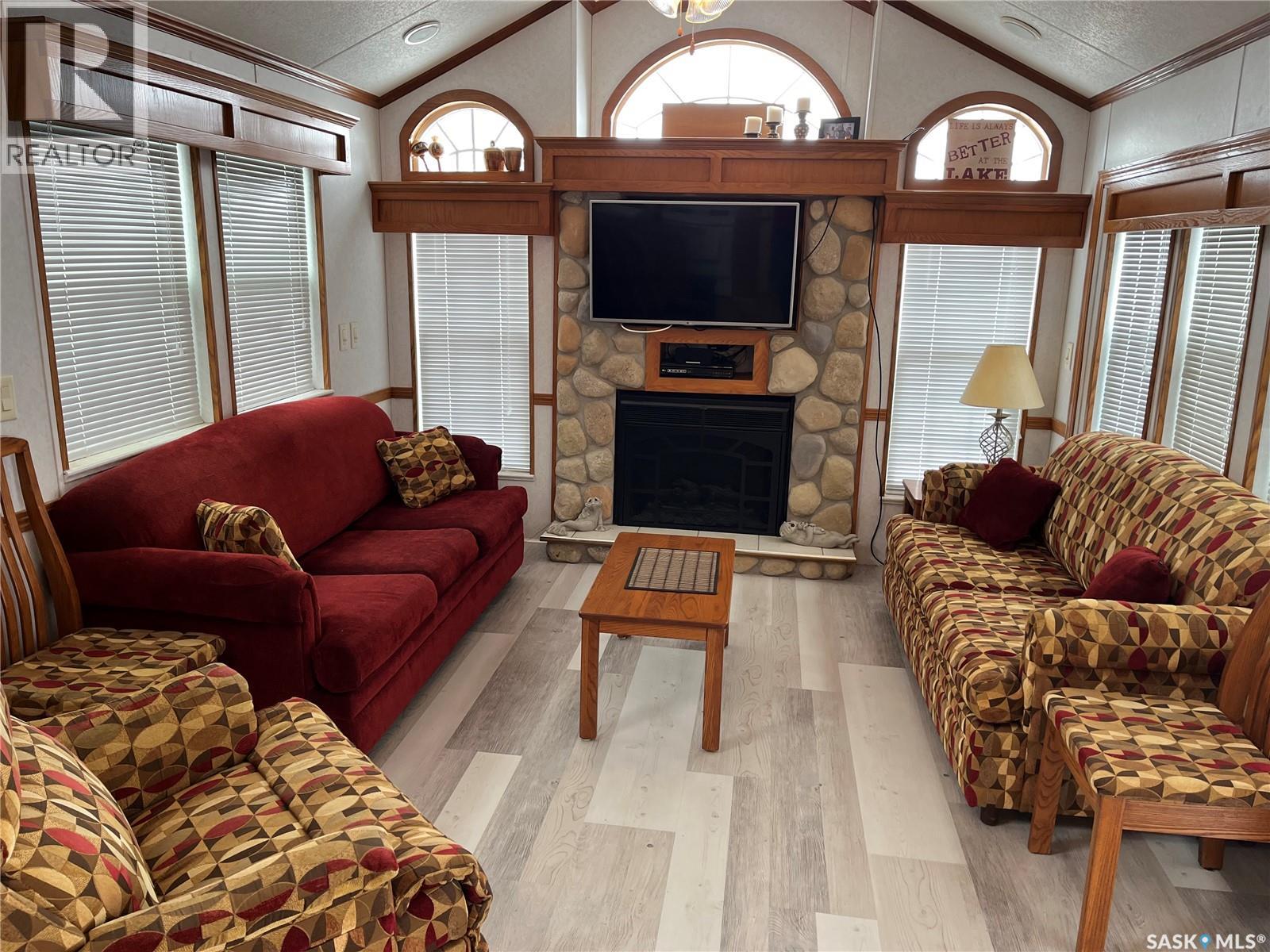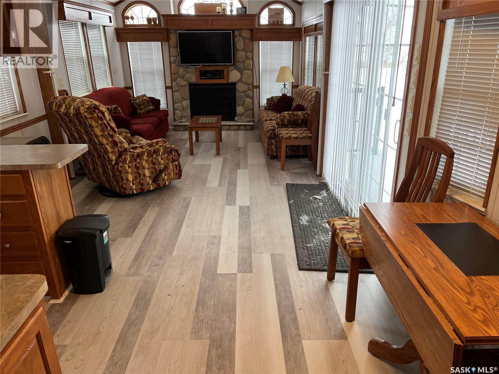 HURRY TO GET YOUR PIECE OF PARADISE!! Situated at Gaumond Bay , 10 kilometers from the Town of Gravelbourg on the Shores of Thomson Lake is this Resort Community and lies this park model on the water front. With its own dock, boathouse, abundance of yard space, fire pit area, underground sprinklers, close proximity to Thomson Lake Regional Park, lots of privacy and so much more you really should book your private viewing. Did I forget to mention that the home is in excellent condition and still looks brand new, the furniture and contents can be part of the sale, with an open concept, vaulted ceilings, fireplace, and lots of cupboard space. Then there is the outside which boasts 3 deck spaces for all types of weather or comfort levels, the gorgeous enclosed 10x16 sun room can be enjoyed in almost any weather situation, the second deck 10x22 features a tinned roof for shade but is open on the sides to enjoy the warm summer days and then the 12x12 wood deck at the south side of the home that is totally open for just lounging or whatever you chose. Across the lake is Thomson Lake Regional Park which you can enjoy a 9 hole golf course, swimming pool, clubhouse with a restaurant, concession, camping and numerous other outdoor activities. If you have to run to town for something the Town of Gravelbourg is only 10 kms away with a grocery store, gas station, Hospital, churches, pharmacies, restaurants and much more. You should come and see this property today. (id:49203)