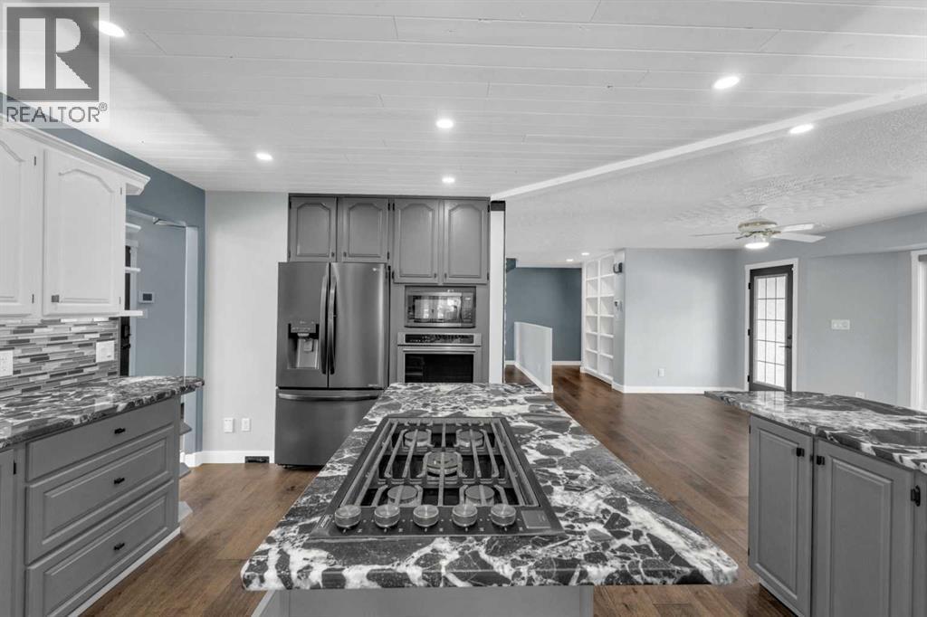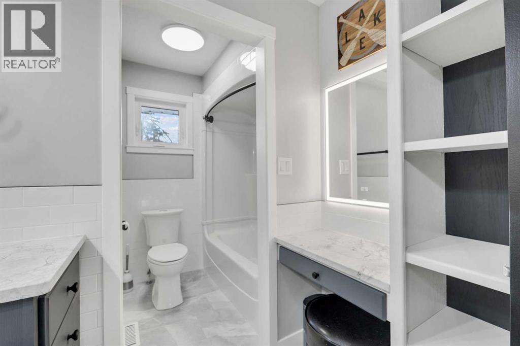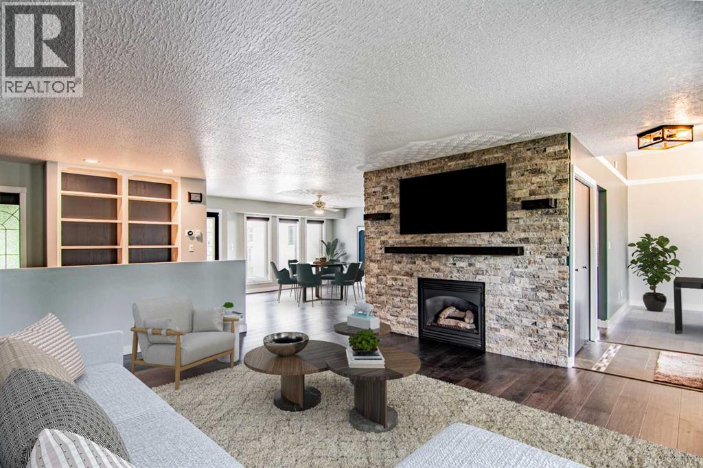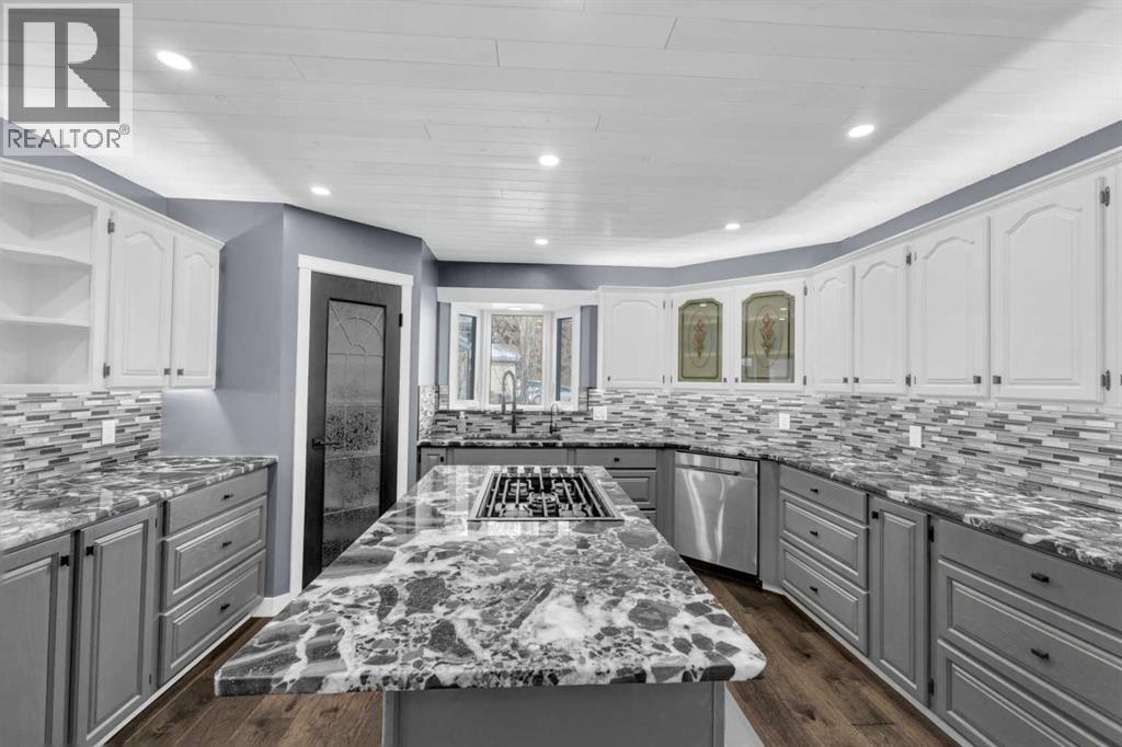 Welcome to this RENOVATED bungalow in the Summer Village of Norglenwold—where every day feels like a family getaway. Just one row from Sylvan Lake and steps from the boat launch, this almost 2,500 sq ft home sits on an impressive 15,000 sq ft lot, offering space, comfort, and the perfect backdrop for making lifelong memories. Inside, the open-concept layout is designed for family living. The bright living room, anchored by a stone gas fireplace with custom live-edge mantles, is ideal for movie nights or cozy evenings together. The beautifully updated kitchen with newer quartzite countertops, 5-burner gas cooktop, and NEW lighting makes preparing meals a joy—whether it’s a quick breakfast before heading out on the lake or a big family dinner with everyone gathered around. All-NEW flooring, renovated bathrooms, fresh paint, and upgraded systems (including a NEWER furnace and NEW commercial-grade on-demand hot water) give you peace of mind so you can focus on what matters most—your family. The large NEW windows and blinds not only fill the home with natural light but also frame the views of the surrounding trees and yard, where kids can play freely and safely. Outdoors, the expansive yard provides endless opportunities—set up a playset, build a rink in the winter, or host summer barbecues while the kids ride bikes and play tag. The NEW front deck is the perfect spot for morning coffee while watching the kids explore, or winding down together at the end of the day. A second driveway out back offers space to build a garage or shop, keeping all the family’s toys and gear organized. Living in Norglenwold means your children can grow up in a true lake community—spending summers paddleboarding, swimming, and fishing, and winters skating or ice fishing. NO short term rentals in the Summer Village and compost pick-up every second Thursday. (id:49203)