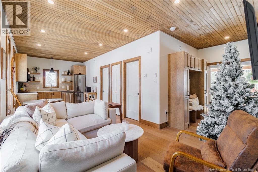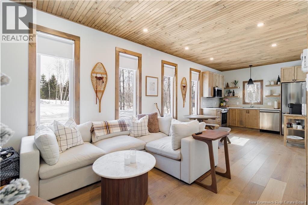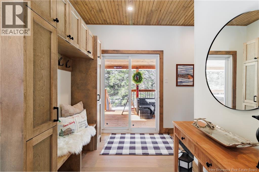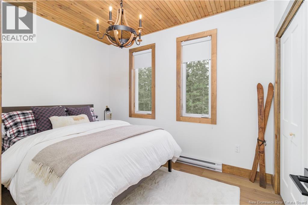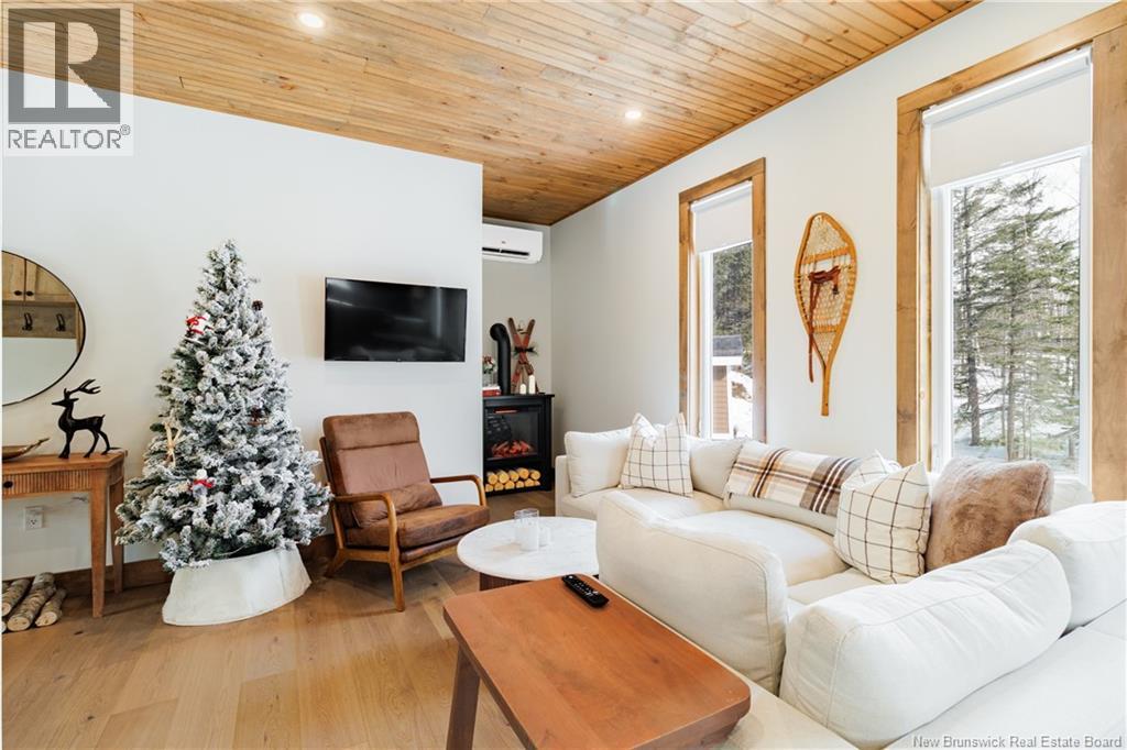 Built in 2023, this stunning chalet is the ultimate four-season getaway. Just minutes from Crabbe Mountain Ski Hill & Lodge, this property offers the perfect blend of charm & modern convenience. Step inside to 9-foot ceilings with stained tongue-and-groove wood paneling & wood trim, creating a warm & inviting space. With storage in mind, youll love the custom milled mudroom cabinetry to store coats and ski gear as soon as you enter from the side entrance or the deck. The main level features engineered hardwood flooring, while the stylish kitchen, designed by Kitchen Creations, boasts high-end finishes including stainless steel appliances with a full-sized dishwasher & custom open shelving. The tiled shower with glass sliding doors adds a spa-like touch to the bathroom. A ductless heat pump ensures year-round comfort. Downstairs, the fully finished lower level includes a second & potential third bedroom or family room & a laundry room within the second full bathroom. A small storage room can be found off the hallway & an upgraded high-end water system provides pristine water quality. Outside, relax on the fully covered deck (10x20) equipped with a hot tub for the perfect après ski activity, or take in the serene surroundings of your one-acre property, cleared & rough-graded. The engineered wood siding and coordinating shed complete the polished exterior. Being sold fully furnished (some sentimental items to be excluded). Seller is related to the selling salesperson. (id:49203)